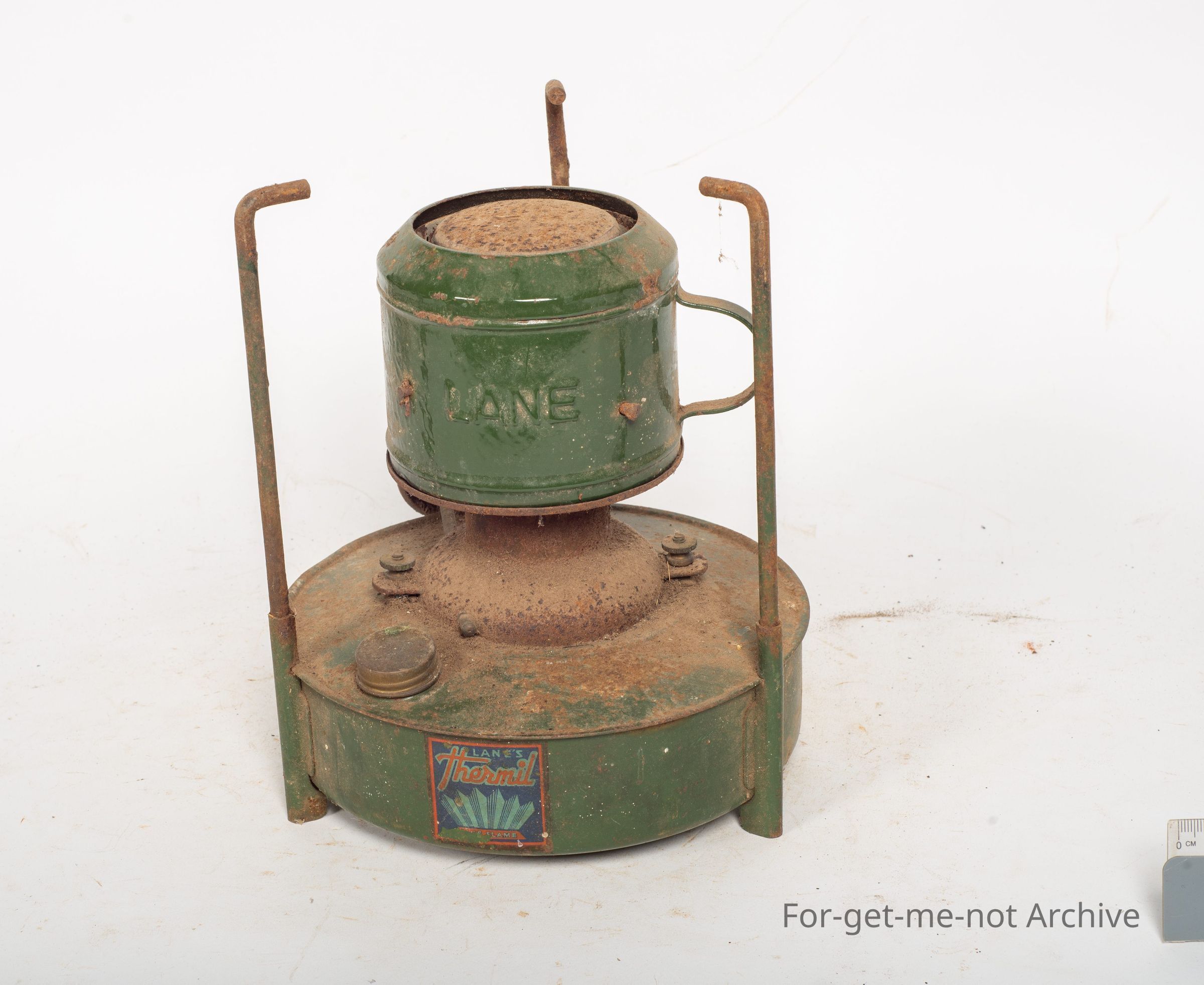 This is a lightweight, pressurized, food cooker on a little stand. Has a burner that comes to the top, provisioned to sit a pot over the top of it. This one is stamped line.