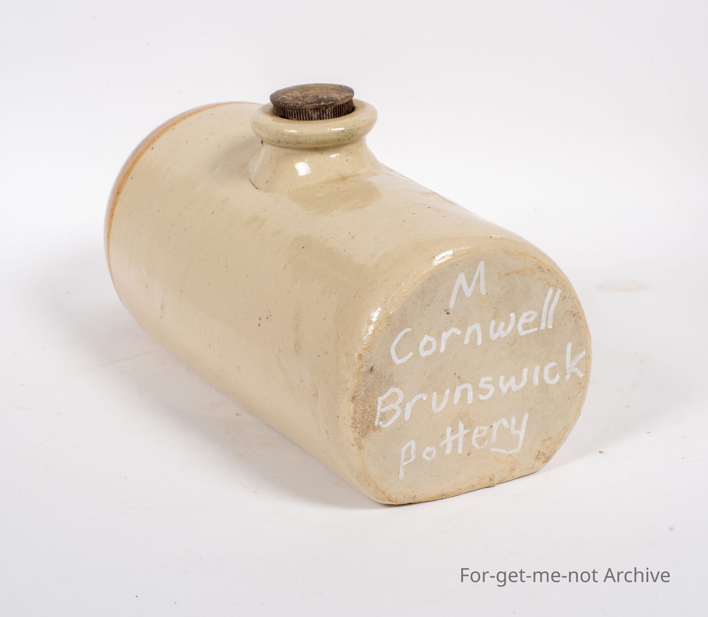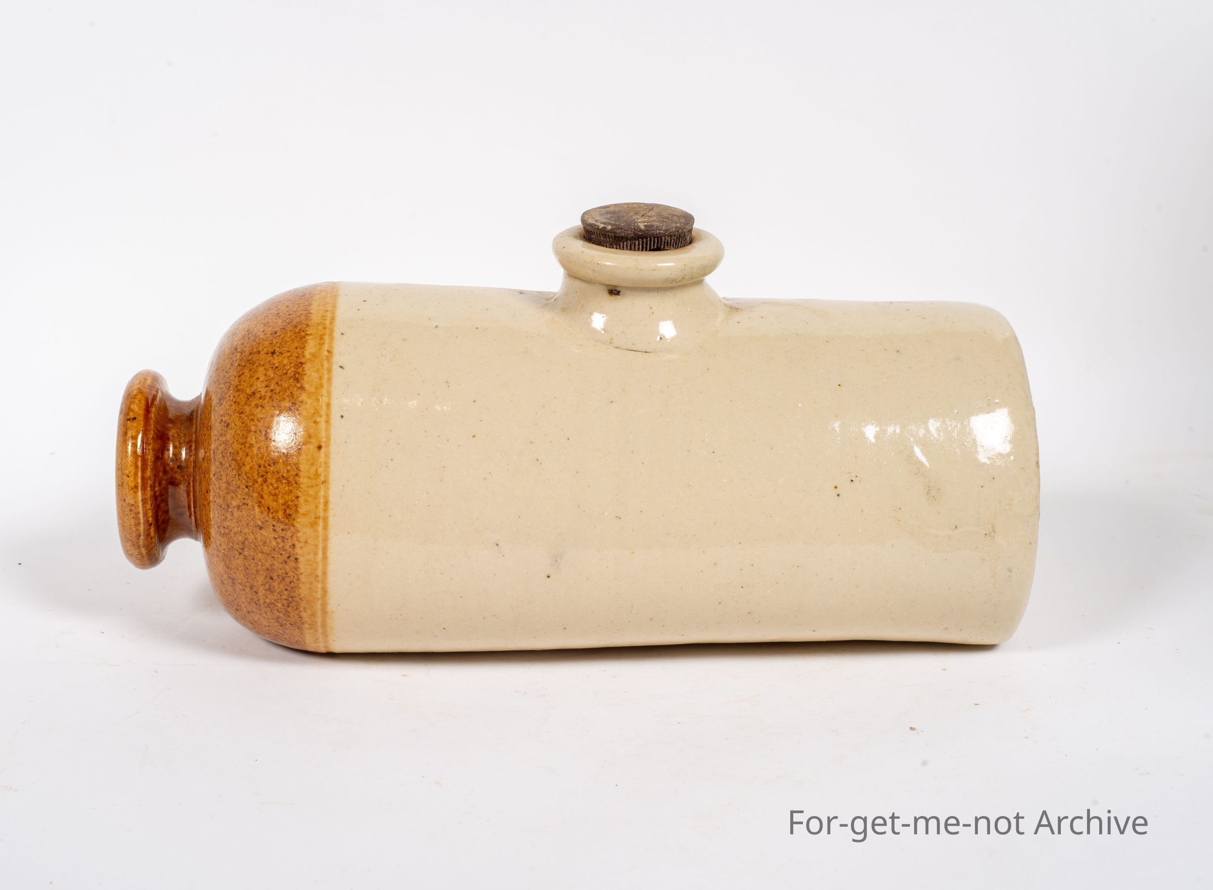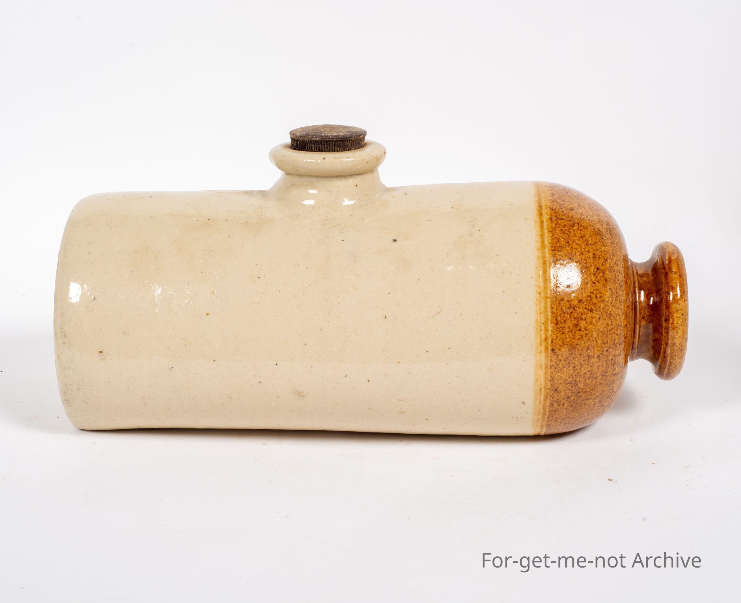 Stoneware pottery. This piece is a stoneware bed warmer or foot warmer. This piece is this in this is in the classical shape and design of Cornwall Brunswick Pottery. This is a flawless piece, no chips, cracks, and no glaze runs either. Very good. BodyCollection