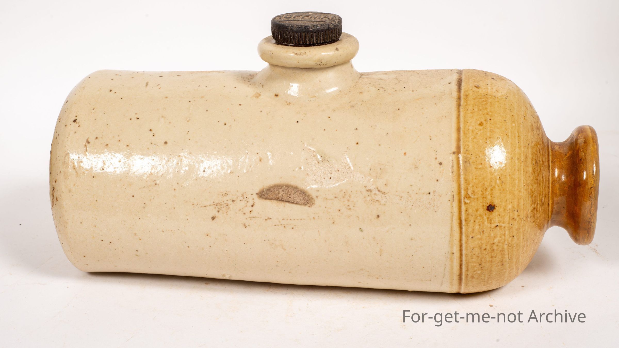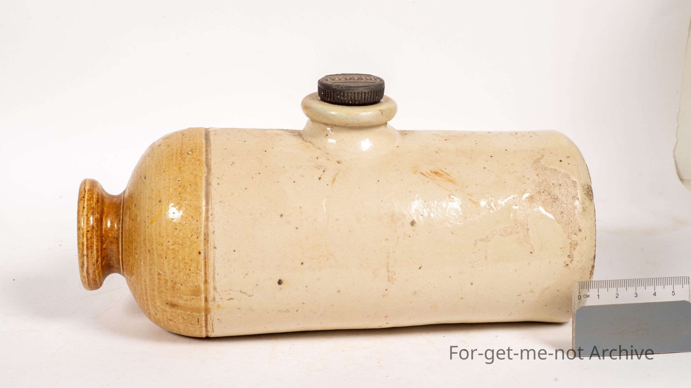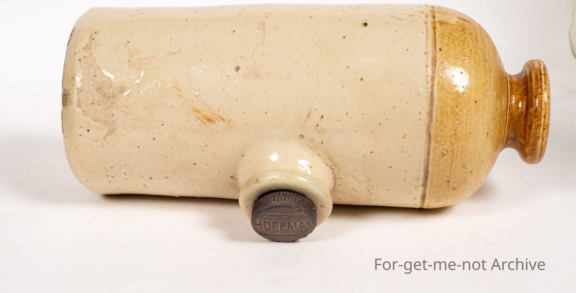 Stoneware Pottery. This piece is another bed murmur, This is a Hoffman example of a bed murmur, foot murmur. Has a Hoffman plug in the top, very good order.
