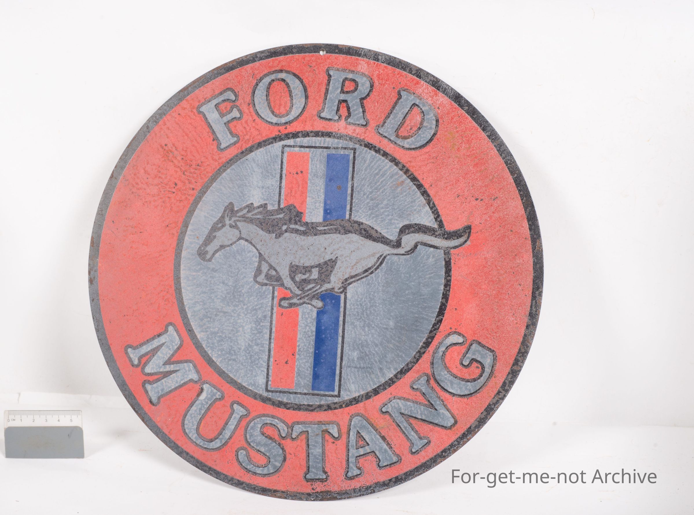 Sangeet Collection. This is a reproduction sign Circular Tin Plate Advertising the Ford Mustang Car.