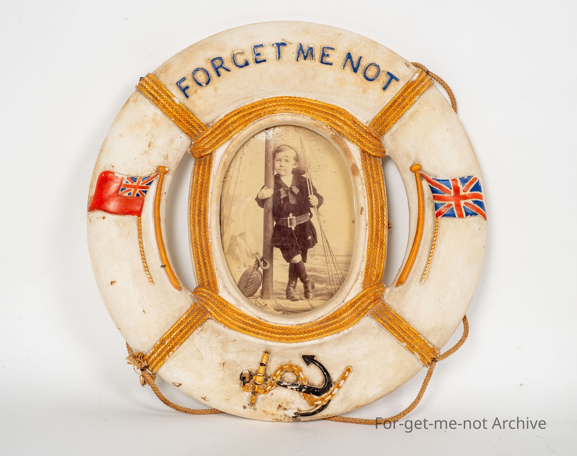 Ornament/ picture frame in the form of a life Bouy, with pic of boy