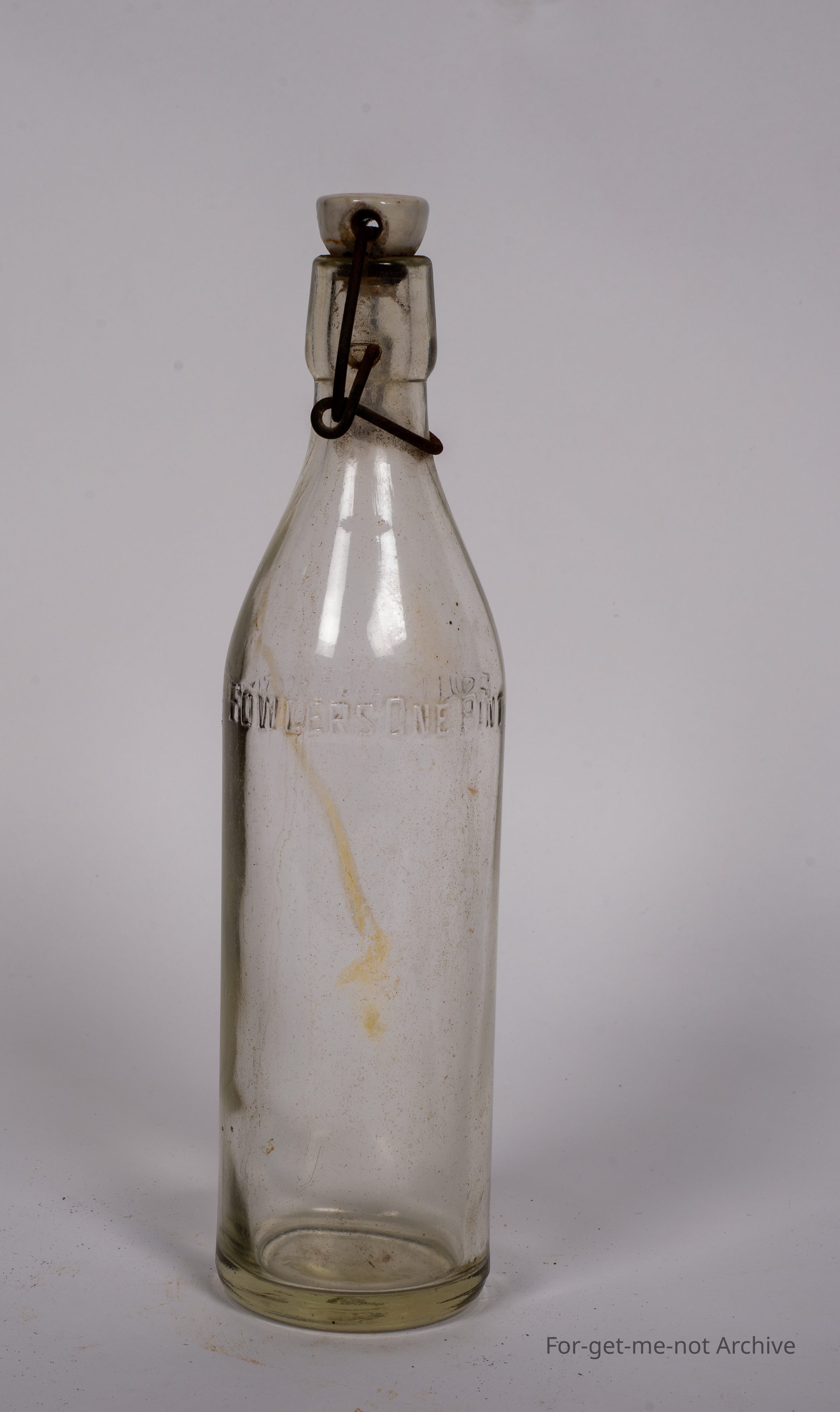 A Fowler's Vacola 1 pint bottle. This has the original bale and ceramic lid which says Fowler's Melbourne.