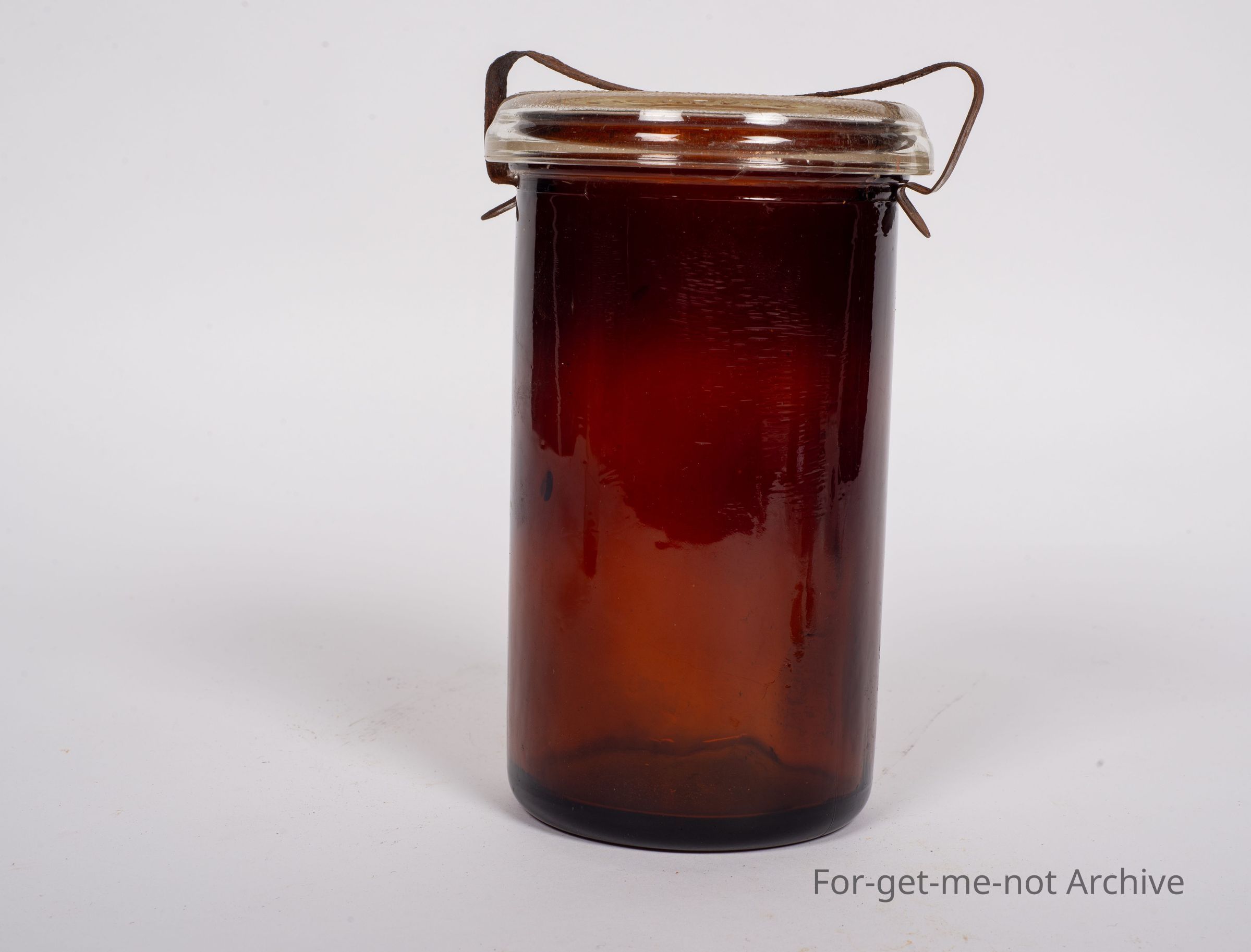 a Vacolas jar amber colour number 31 with a glass lid and the clamp,