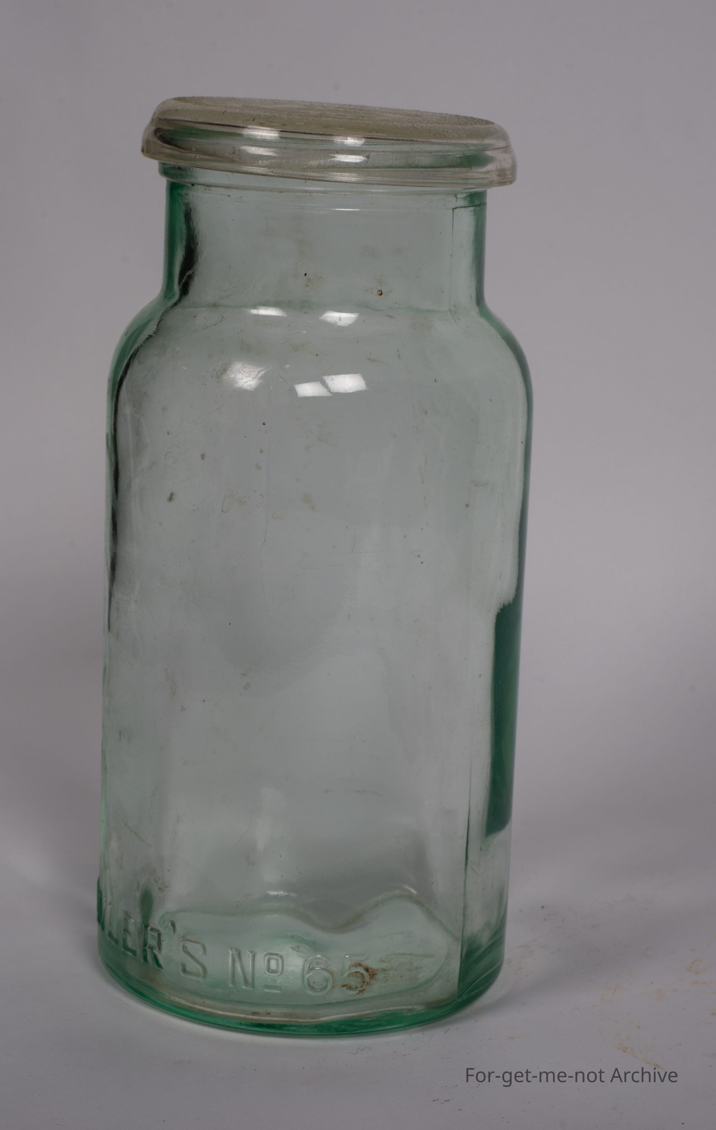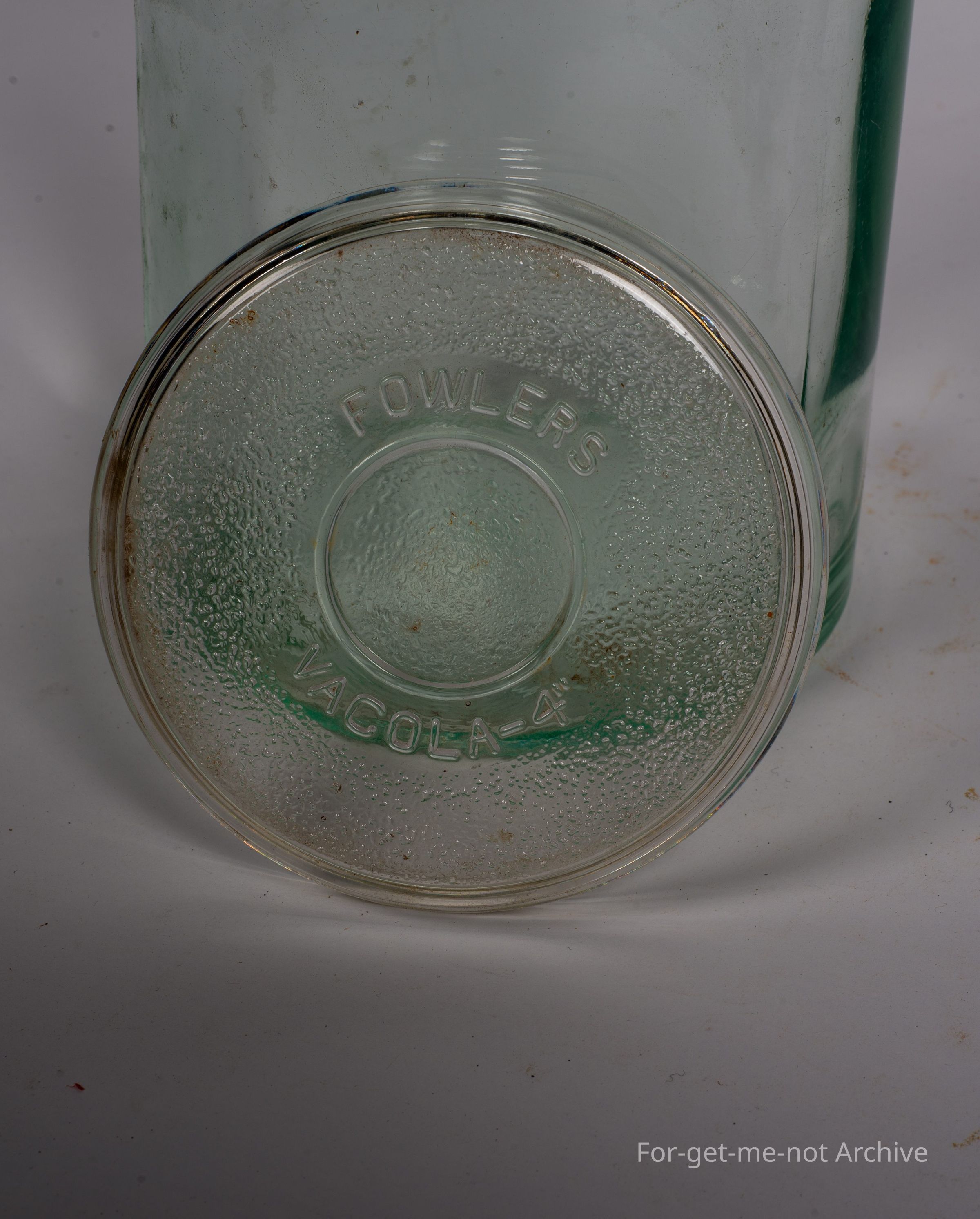 Fowler's number 65 bottle, quite large with the Fowler's Vacola 4 inch lid. This is a very complete one.