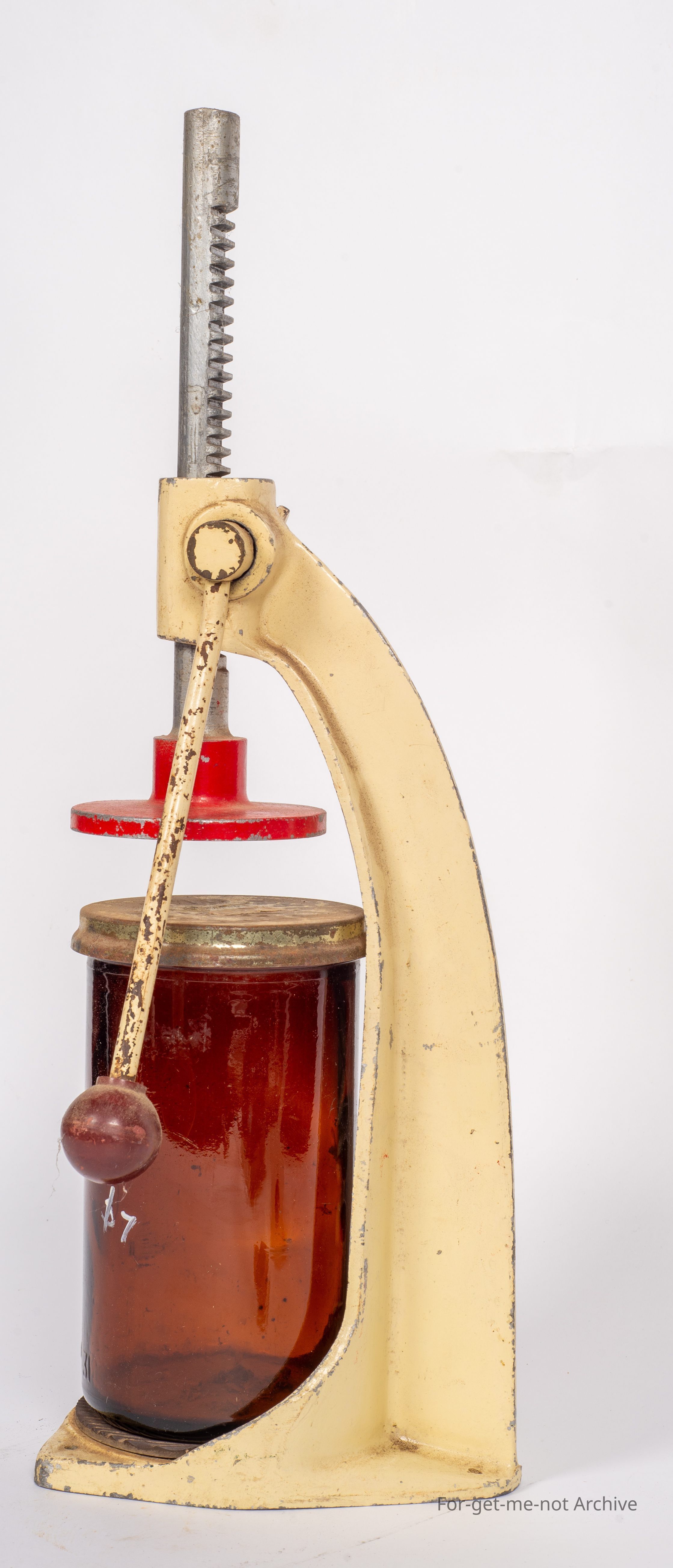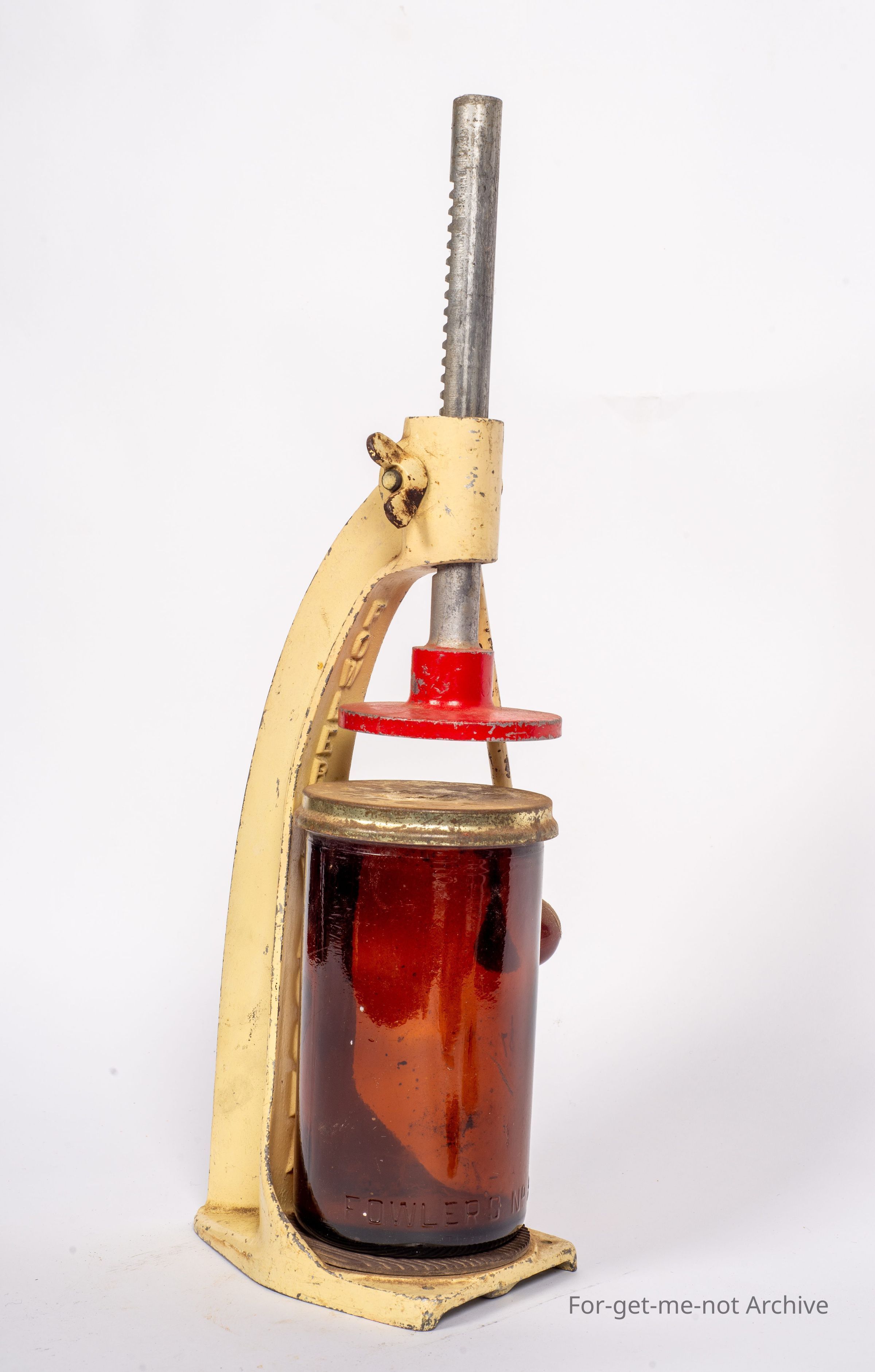 Is the Fowler's Vacola, lid press. This is with a number 31 amber glass, jar with the lid just to show how this apparatus works. Value with the bottle,