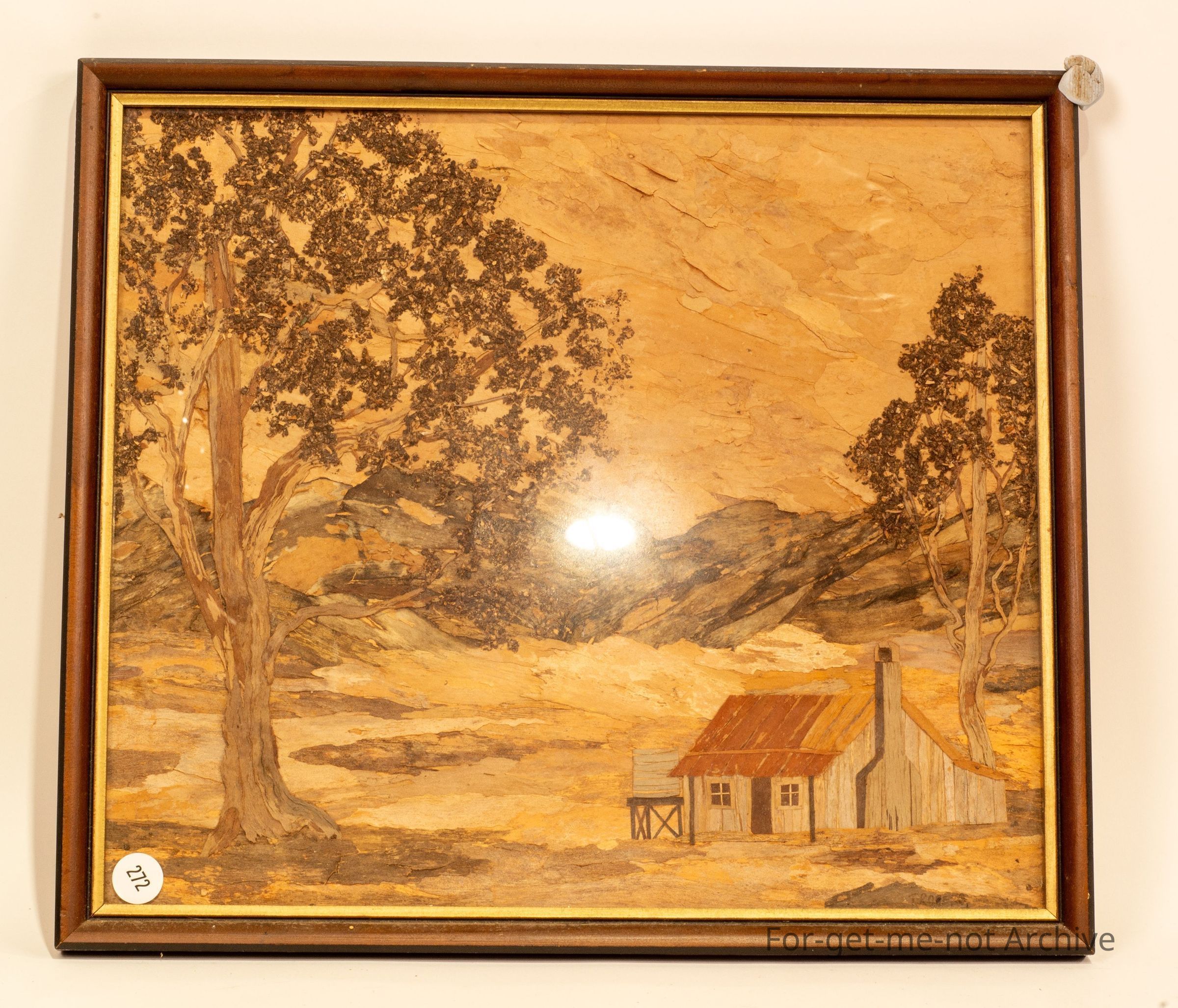 Framed painting made of bark