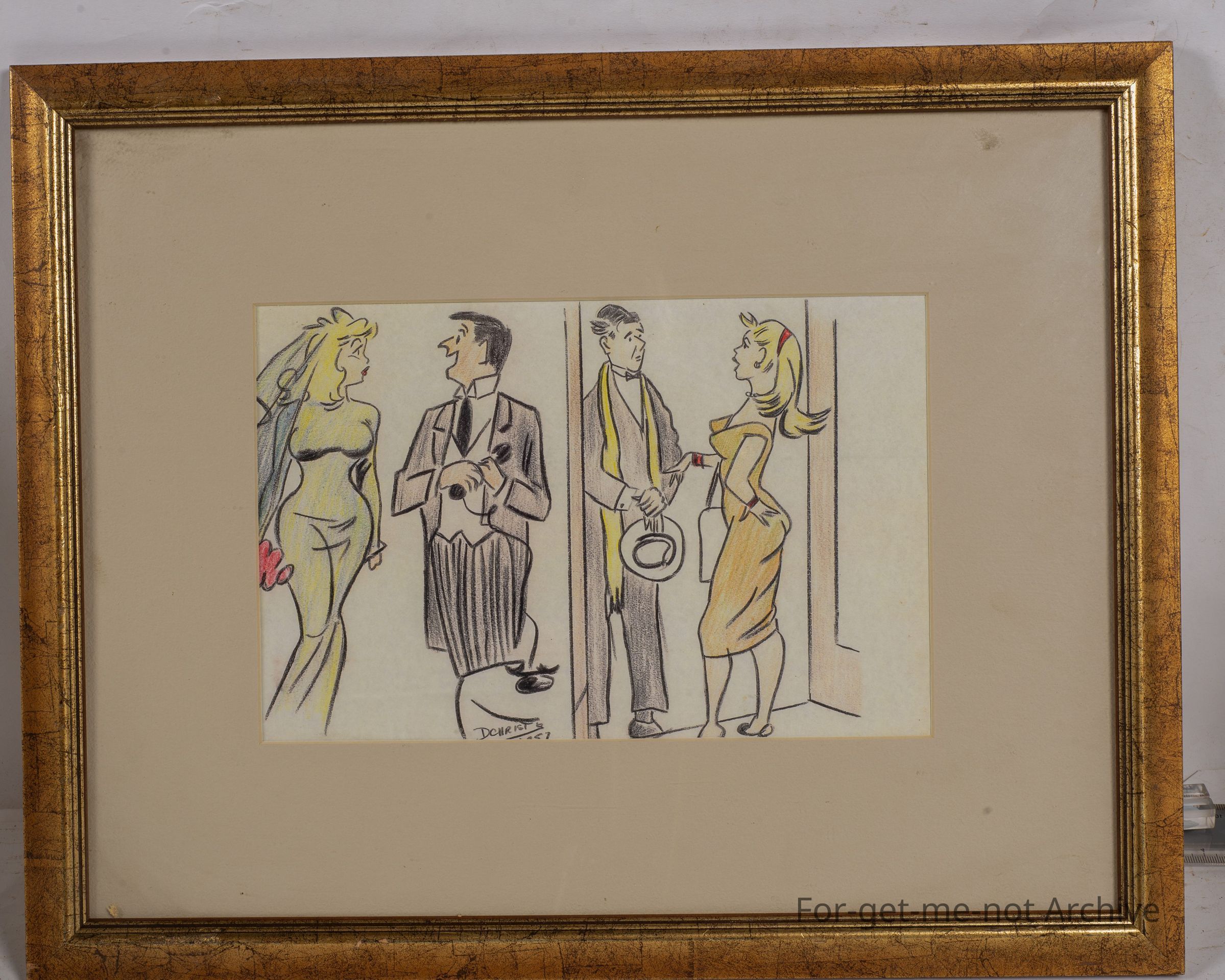 Sangeet Collection. This is a framed comical, scene of 2 separate pictures of a bloke and a woman, dated 1957 appears to be hand drawn by Dchrist