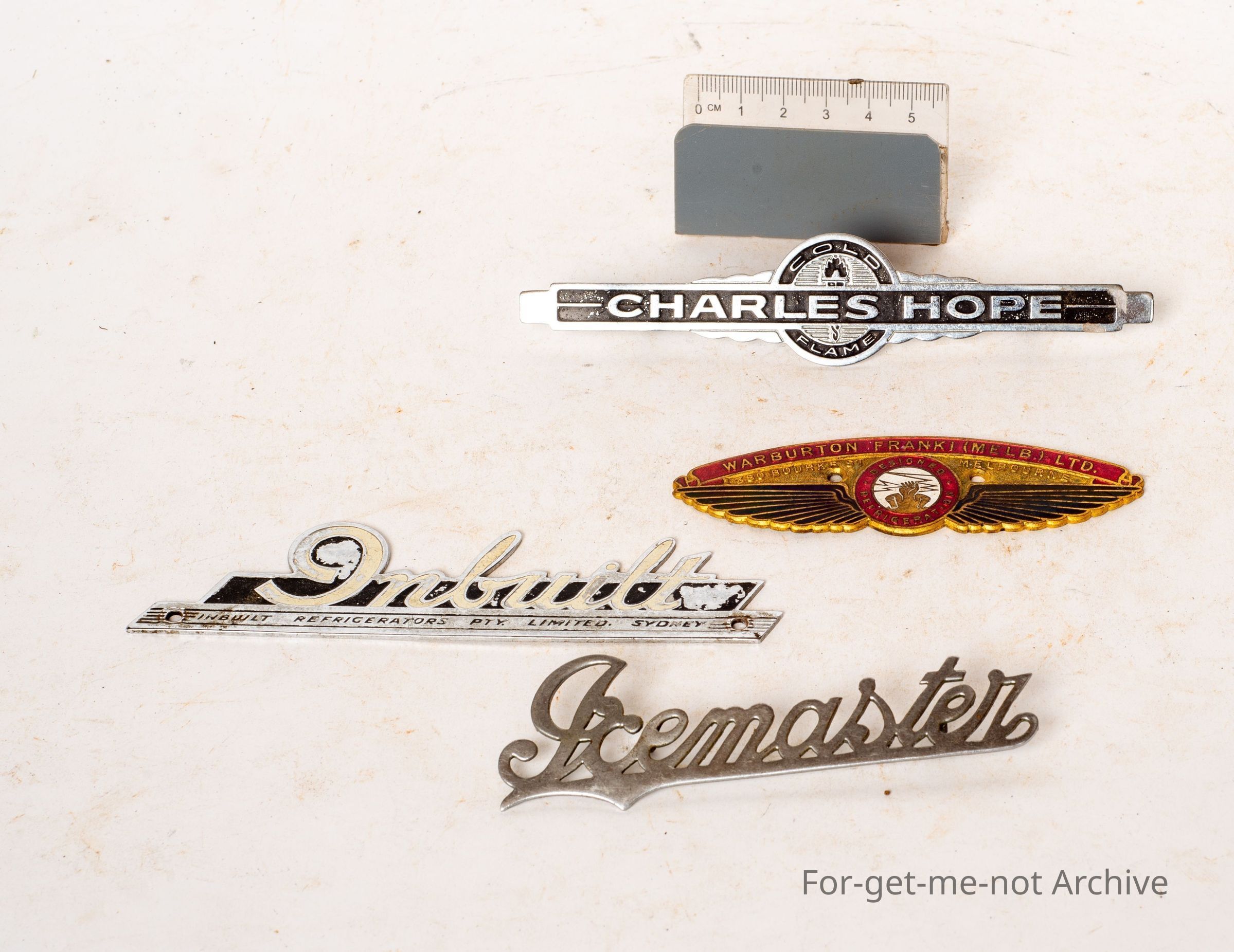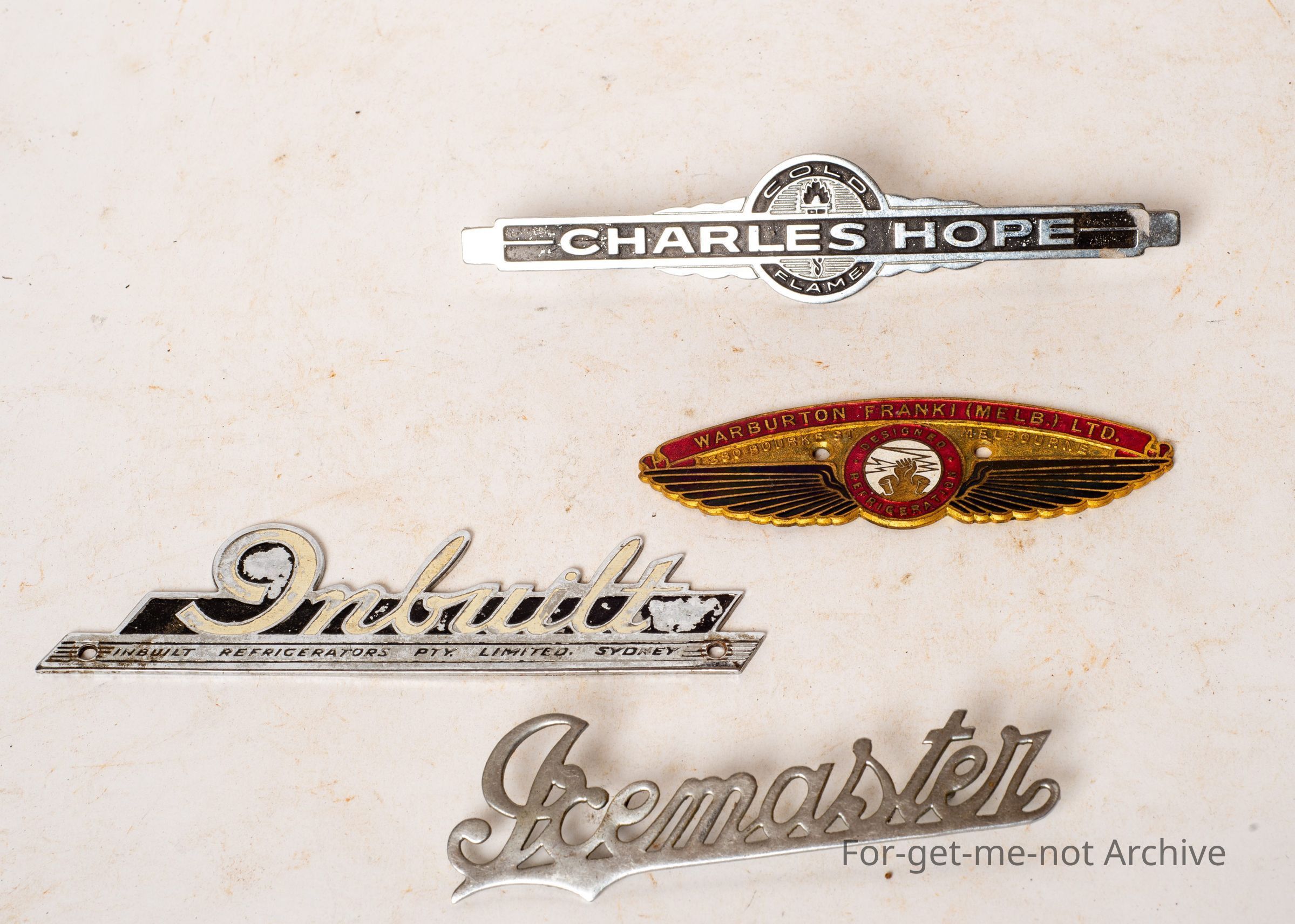 These are 4 fridge badges from various manufacturers of refrigeration. Some enamelled, all interesting.