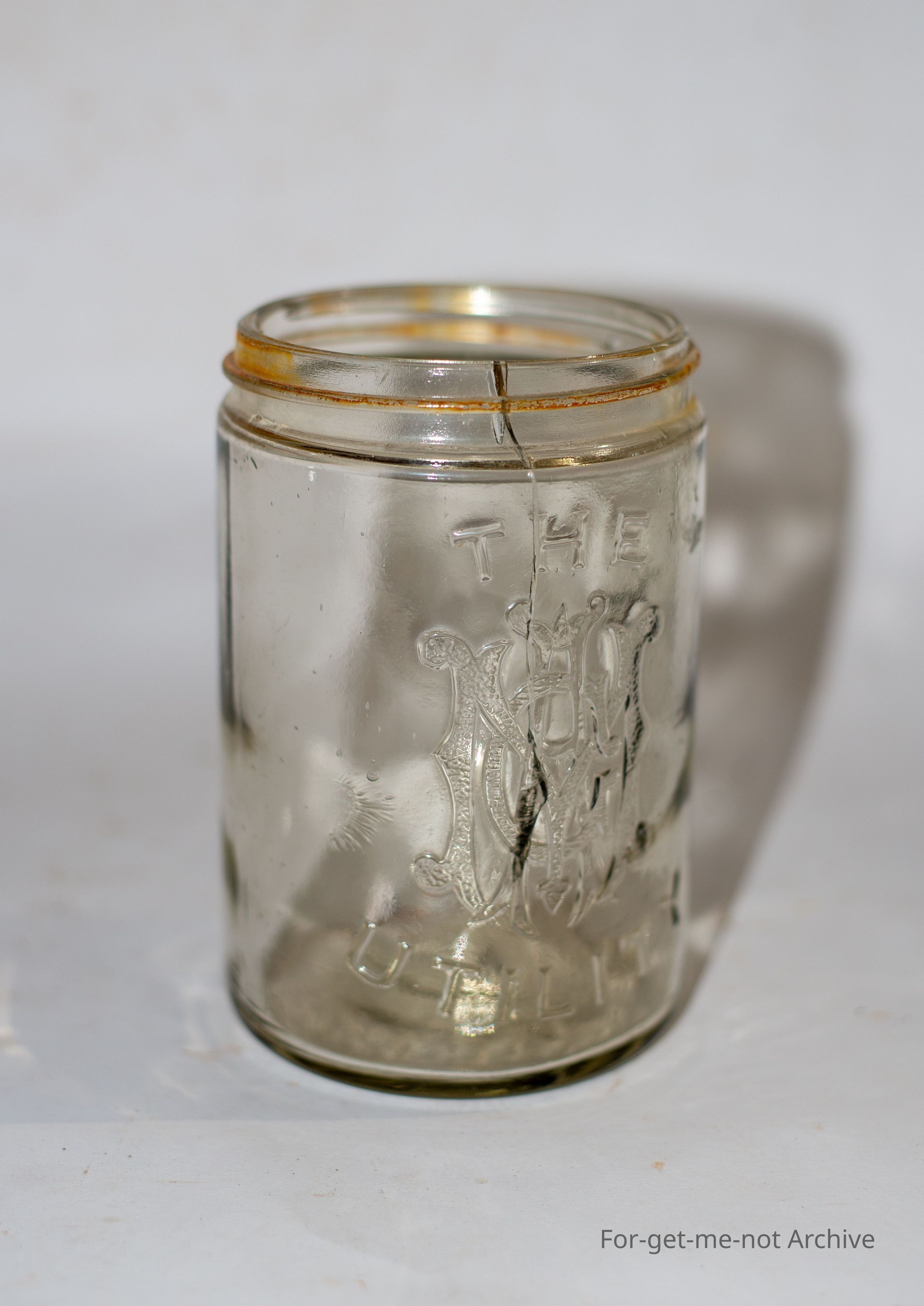 The Utility Fruit jar with a monogram, a very unusual jar to find, the mongram is for AGM for Australian Glass Manufacturers , utility jar