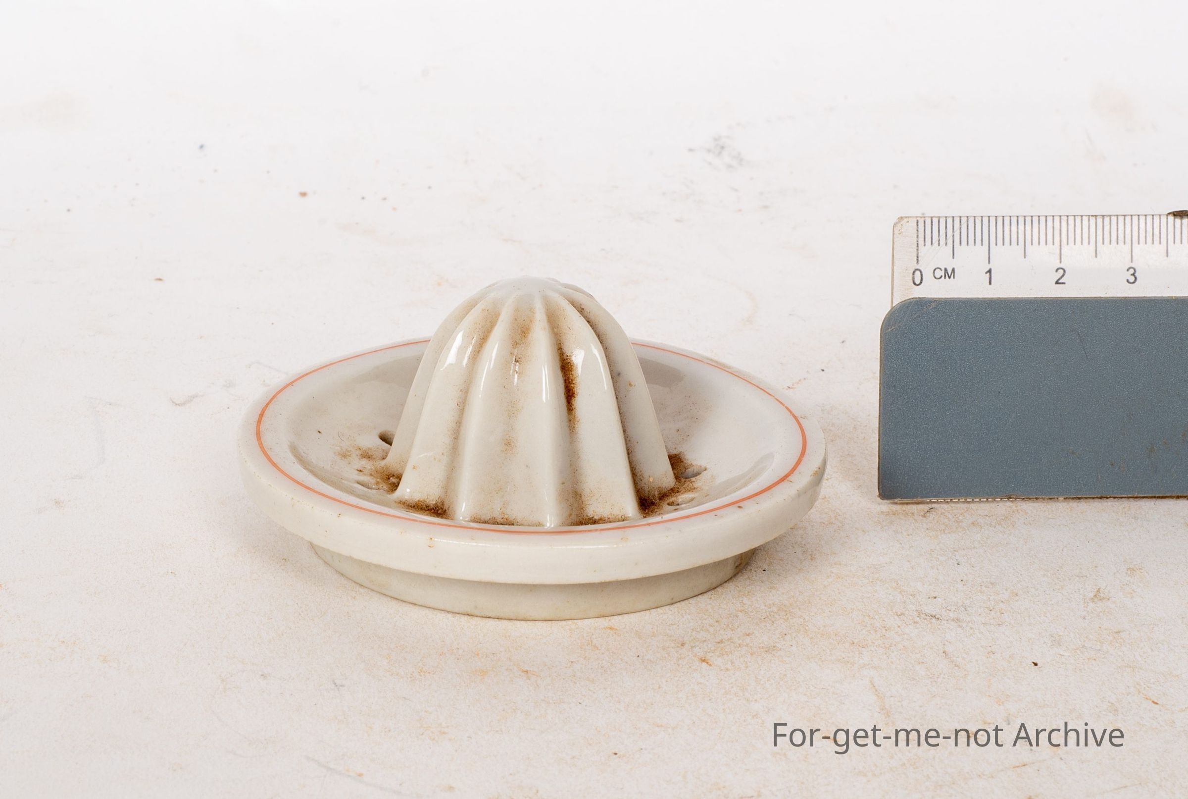 This is a little ceramic, the fruit squeezer. Maybe for limes. Quite dainty, may have fitted into a cup
