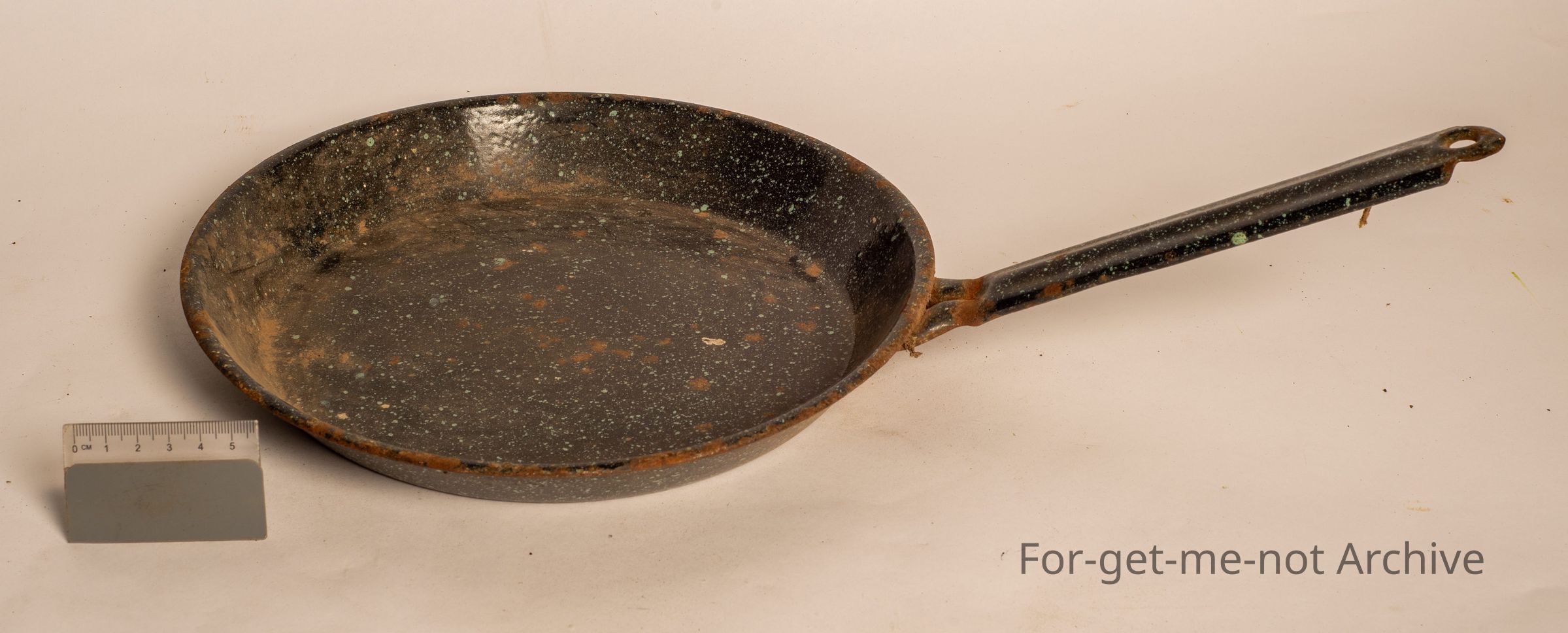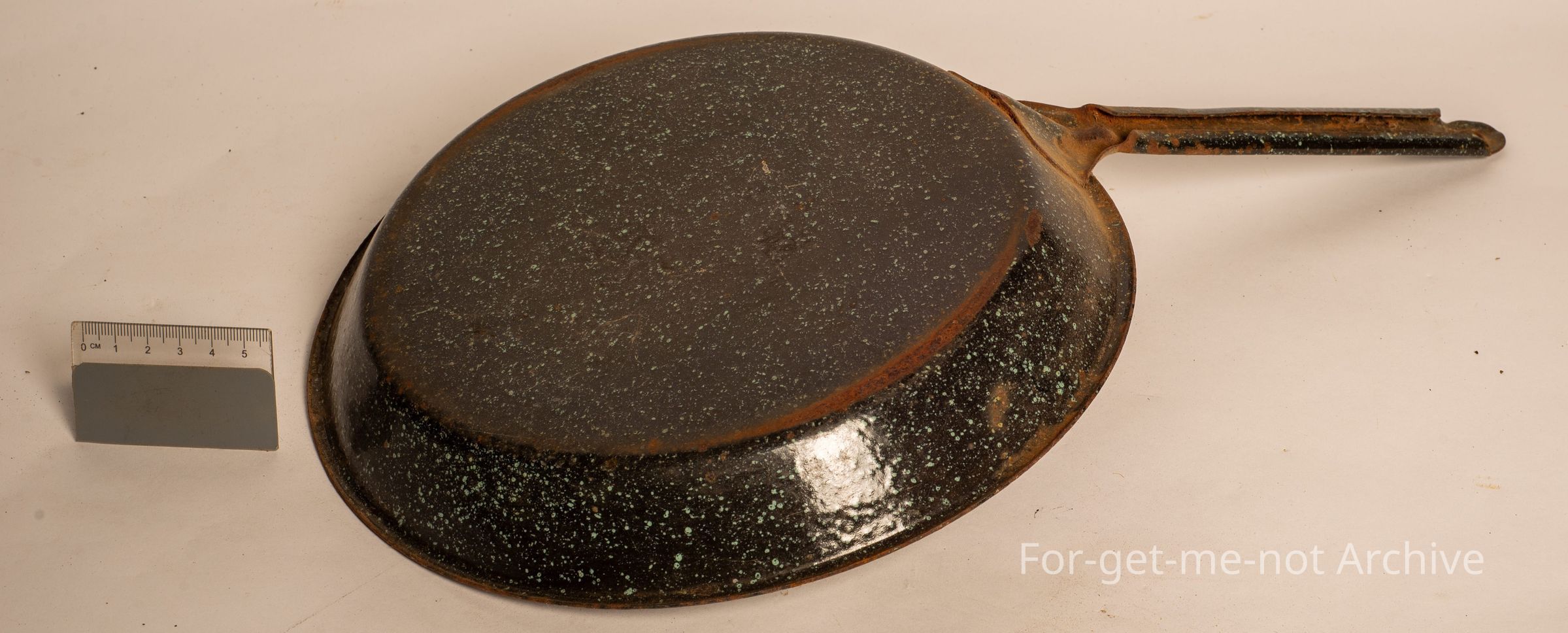 This is a medium sized frying pan, all enamelled in a flecked design.