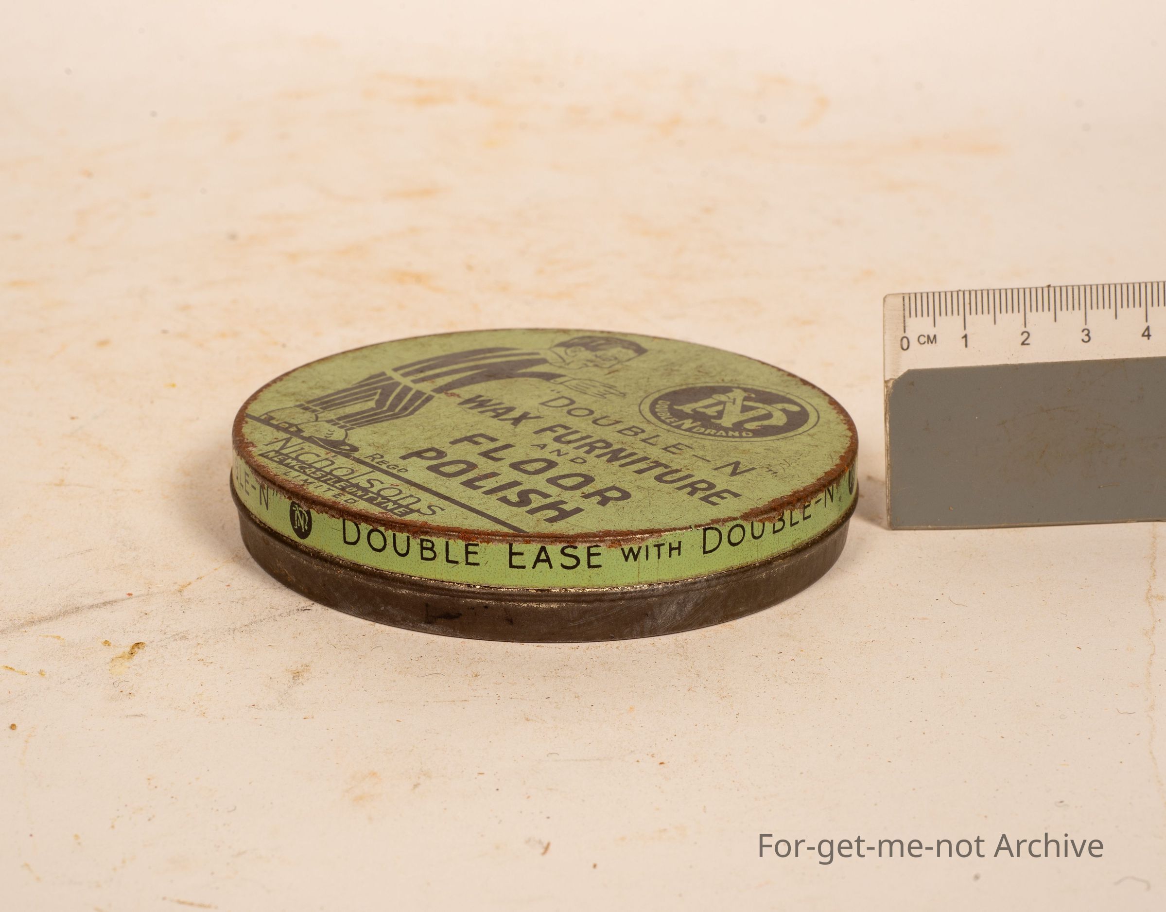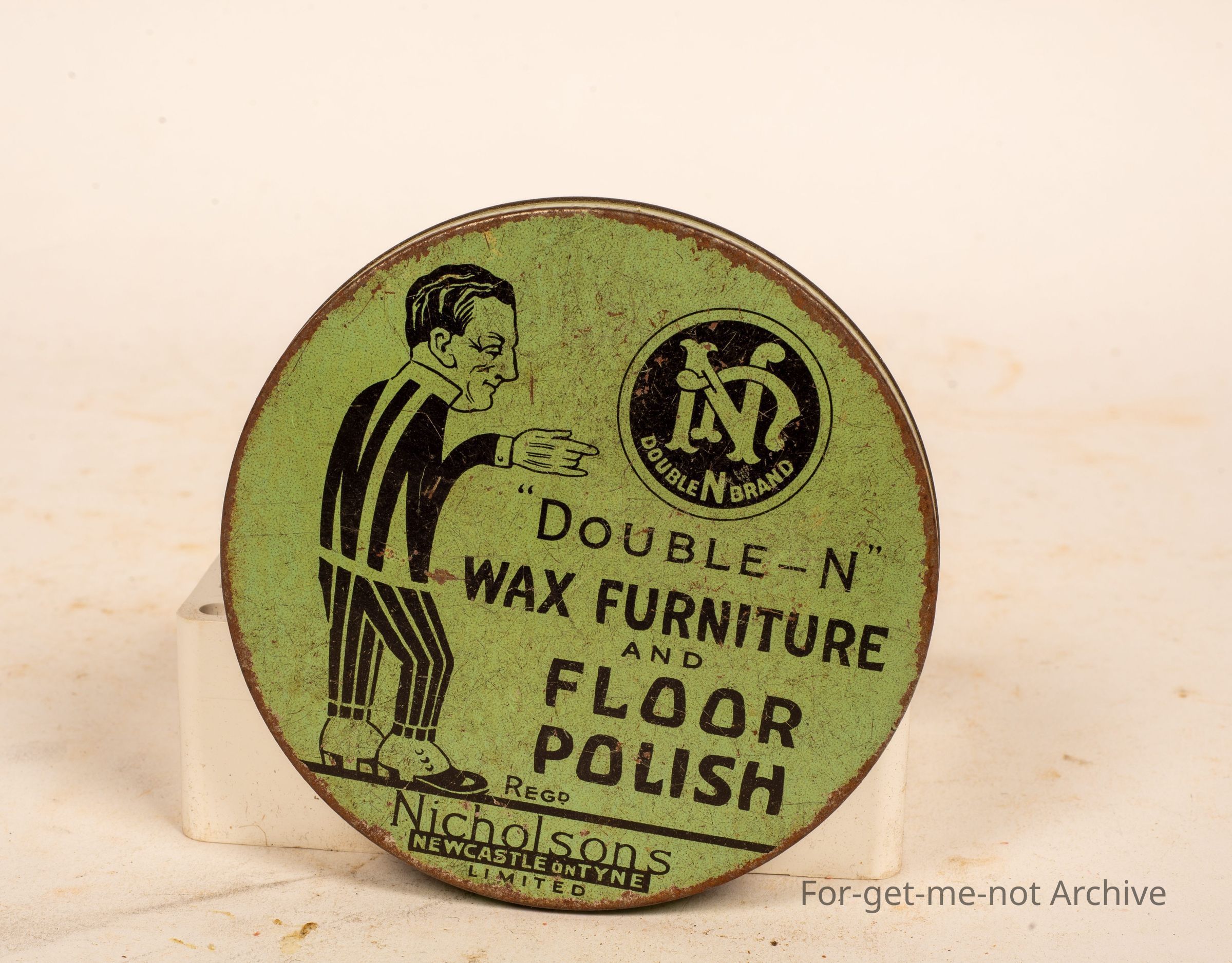 A tin of Duble-N Wax Furniture, wax for furniture and floor polish, packed by Nicholson, Newcastle, On Tyne, an English Tin, nice graphics.