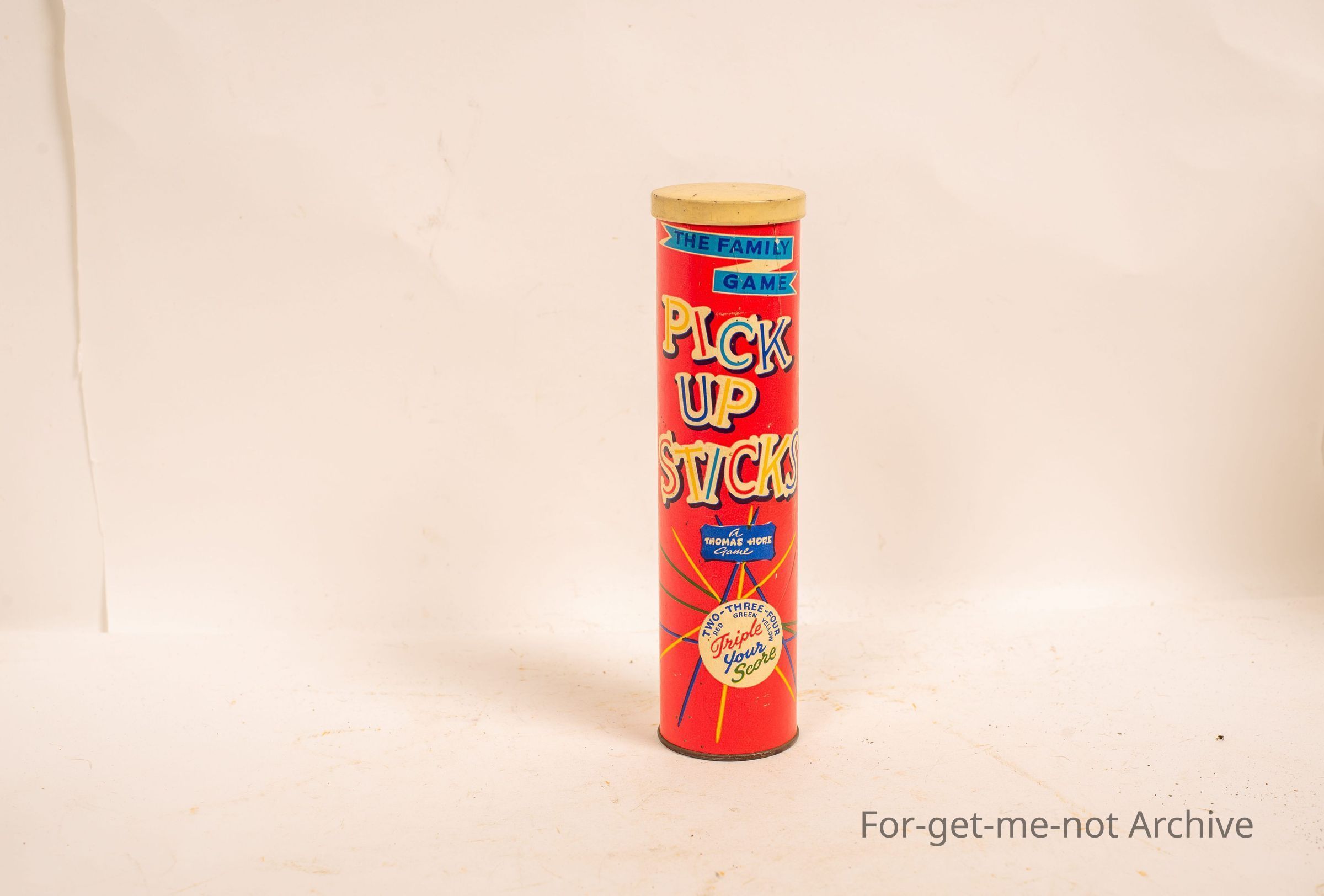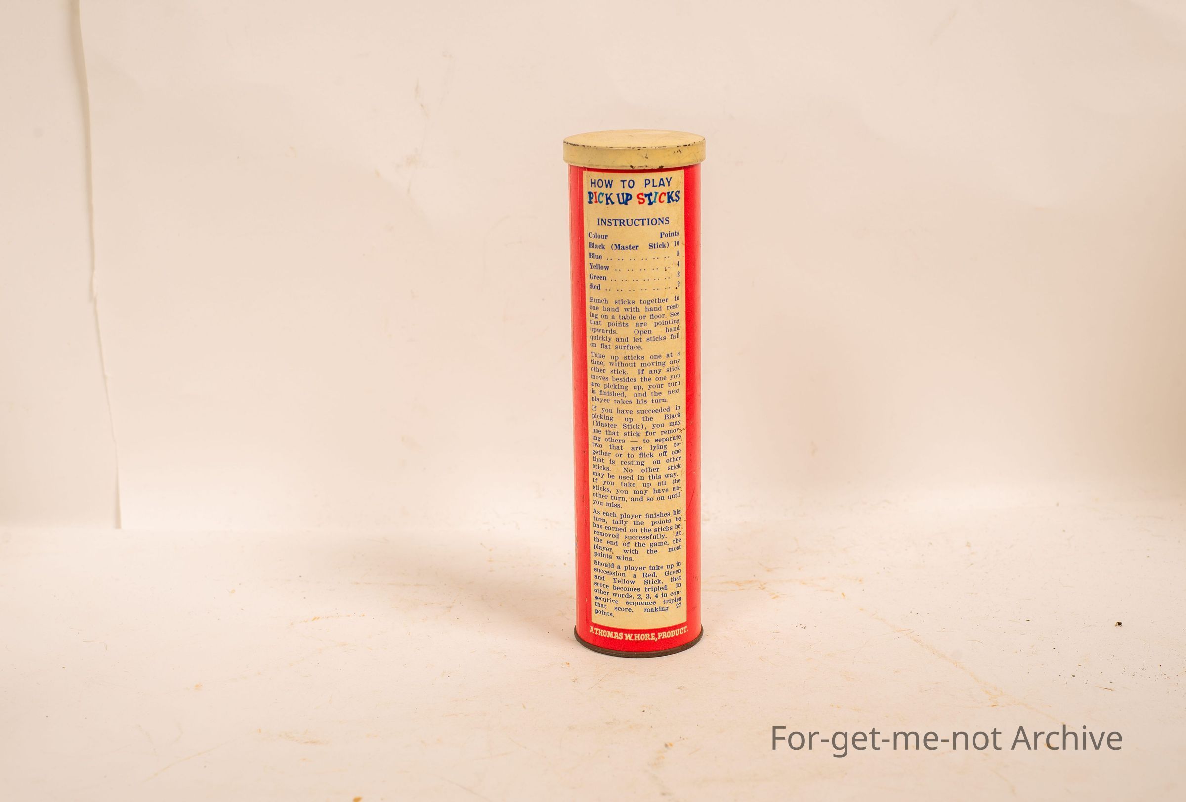 Another cylinder of pick up sticks. Kids game. This one in good quarter. Instructions on the back. With instructions on the back.