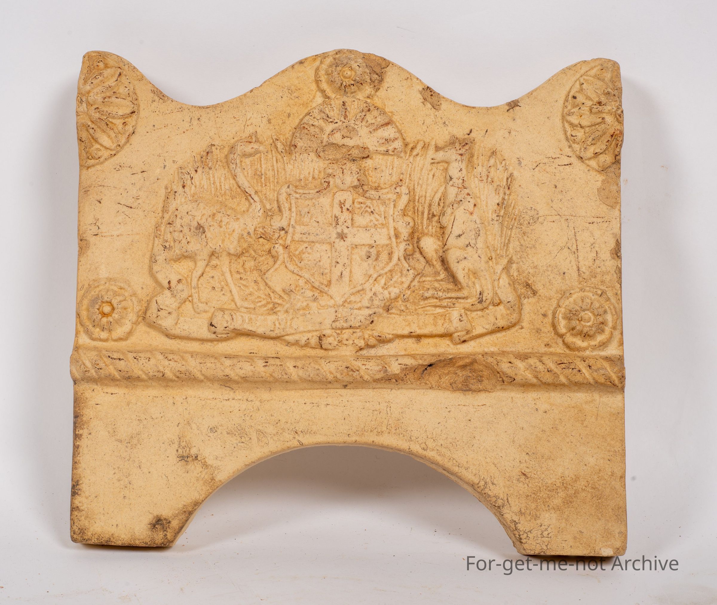 Another fired garden edge tile, early potty. This one has the Australian coat of arms, with Advanced Australia on the bottom of it. A very decorative piece, not attributed to anyone, any pottery, but an ash trail.Collection