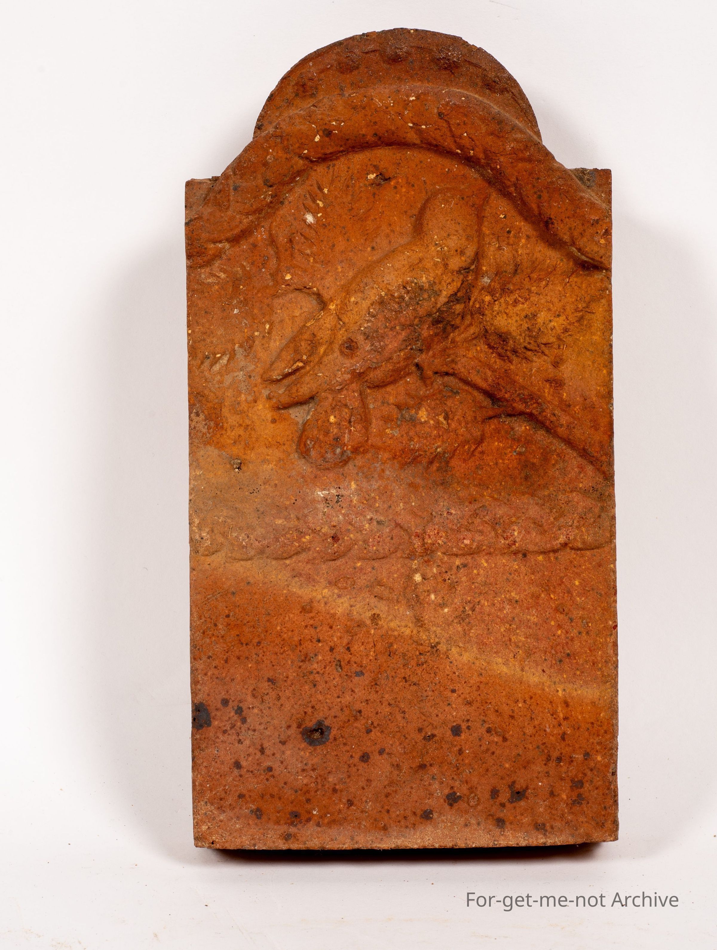 Stoneware Pottery. This time, a garden edge tile, fairly narrow, This one has the impression of a bird sitting on a branch in the top. Quite an attractive tile. No, no knowledge of who did this, but it would be Australian.Collection