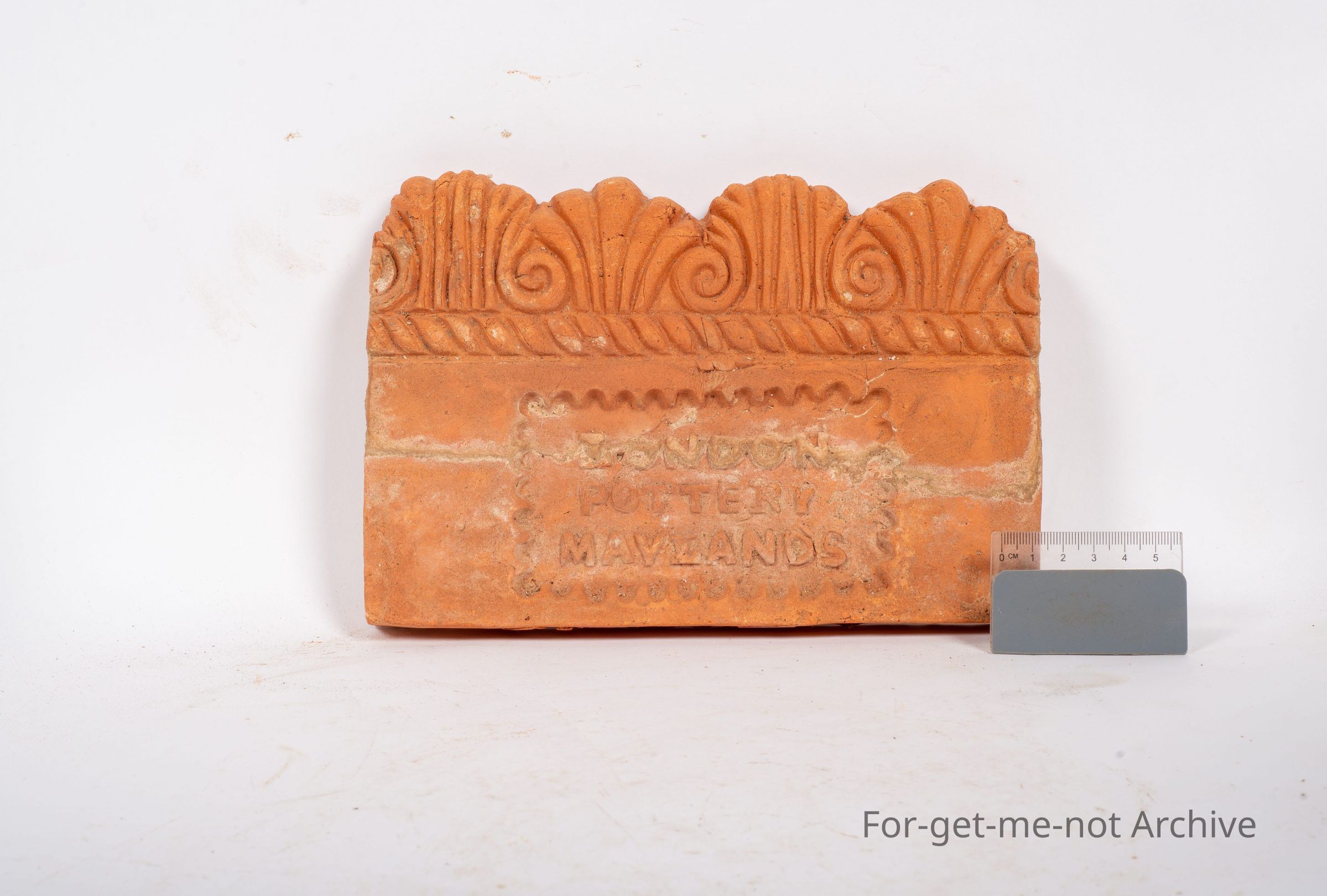 Another garden edging tile. This time from London Pottery Malins. This one is very decorative with beautiful stamping. This is from Halford's London Pottery and quite a scarce child.Collection