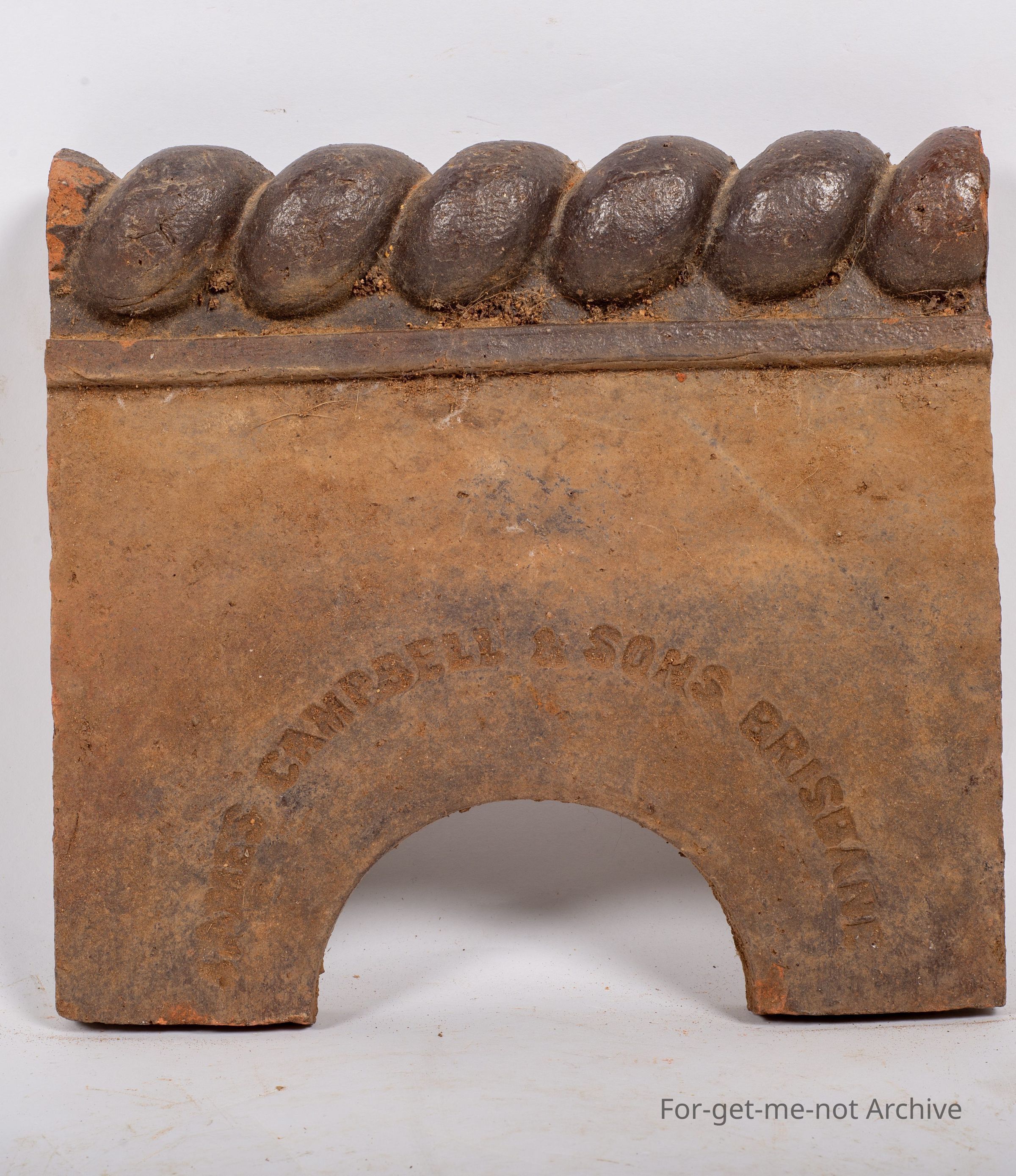 Garden edging tile, barley twist top. The arch, this one is stamped James Campbell and Sons, Brisbane, a lovely tile,
