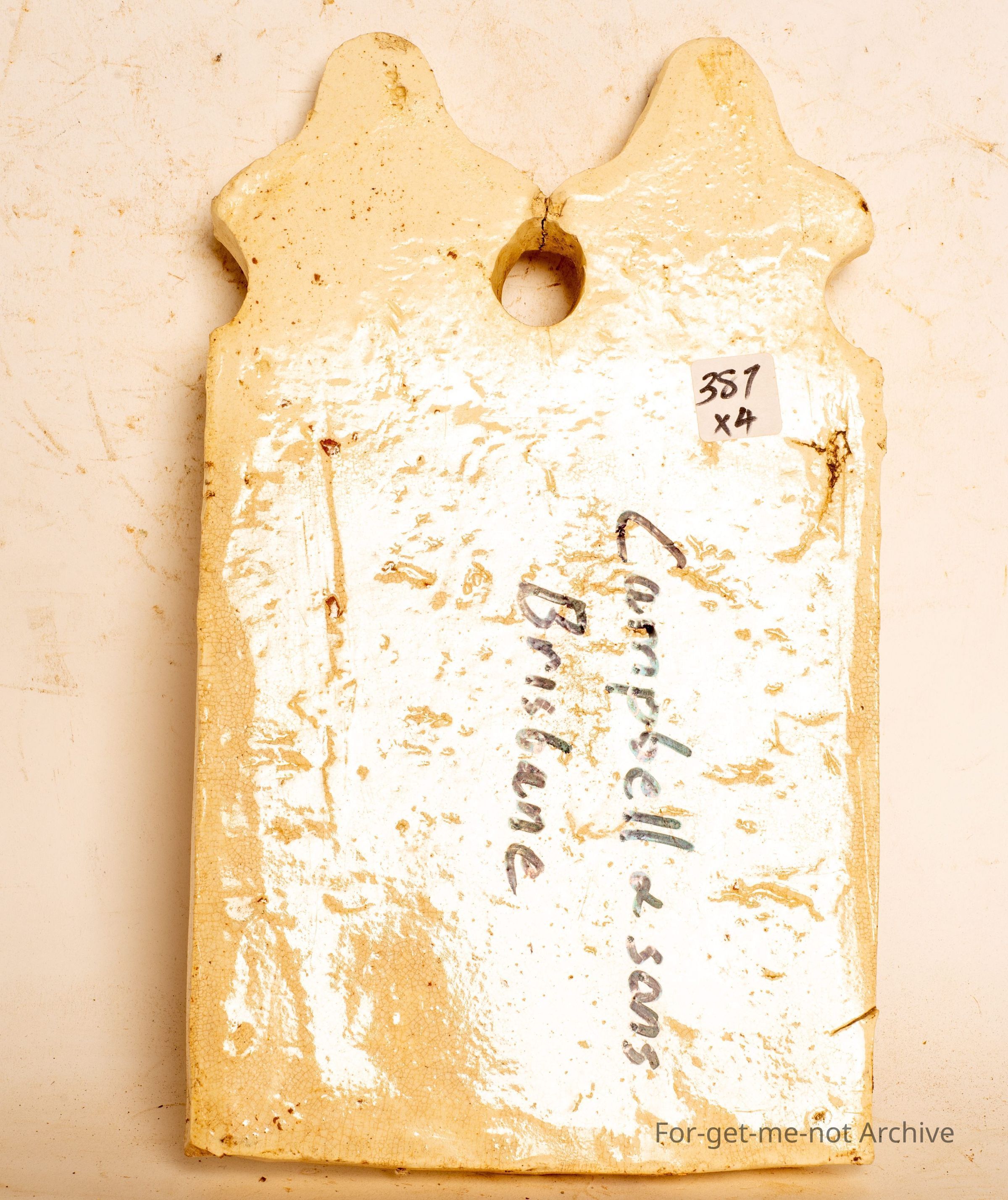 This is unusual with a white clay with a white glaze. This is attributed to Campbell and Sons Brisbane.