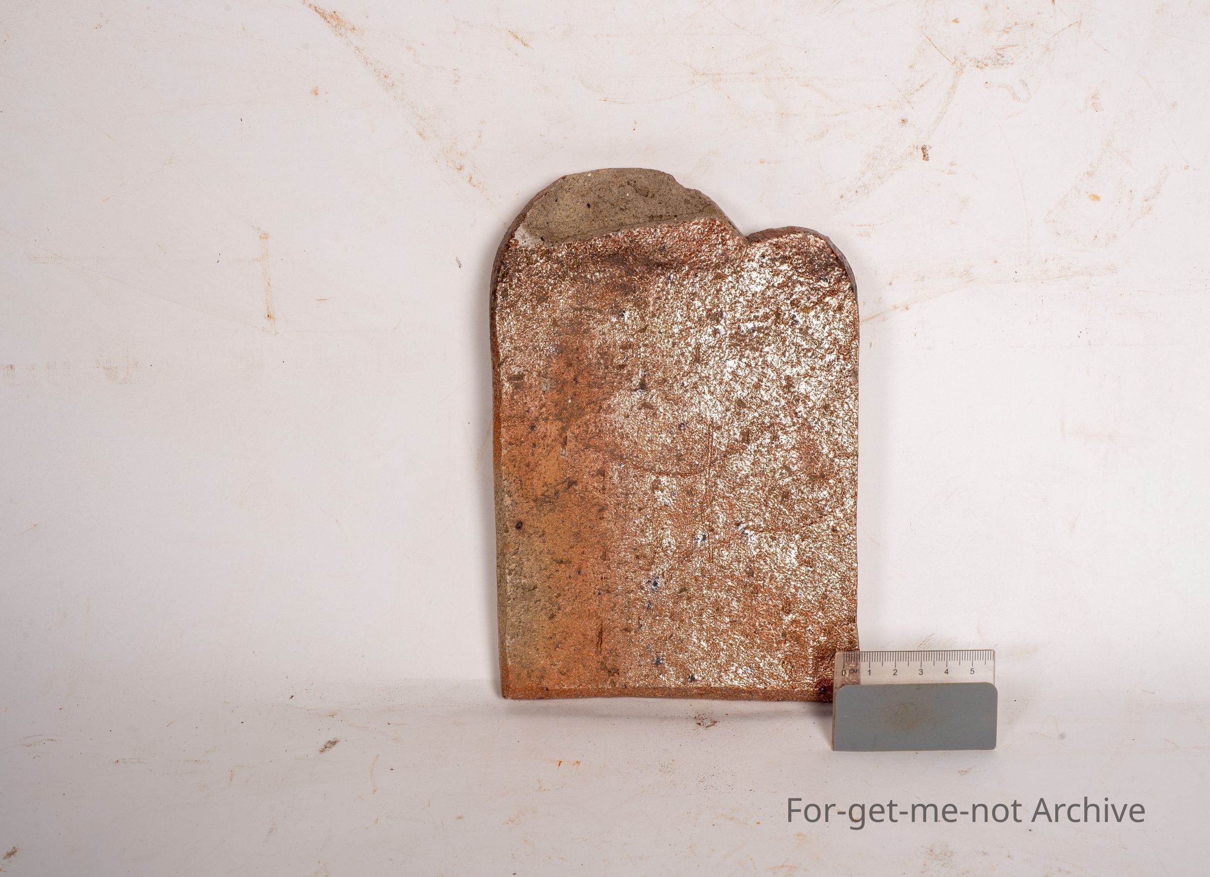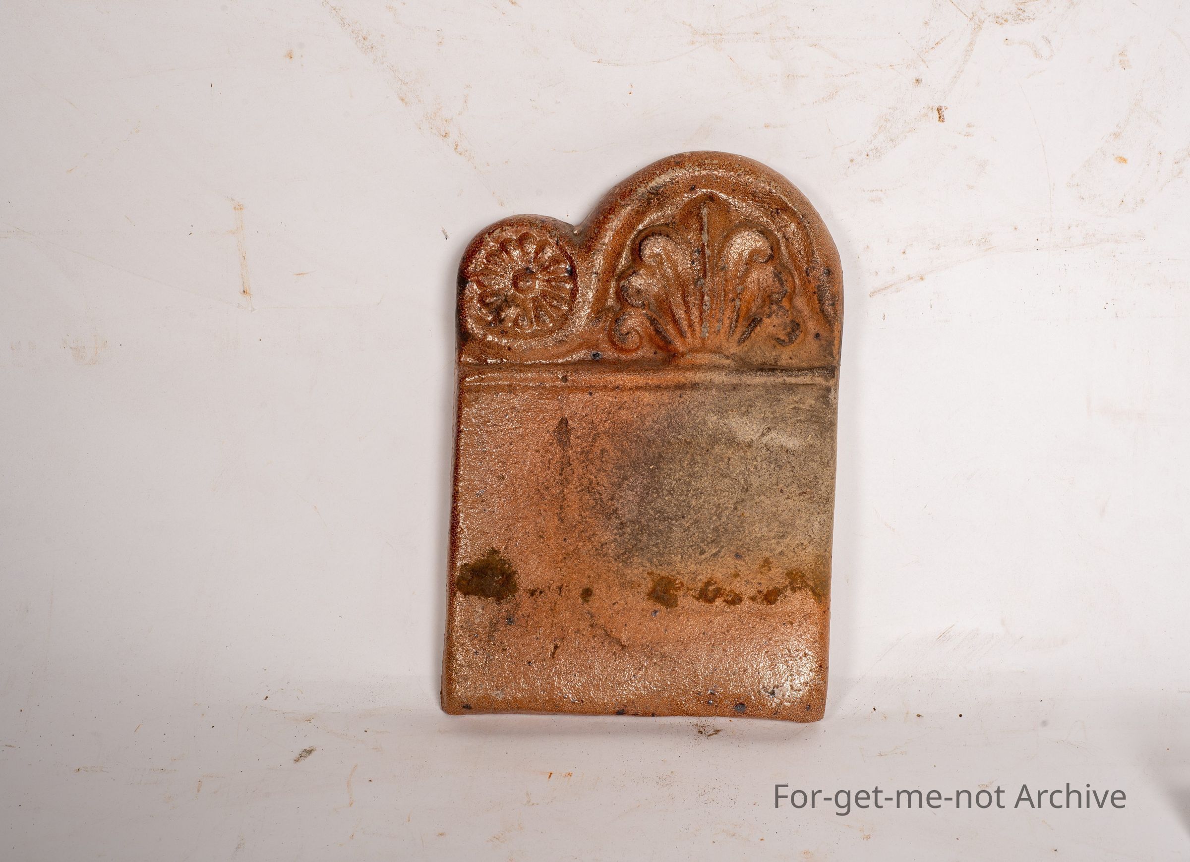 Garden edging tile. Ornate top. Smaller size. This is, salt glazed piece. Probably pretty early
