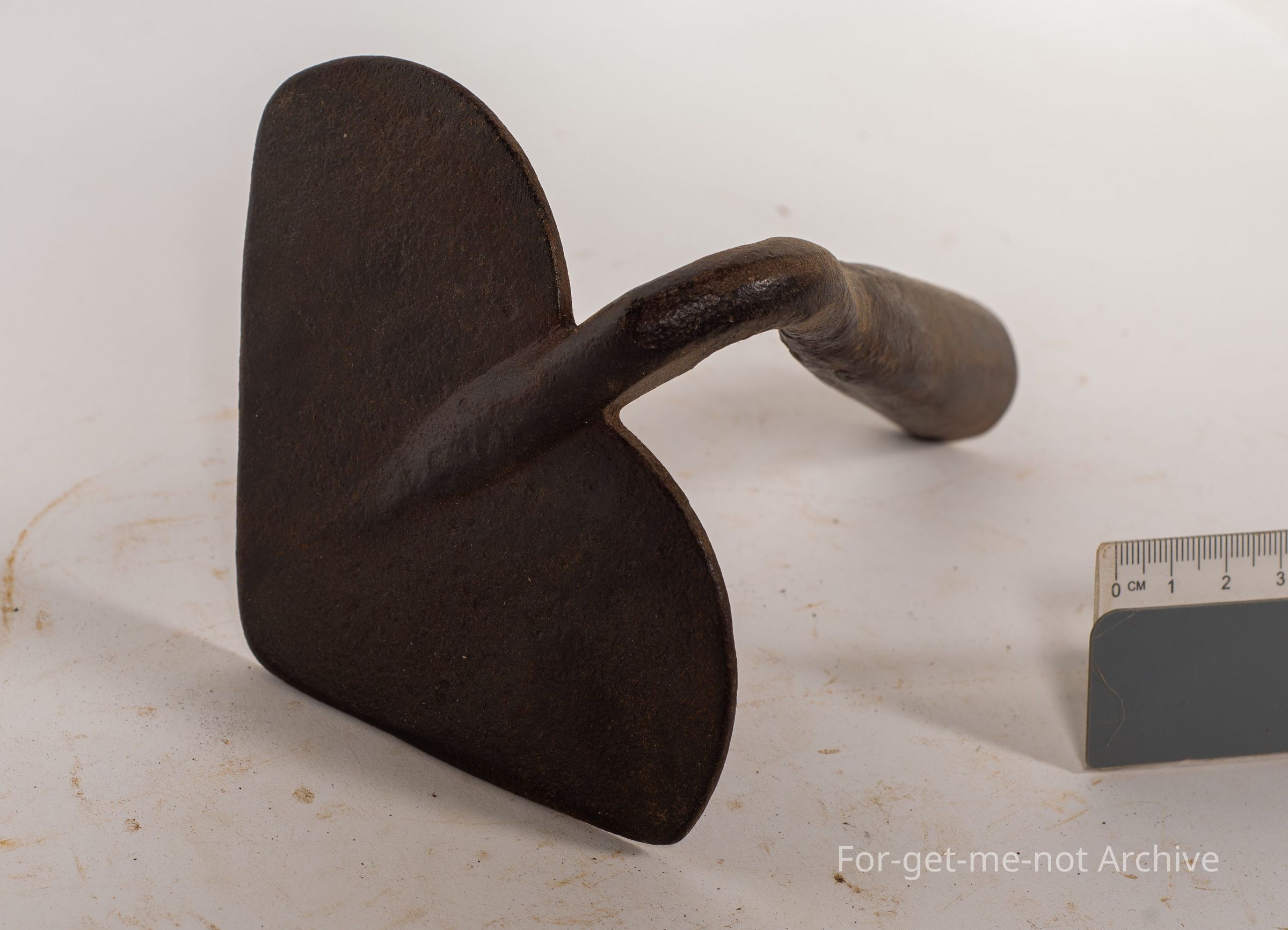 This is a delightful little gardener's hoe. The head is in the shape of a heart. Handle missing, but a charming little piece. Forge made.