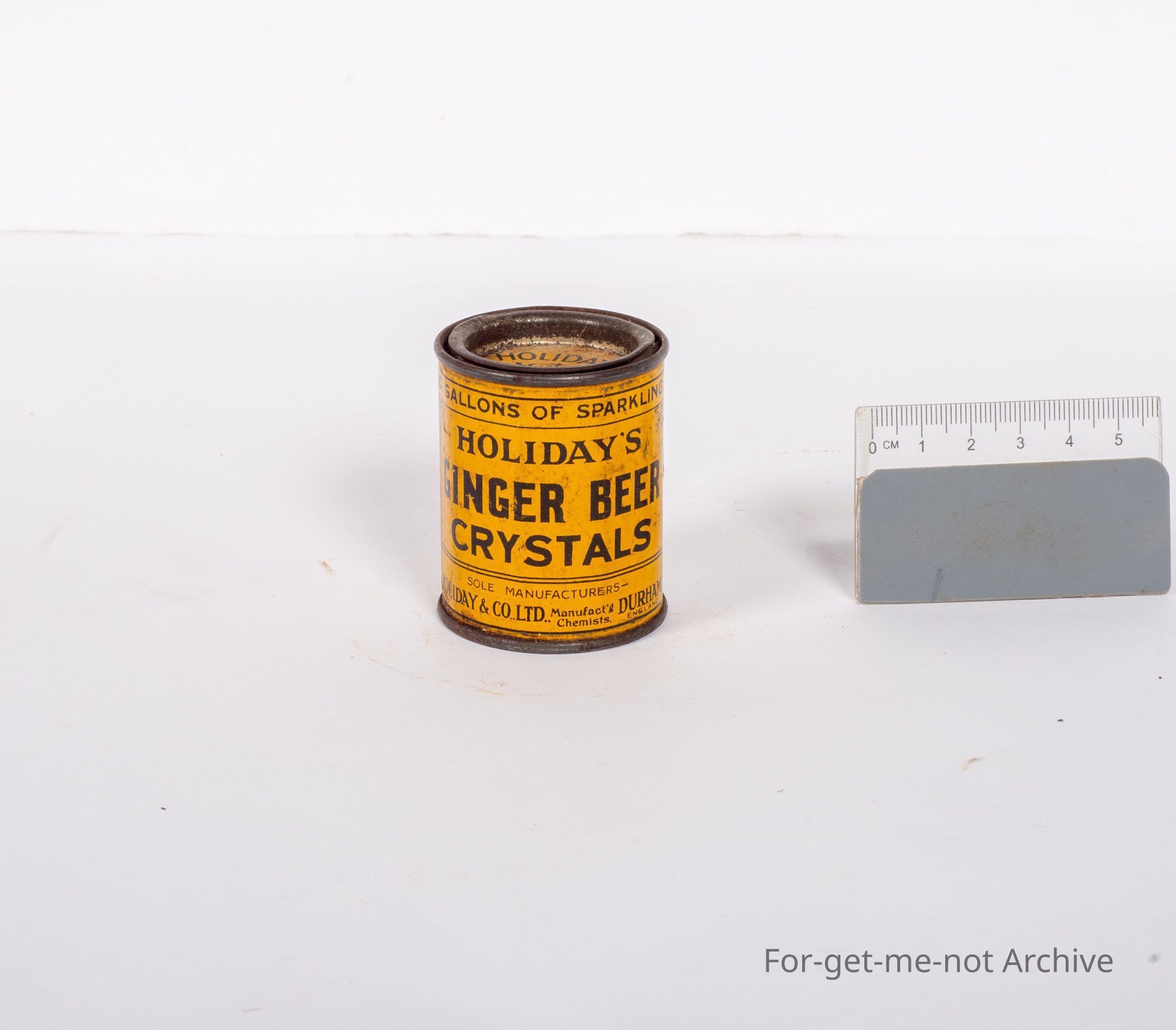 Holidays, ginger beer crystals, Sole Manufacturers. Holiday and Co. Durham, England. This is a quite little tin in beautiful condition explaining how to make the Ginger Beer. Still with the contents,Collection