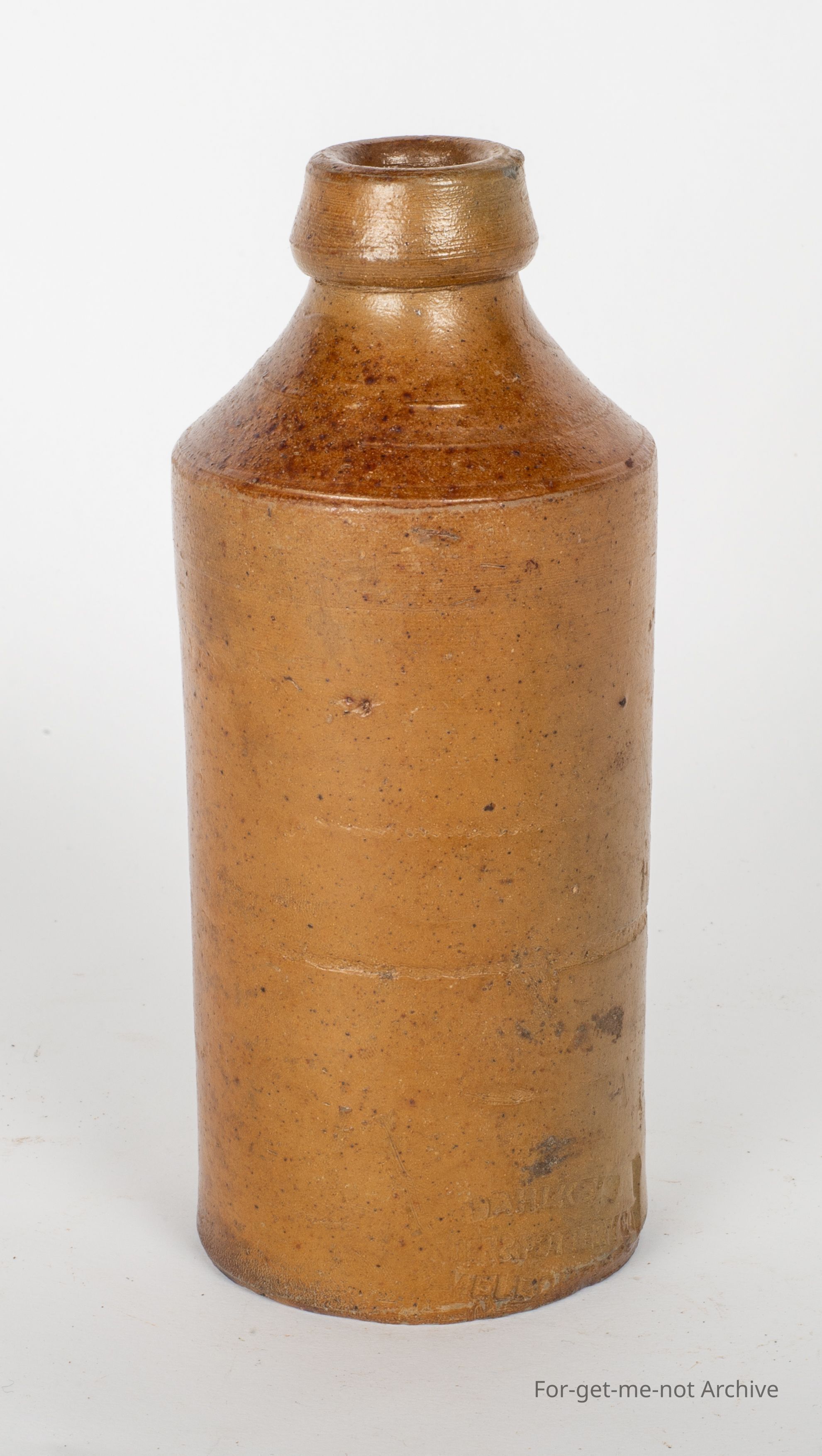 Made by Dahlke's Filter and pottery works mid 1800's the pottery was located in Nunawading, he was of Prussian decent and was most noted for his invention of an improved water filter in Europe . After his success in Europe, he came to Victoria after he had suffered financial loss's in Europe due to a bad business decision . On arriving in Australia he commenced building and improving his water filter design with the support of local investors. This ginger beer bottle is a rare find from a pottery more focused on making water filtersCollection
