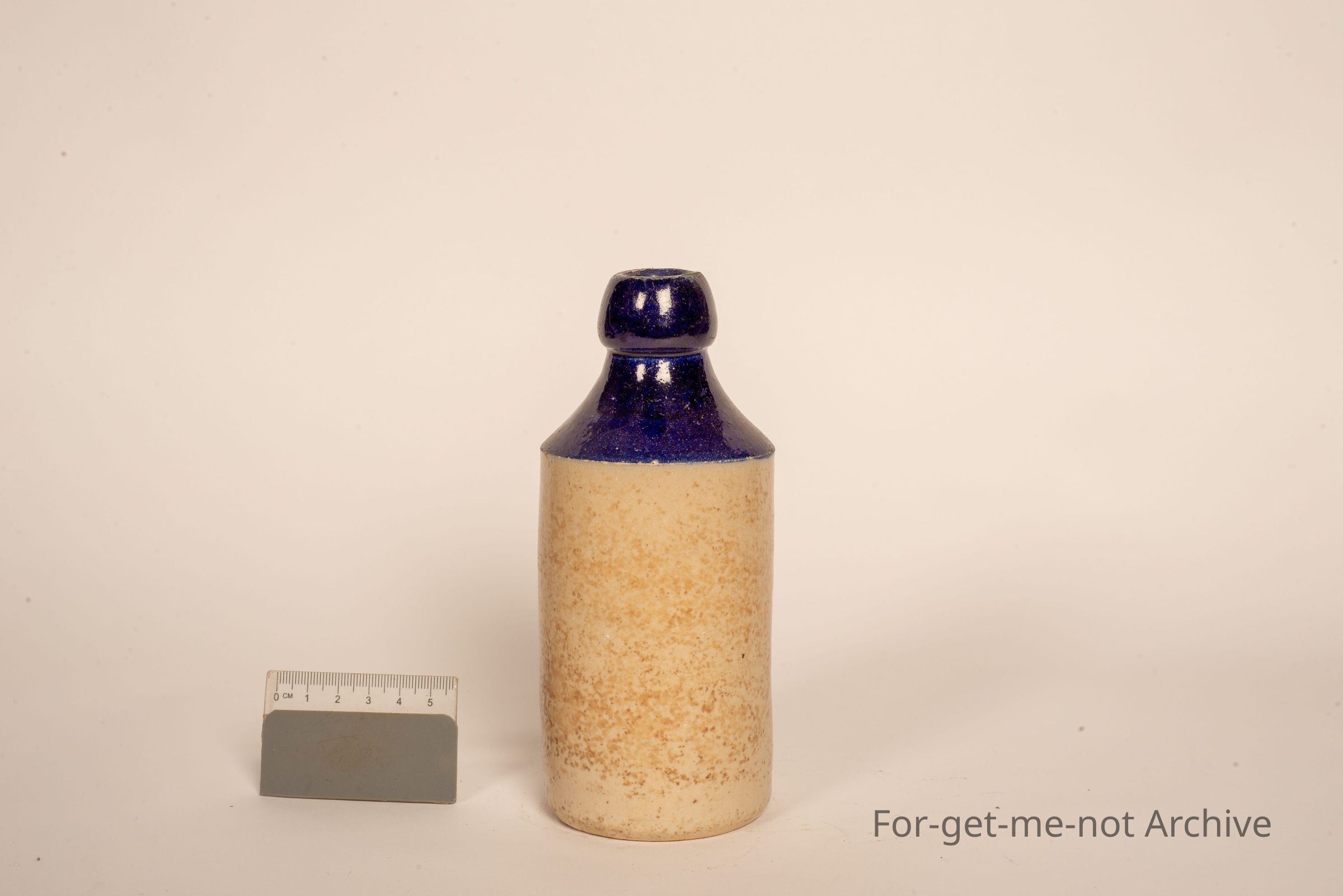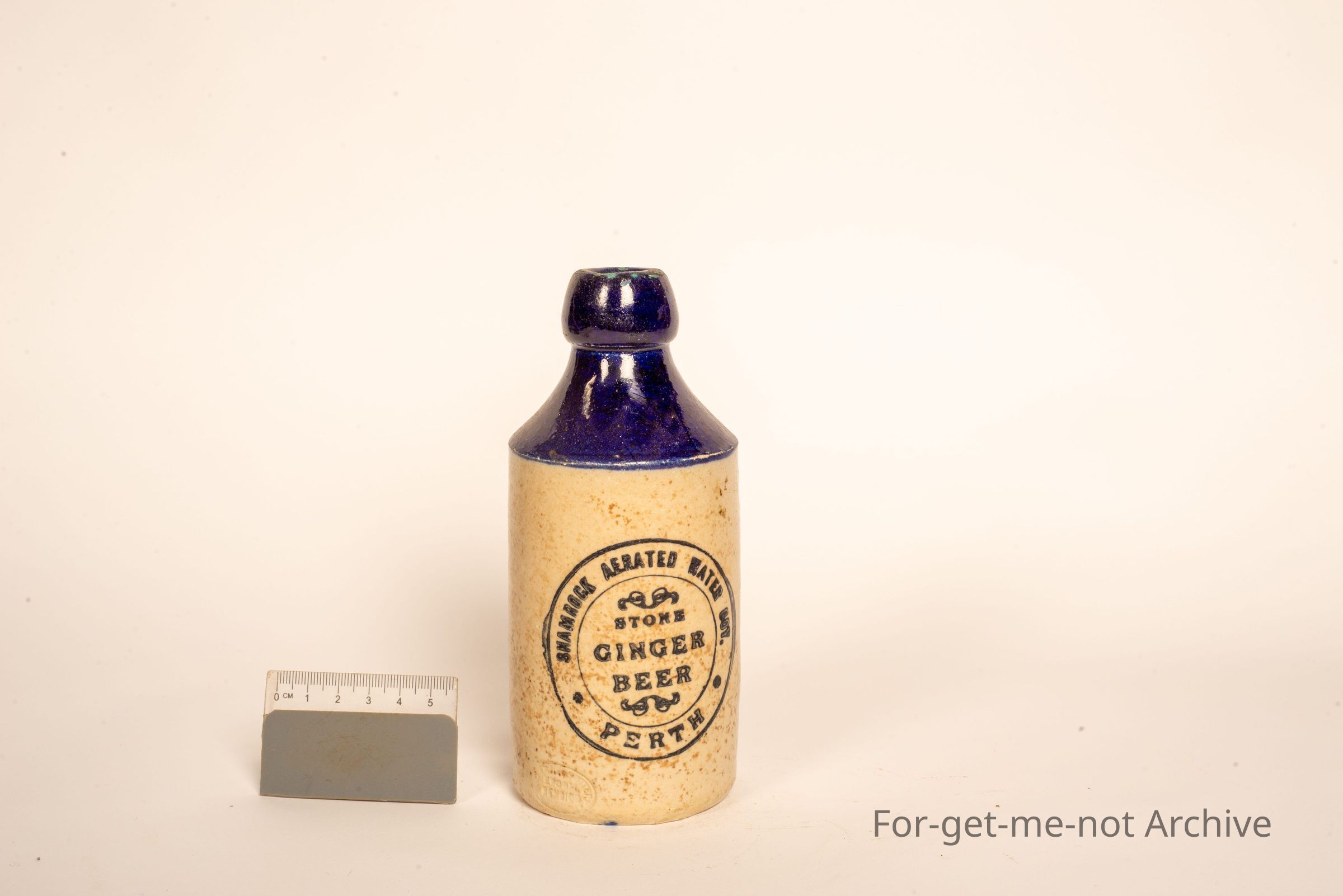 This is quite an attractive bottle. Blue glaze to the top of the shoulder. Ink stamped Shamrock Aerated Water Company. Stone Ginger Beer, Perth