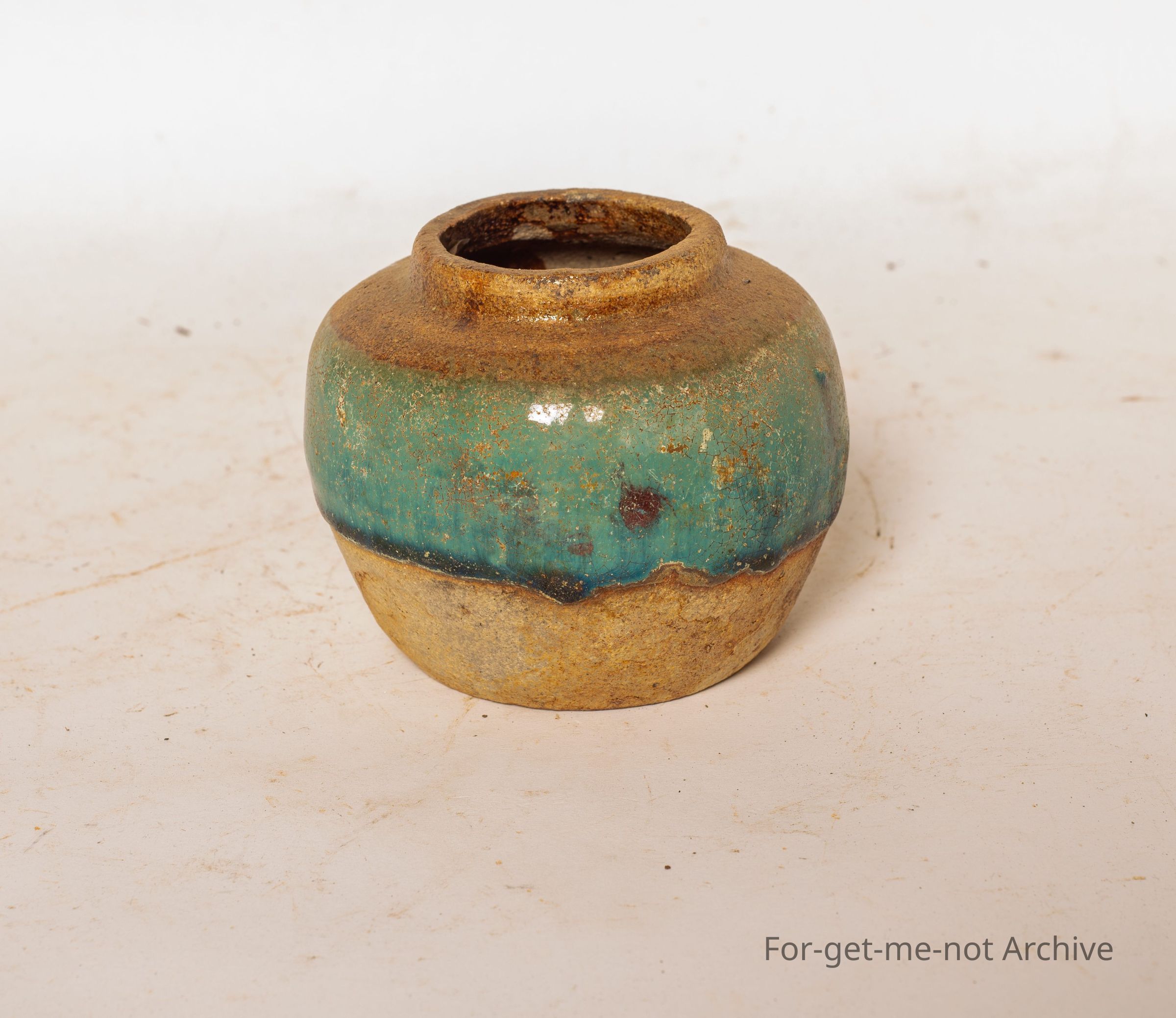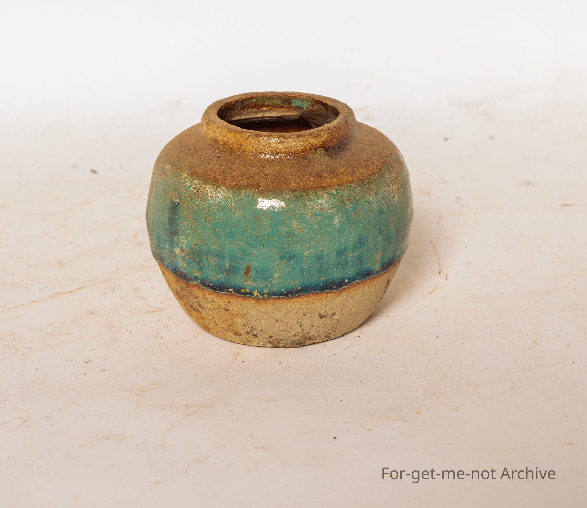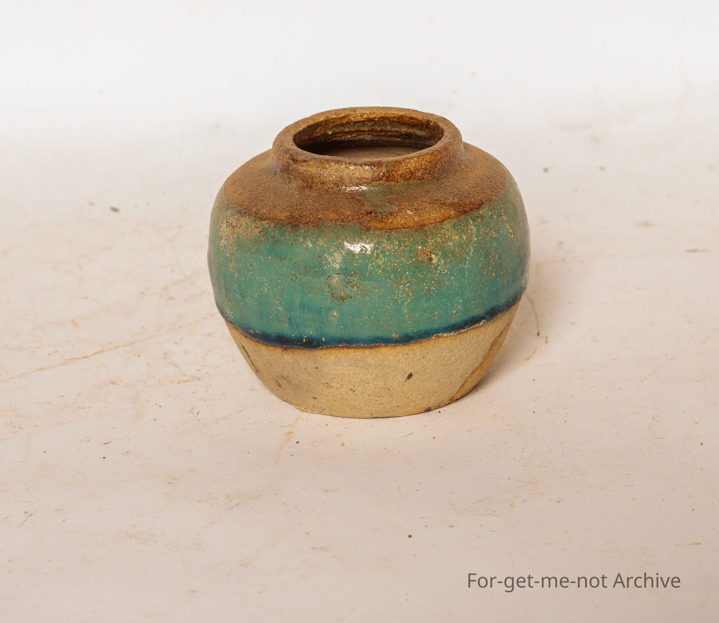 Chinese collection. This is another Chinese Ginger Jar of the small type. The normal band of beautiful bluey green glaze around the outside. This has also been fired with a lid on.