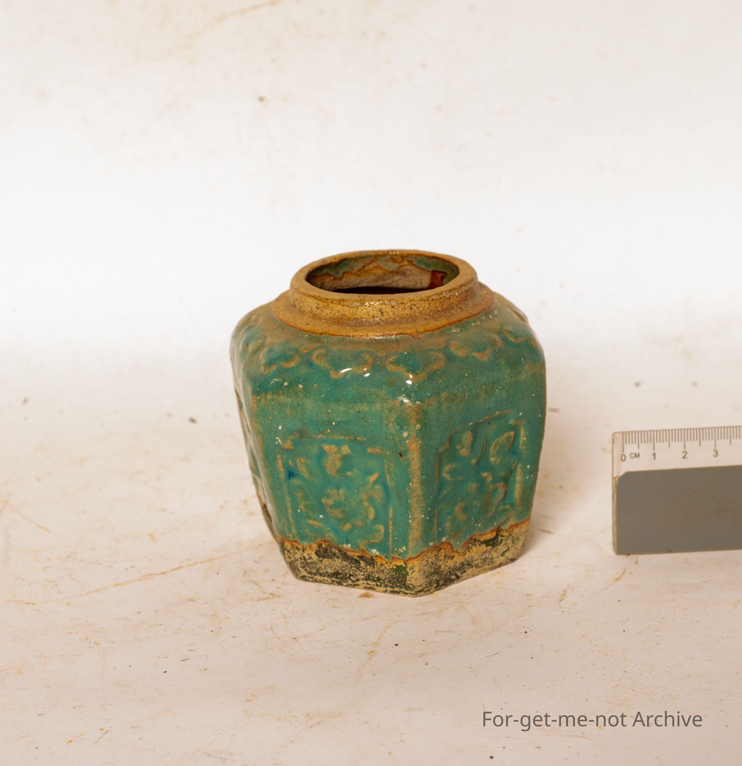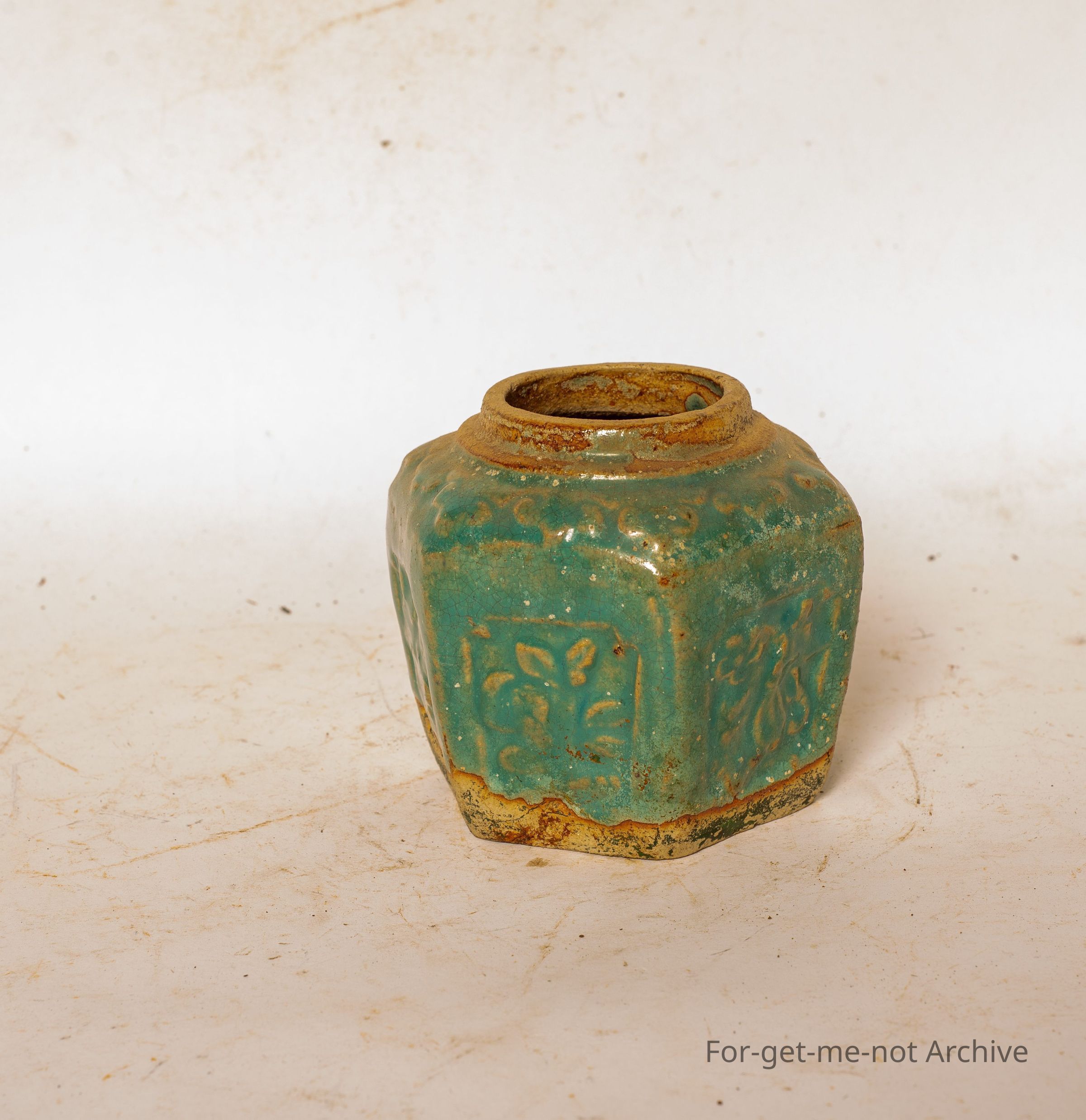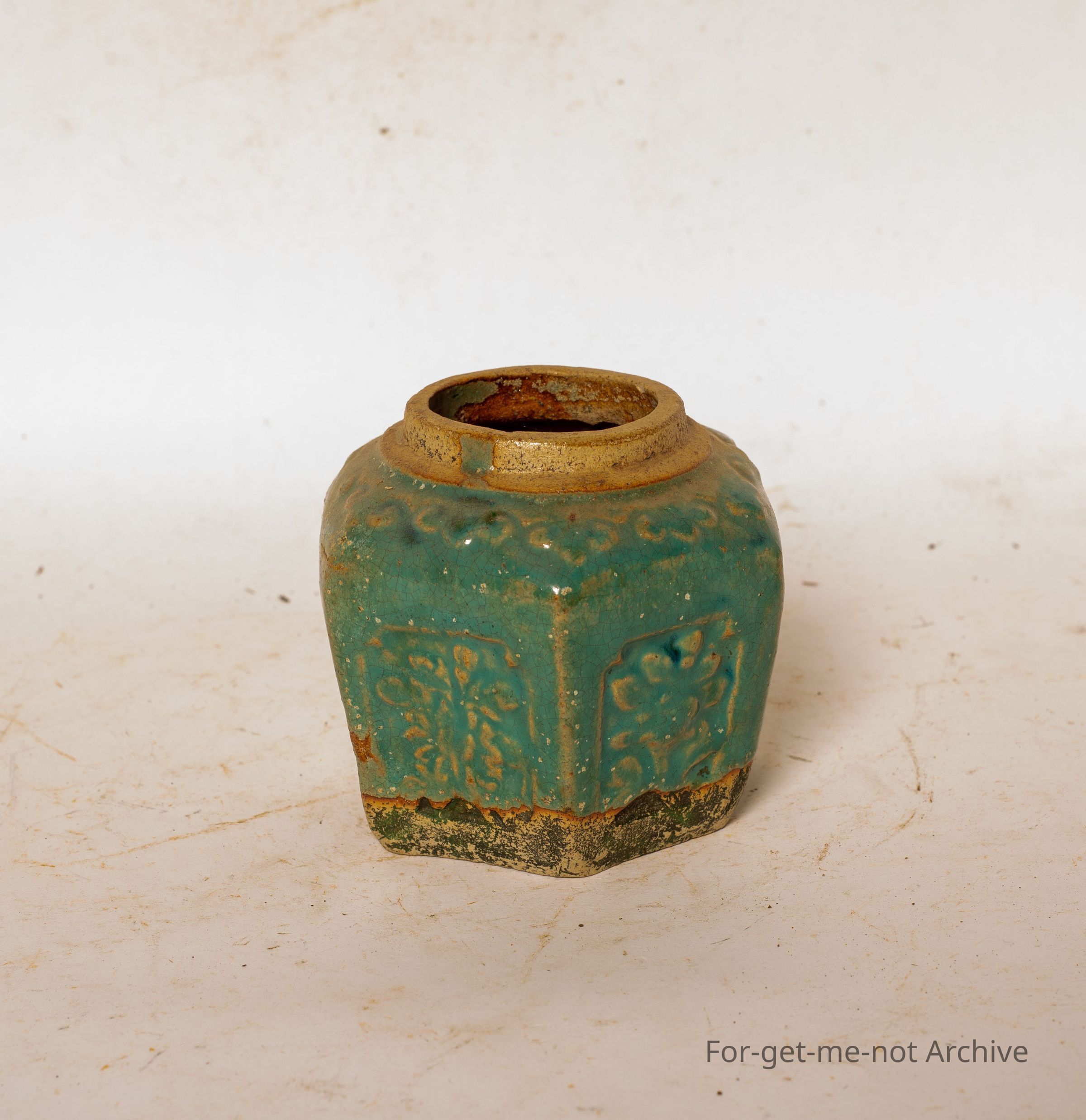 Chinese collection. This is one of the more modern type of Chinese ginger jar. Six sided with, decorated or pressed in, decorations on each panel.
