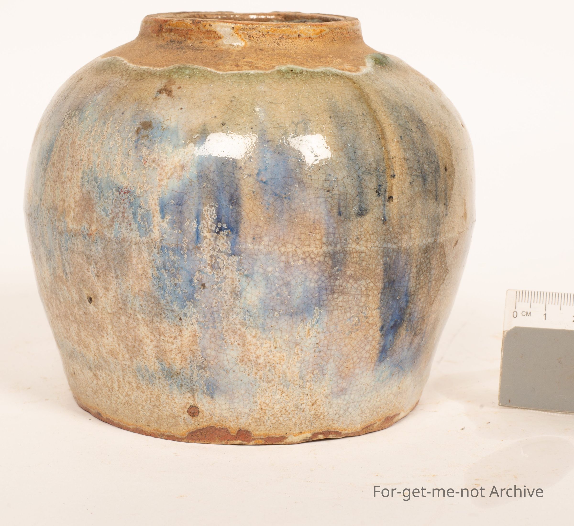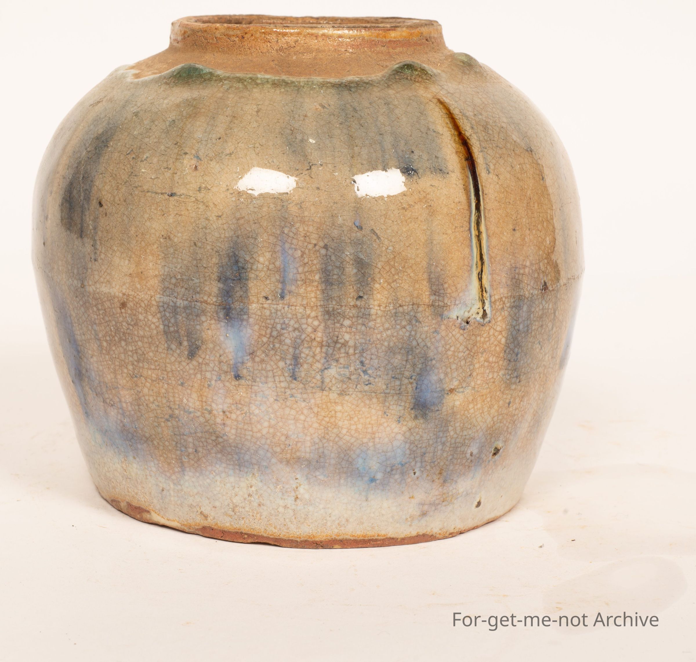 Is another Chinese ginger jar. This time, a beautiful example of the blue glaze running down the sides. No mark underneath