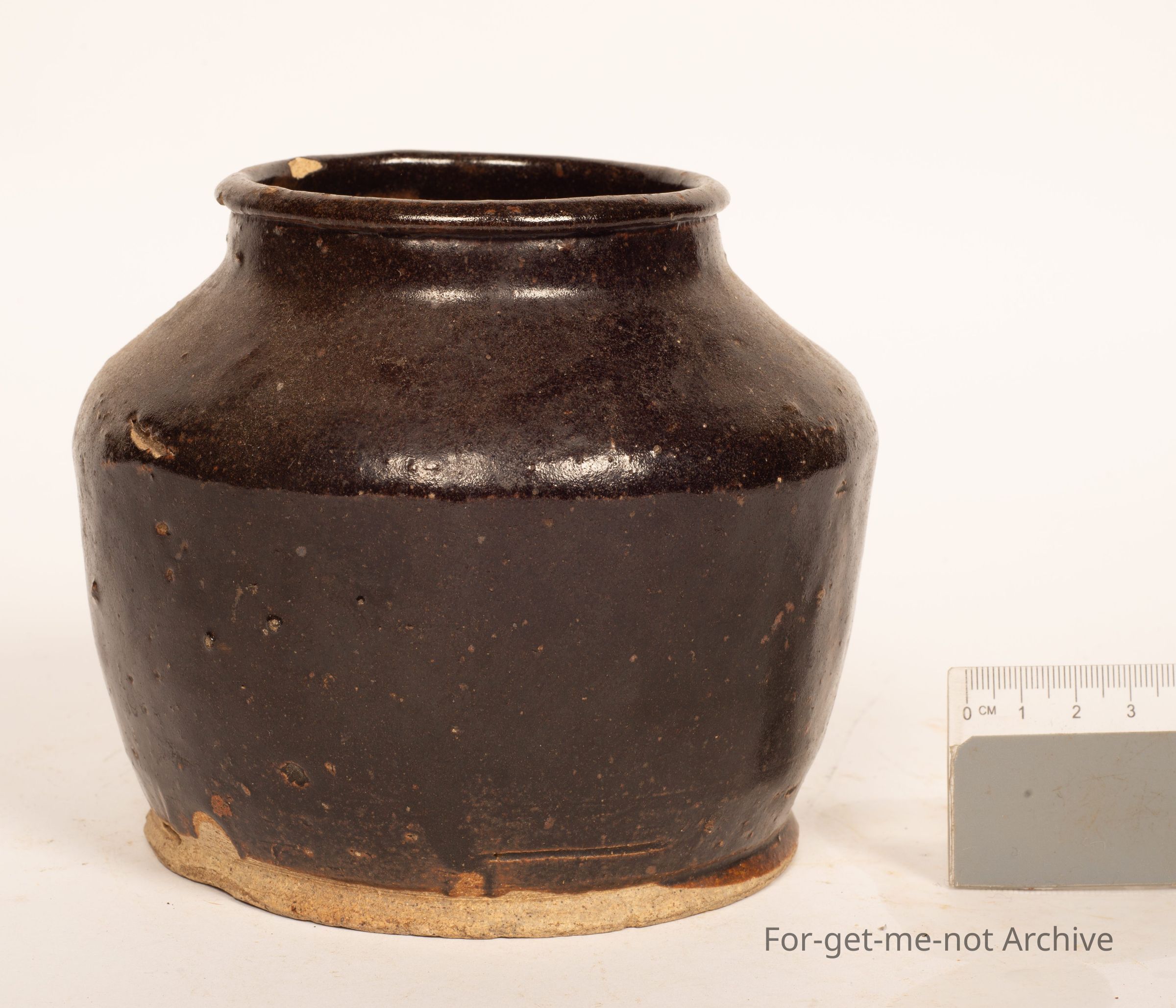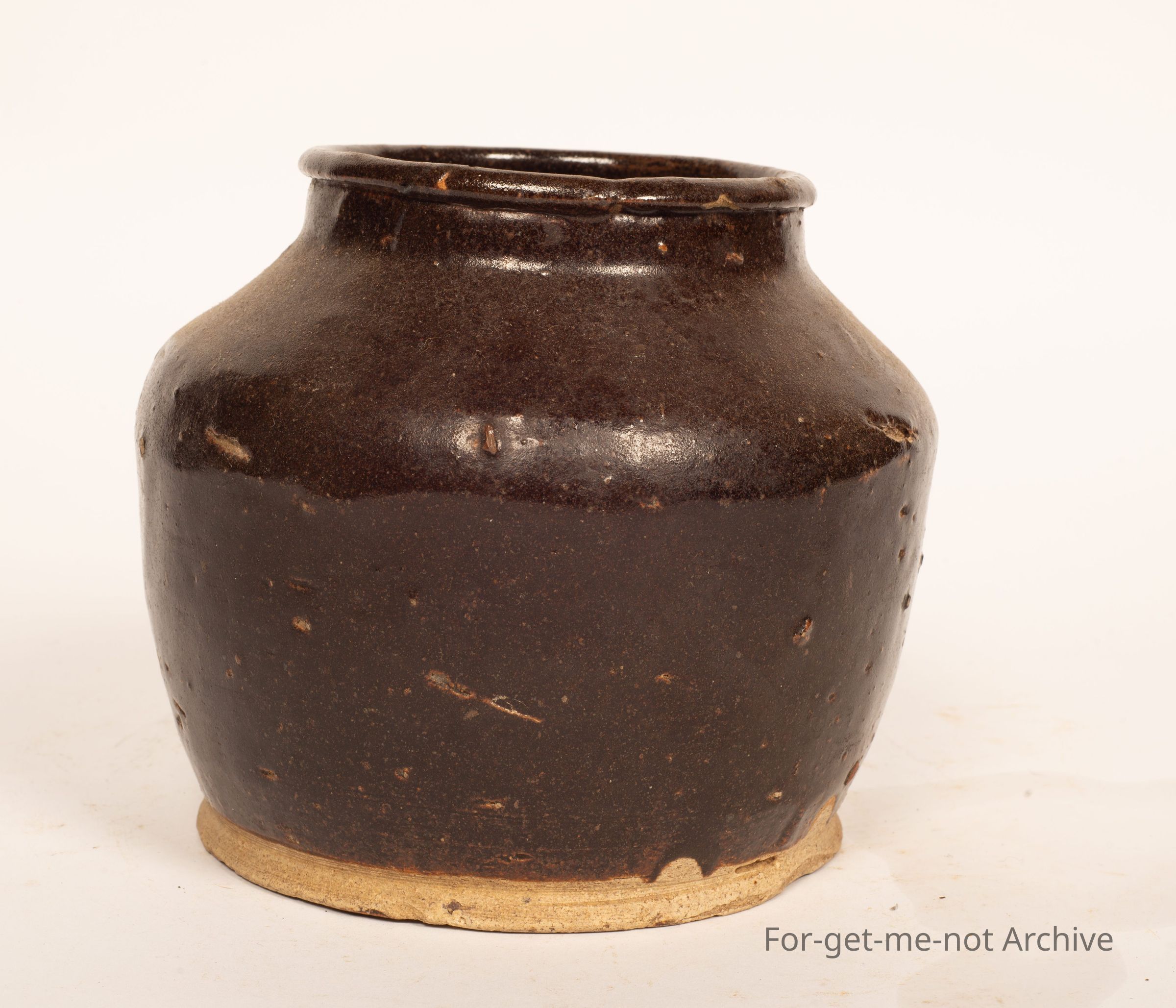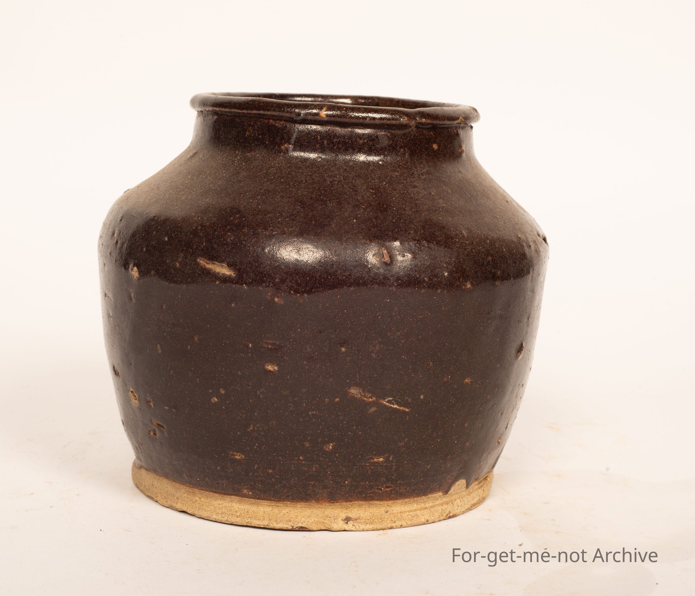 Another Chinese pot. This time, a pickle jar, the standard brown glaze, no marking underneath. Pretty basic pot,