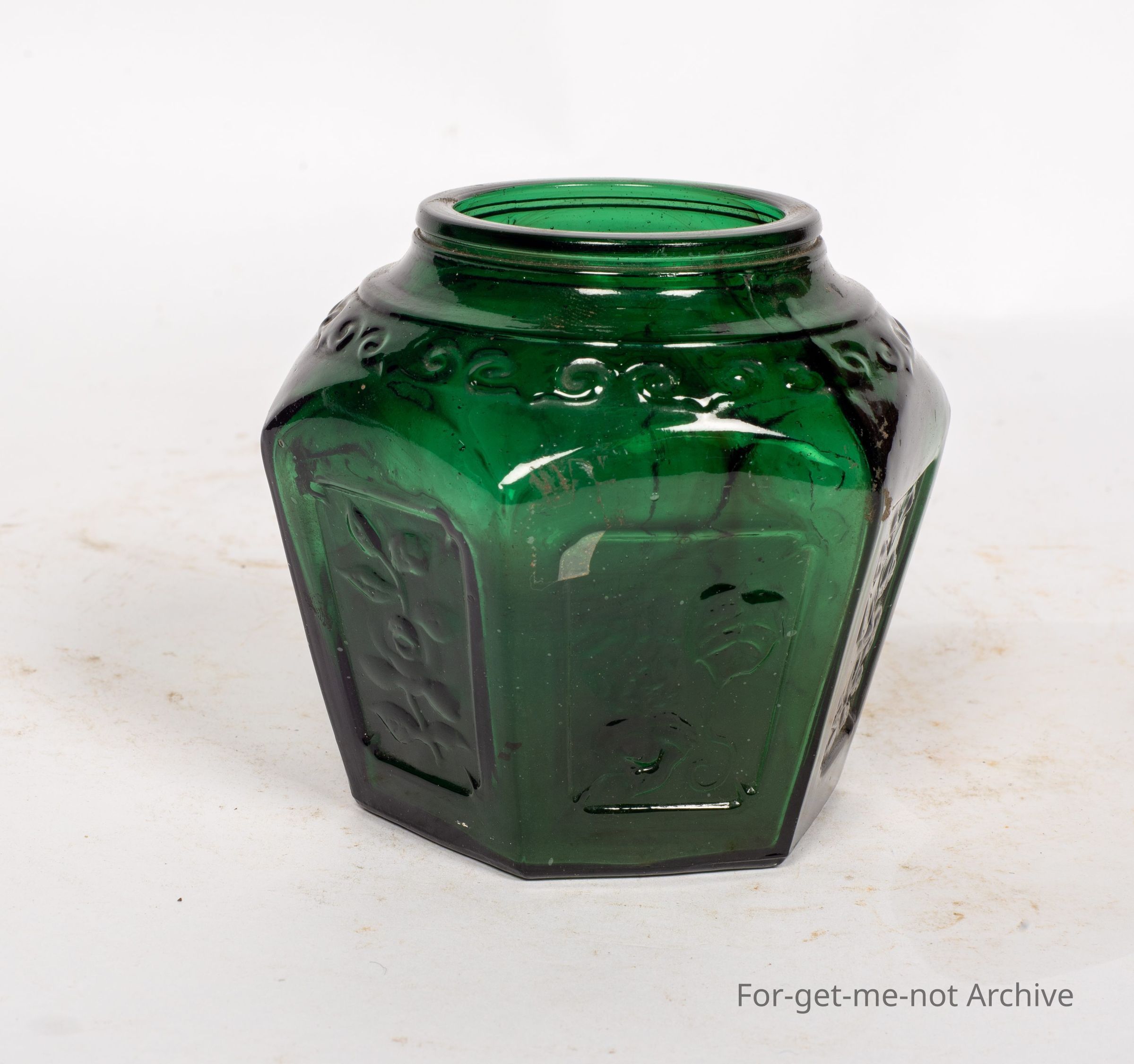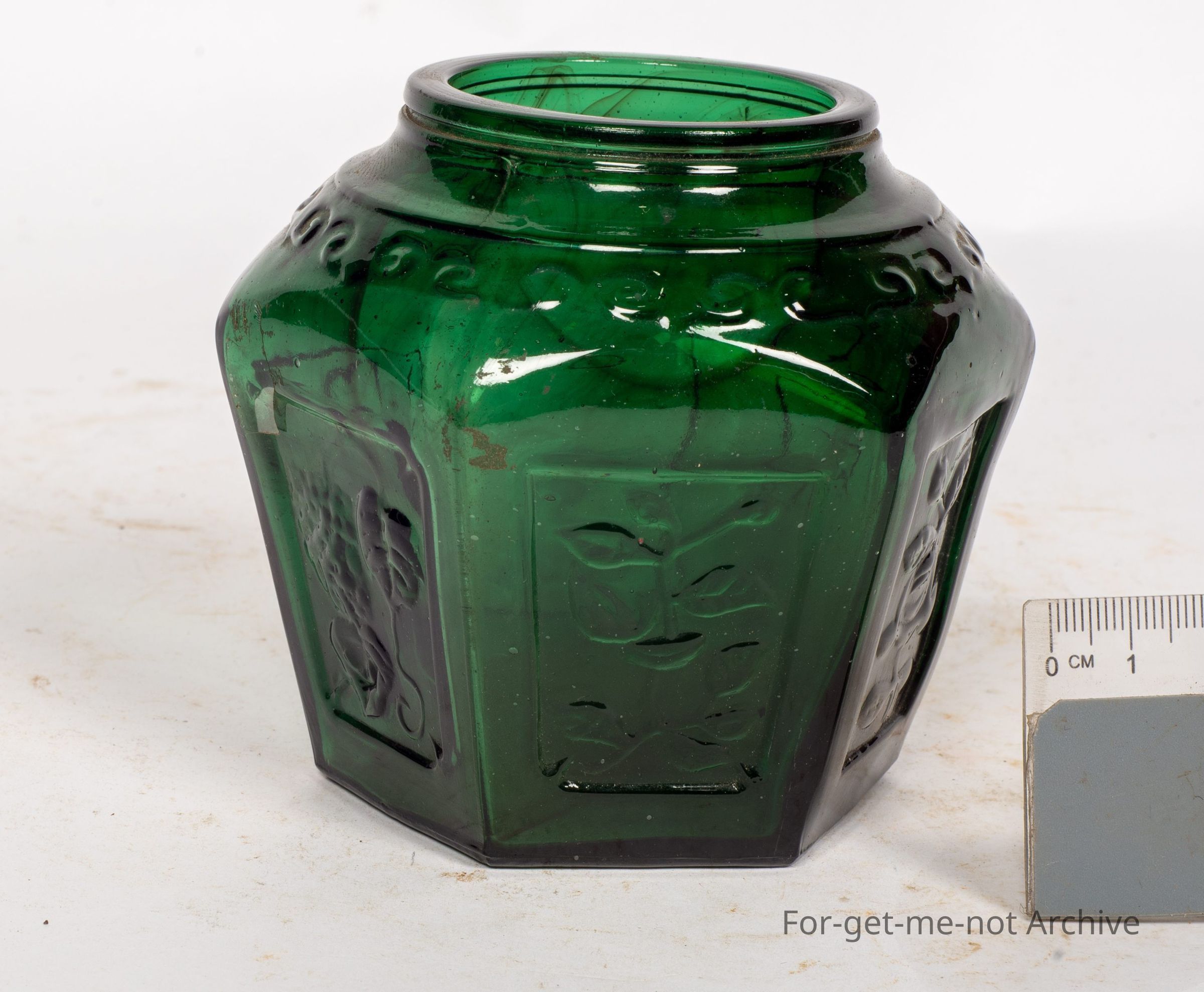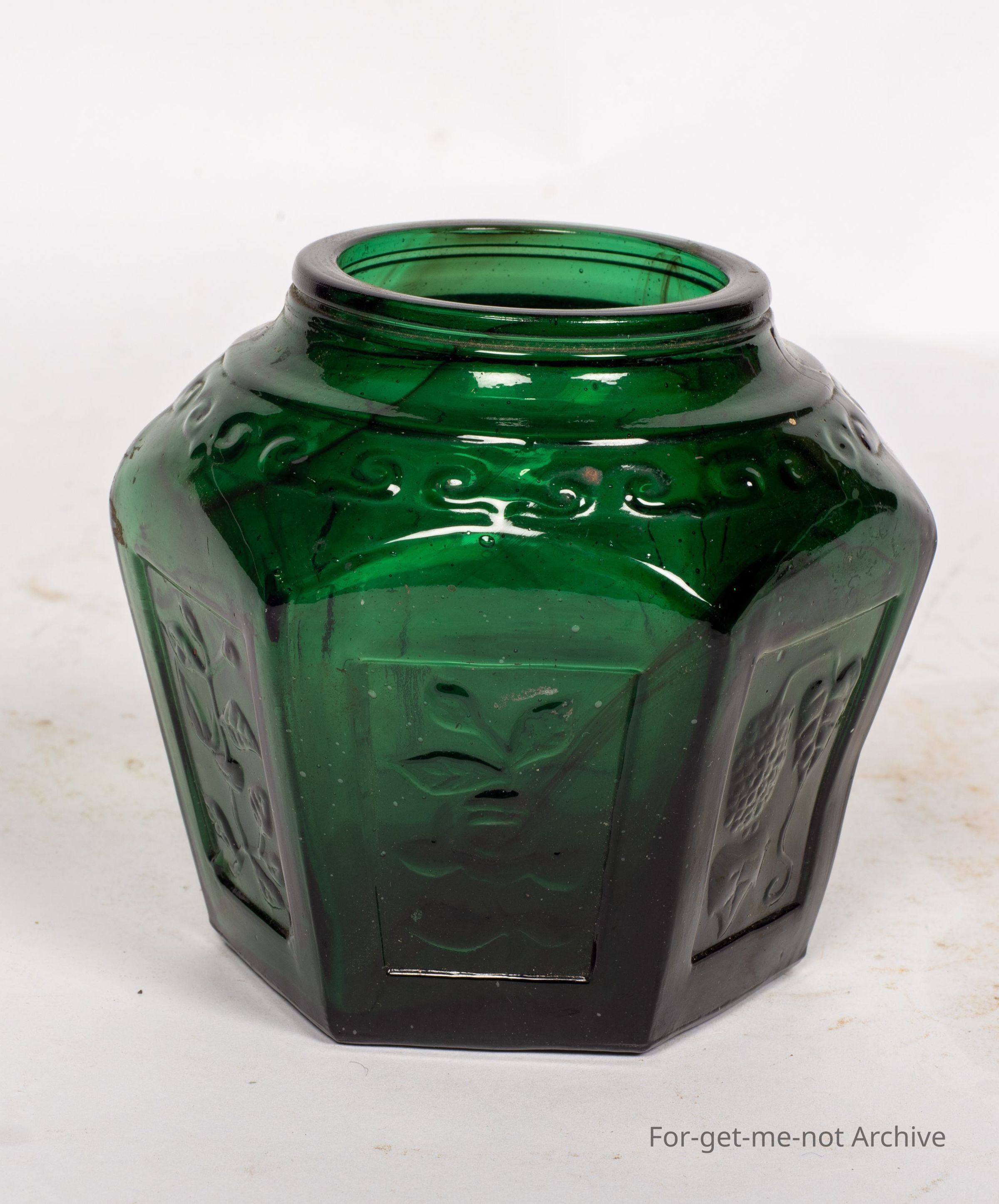 Is a glass, Ginger pot, plenty of decorations. Whether this is authentic is unknown. Very unusual to see one in glass,