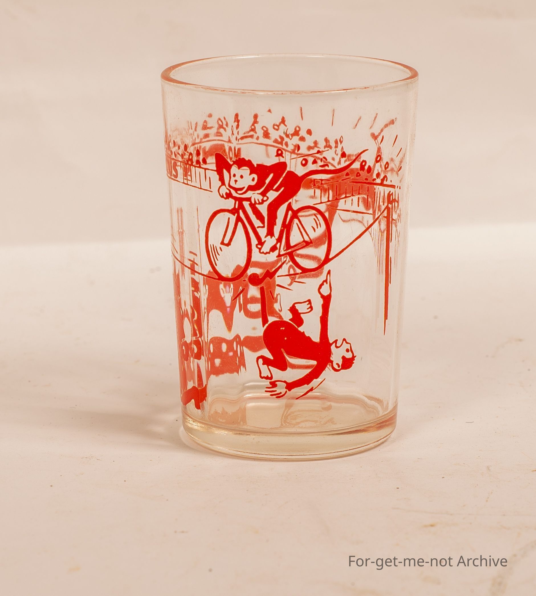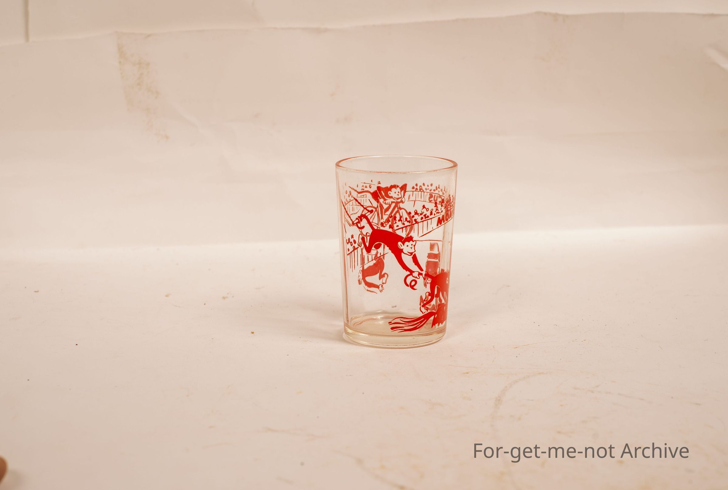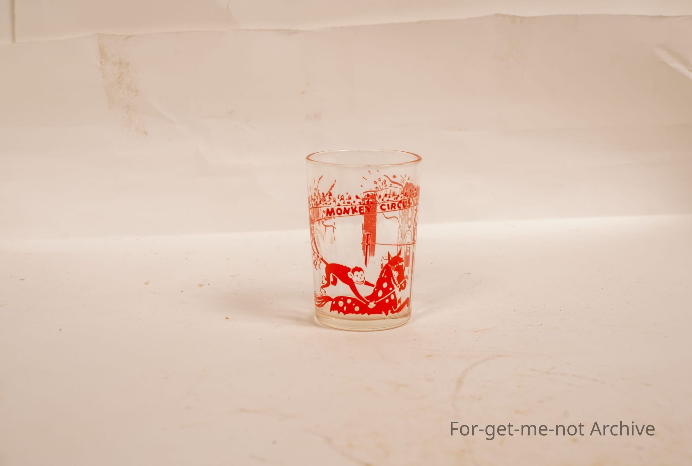 Is a glass of, monkeys riding push bikes and horses in a circus scene, in very good order.