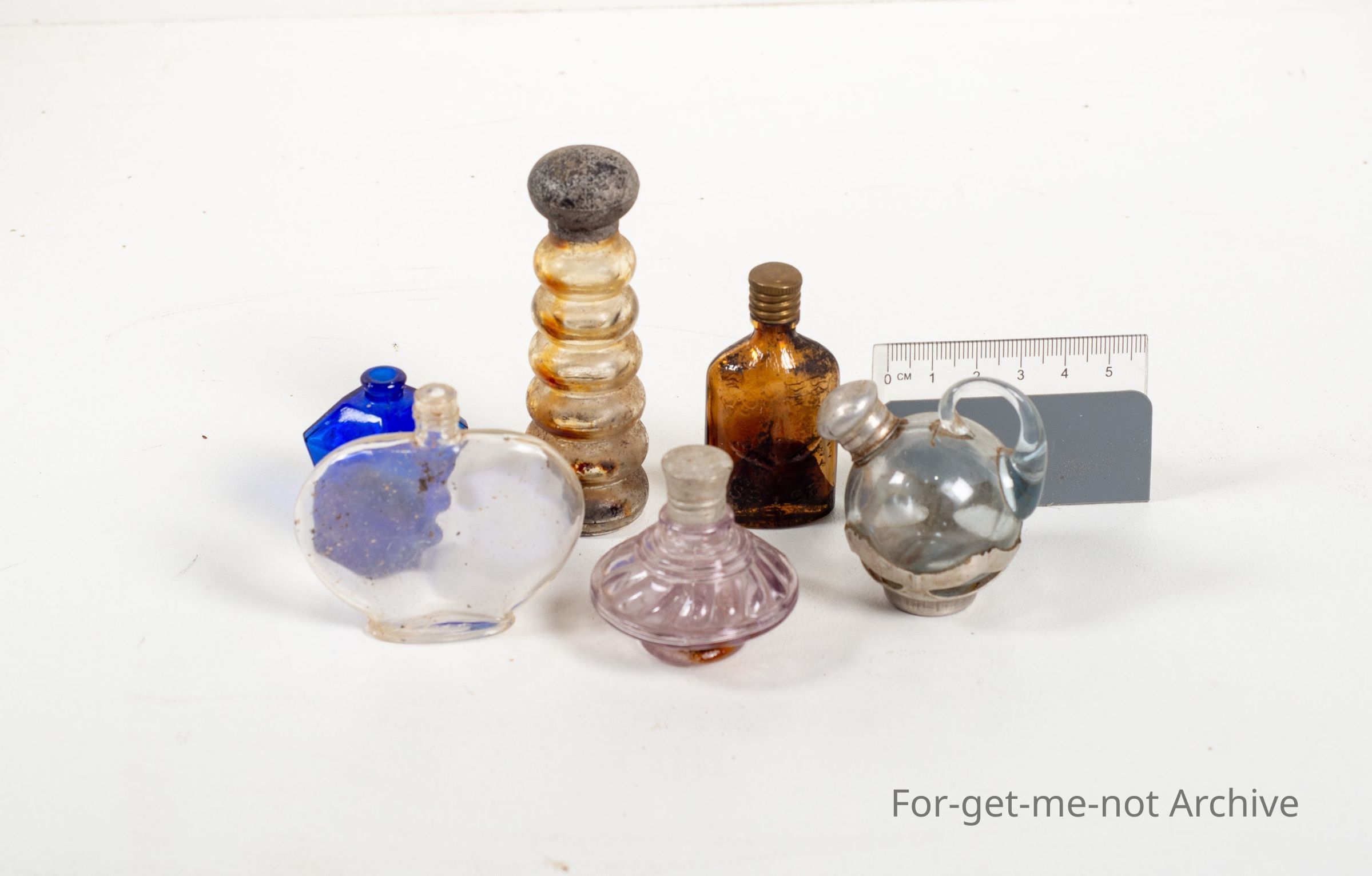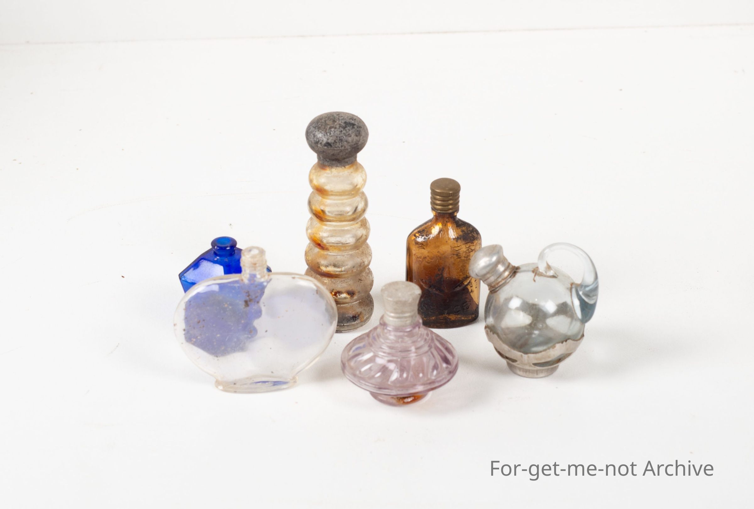 6 Quite decorative in various colours, blue, clear, amethyst with metal caps.