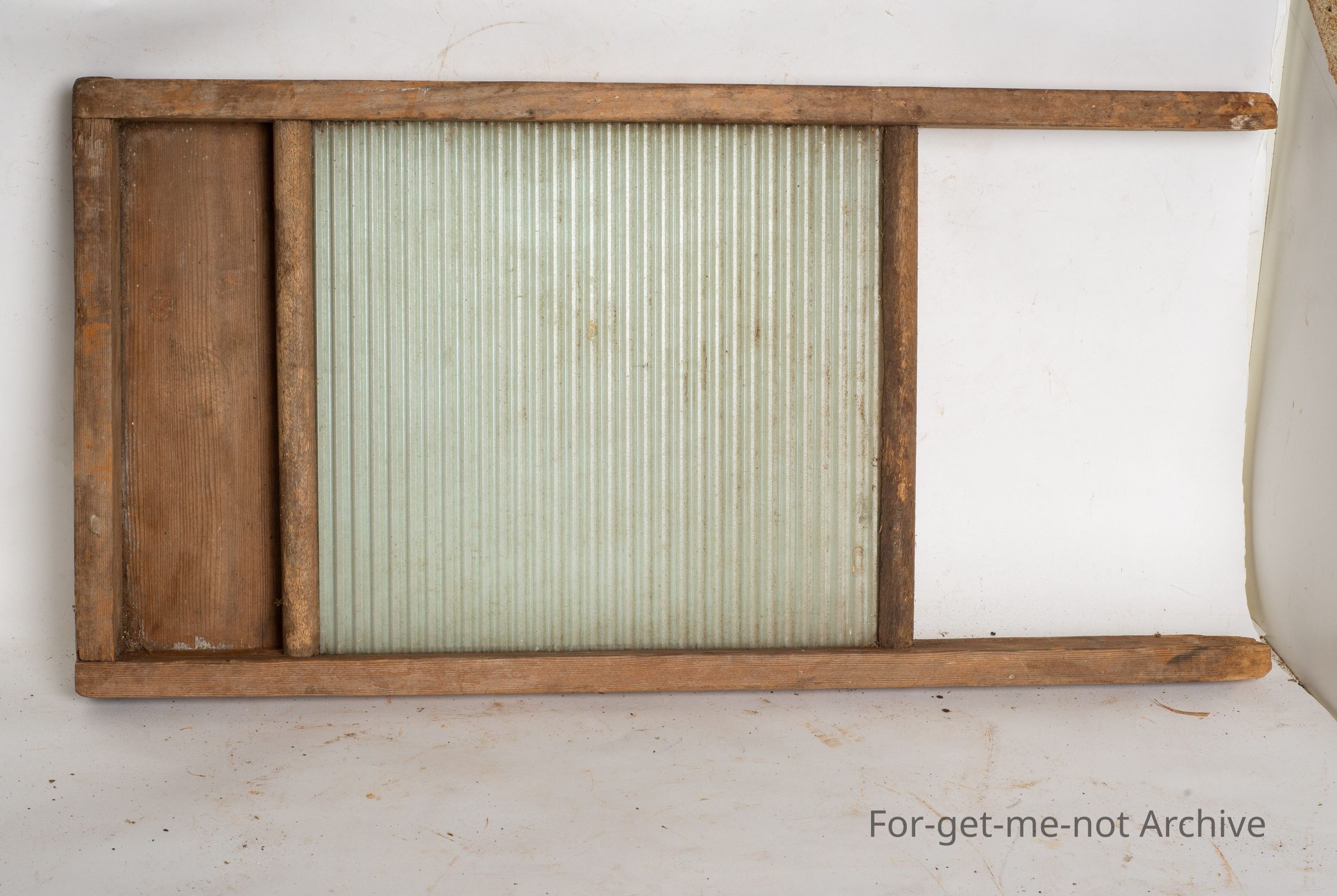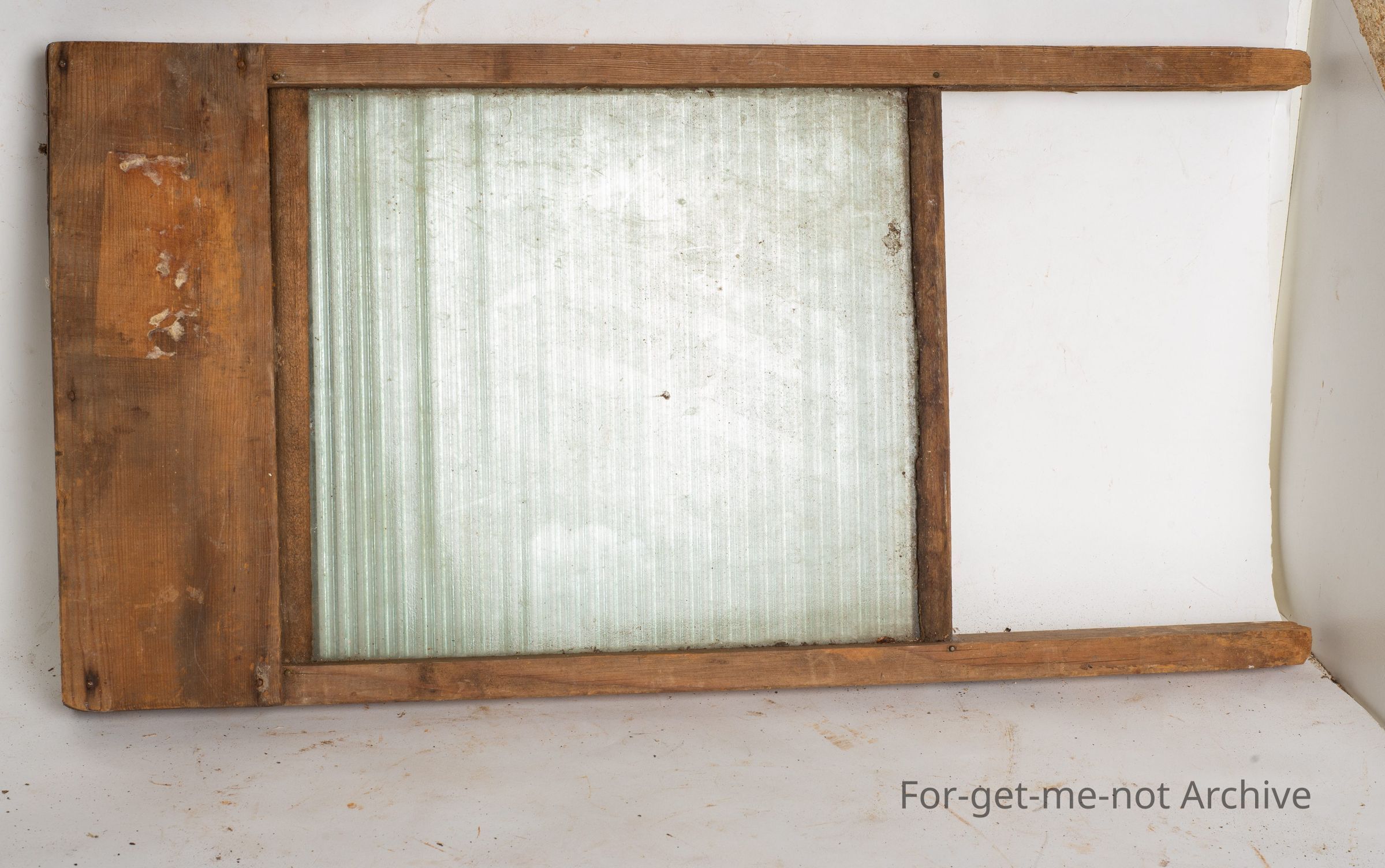 This is, one of the glass ribbed washboards. Got the original glass in it. Wooden frame.