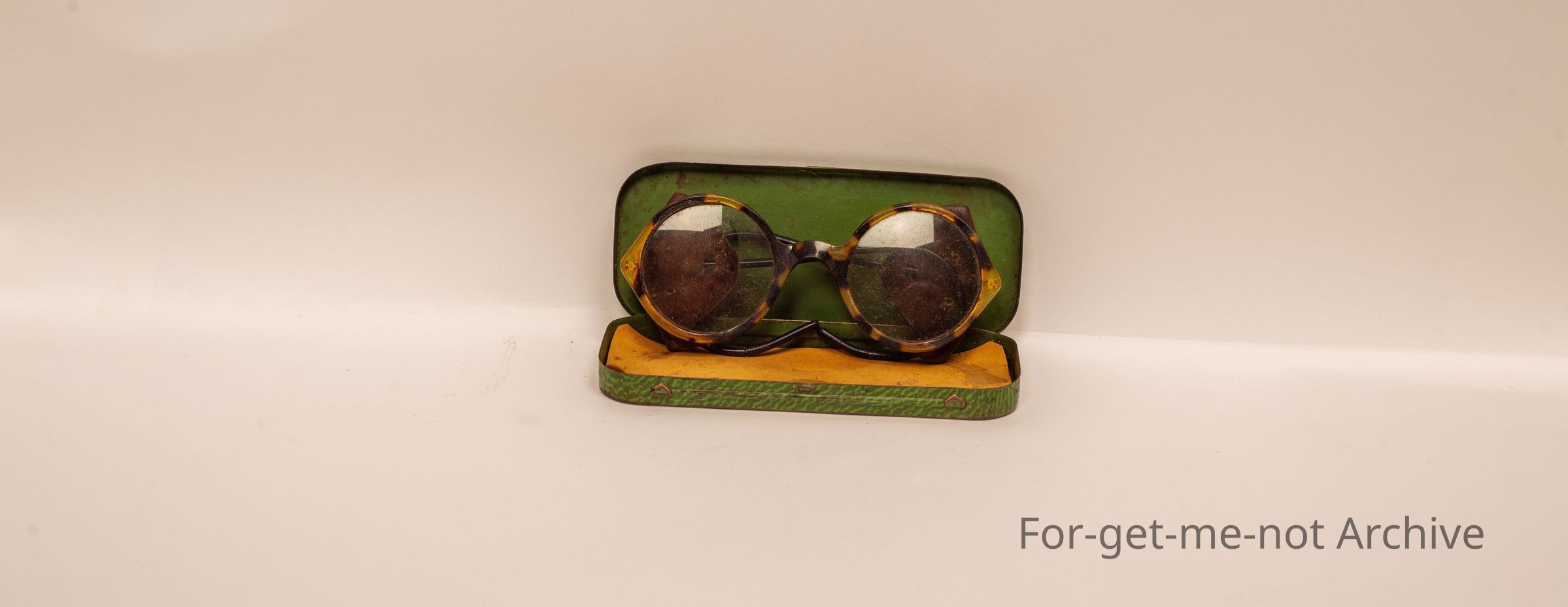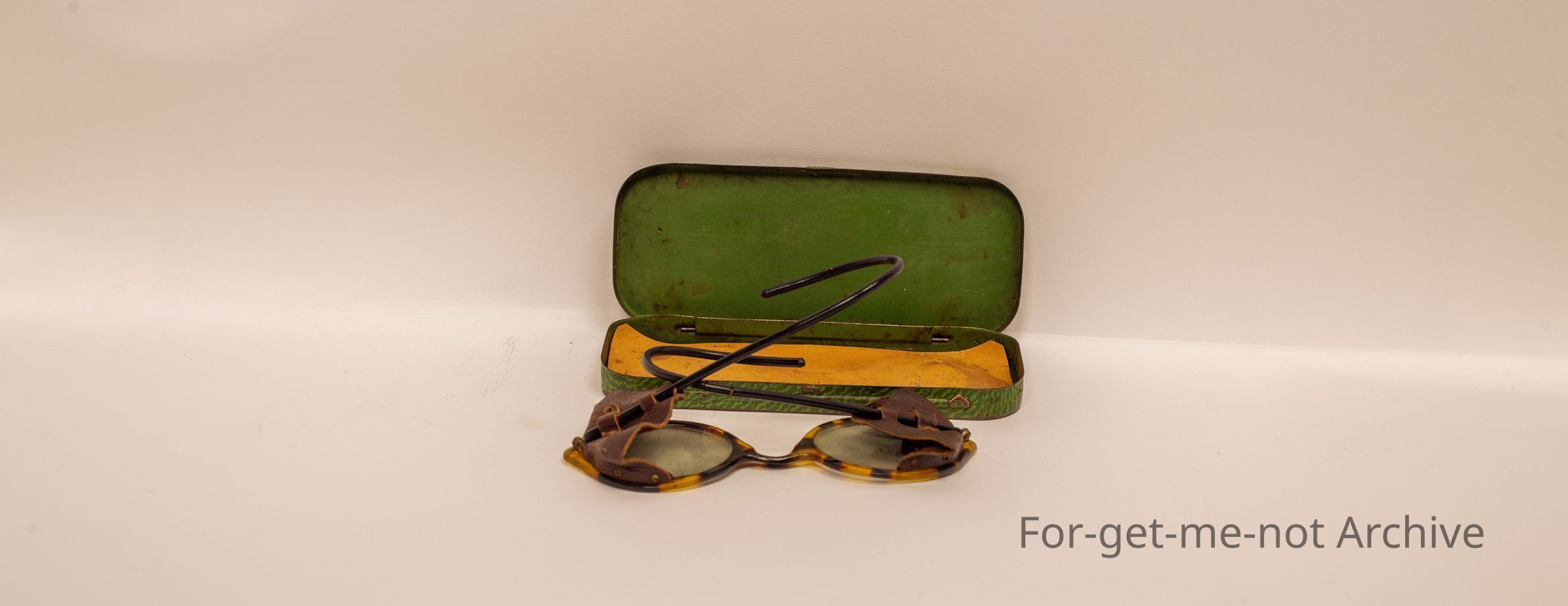 Pair of motorcyclist/ motorists glasses, amber lenses, leather shields on either side. With the case, German made