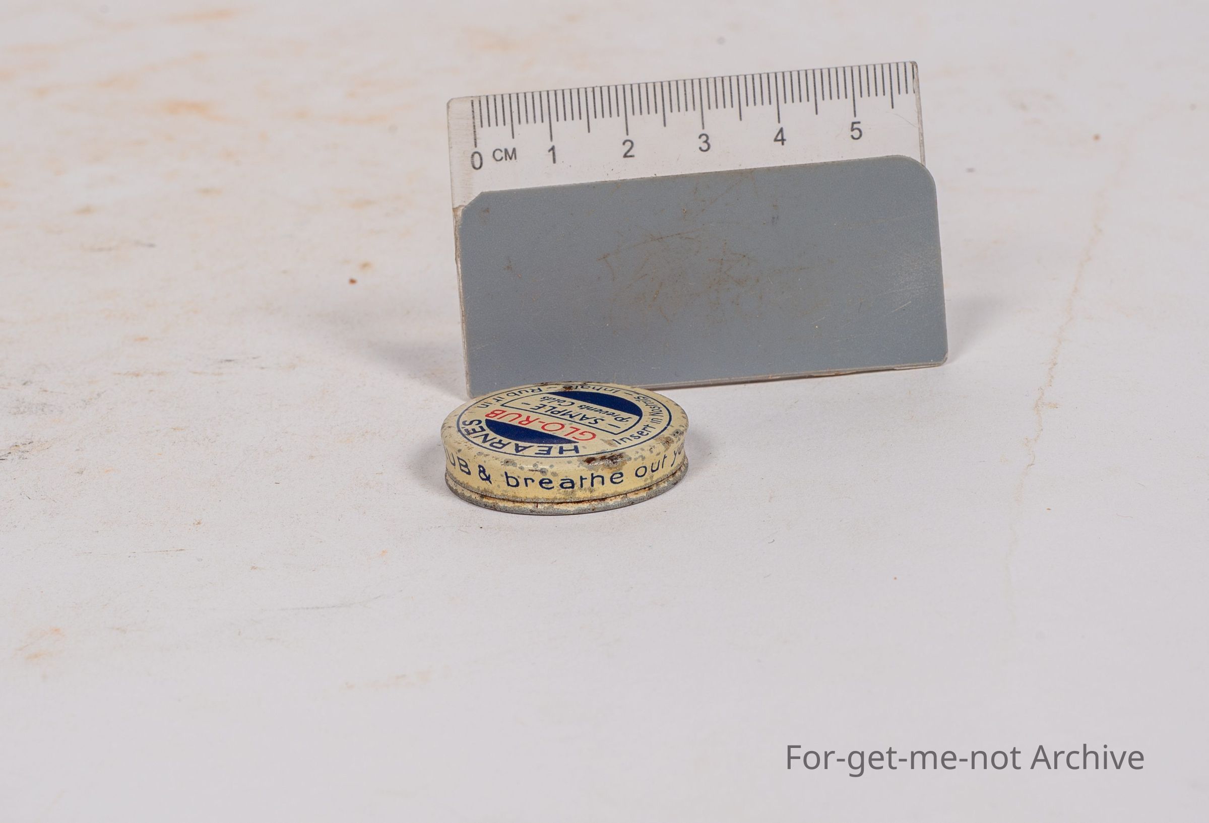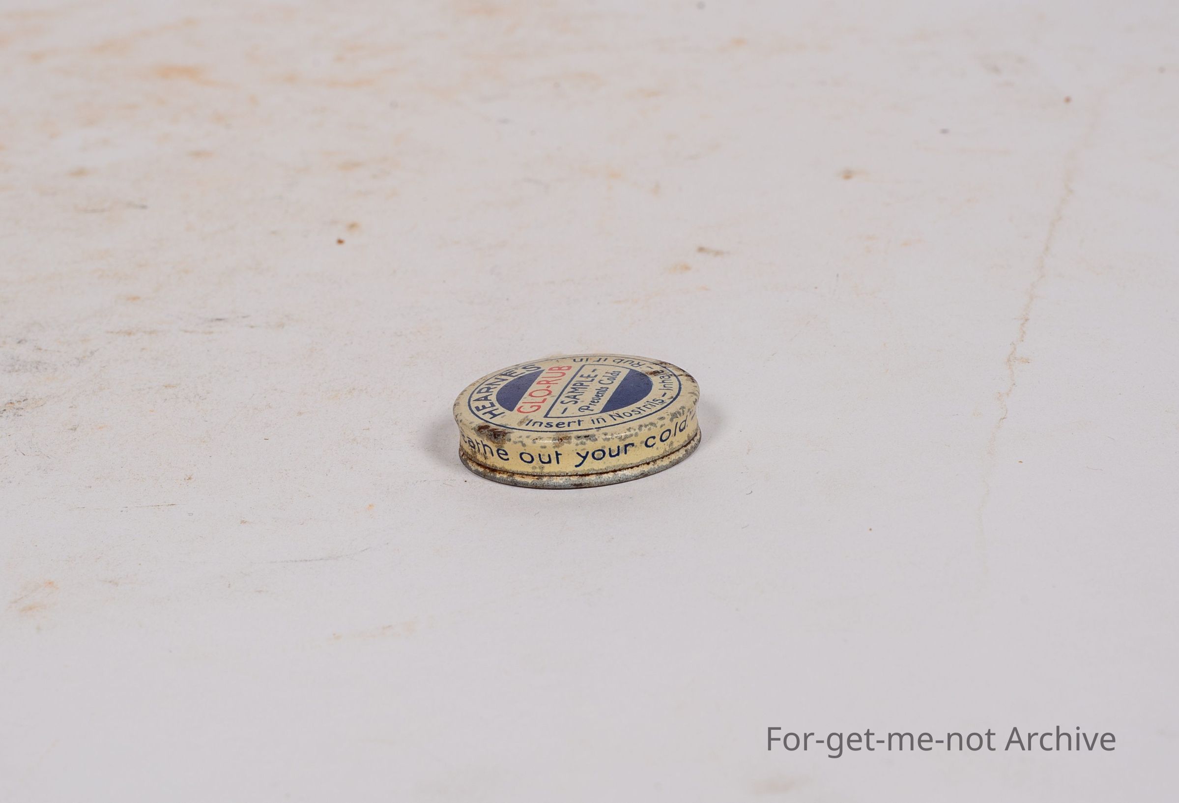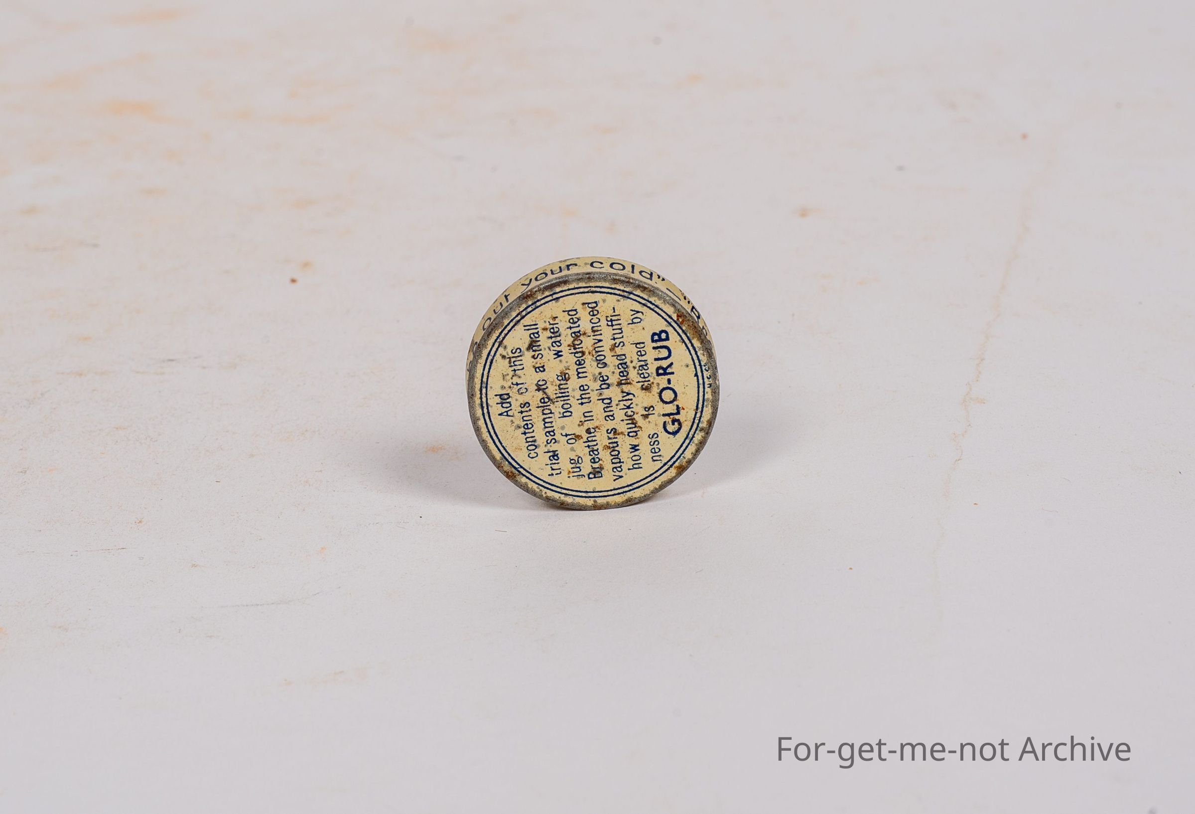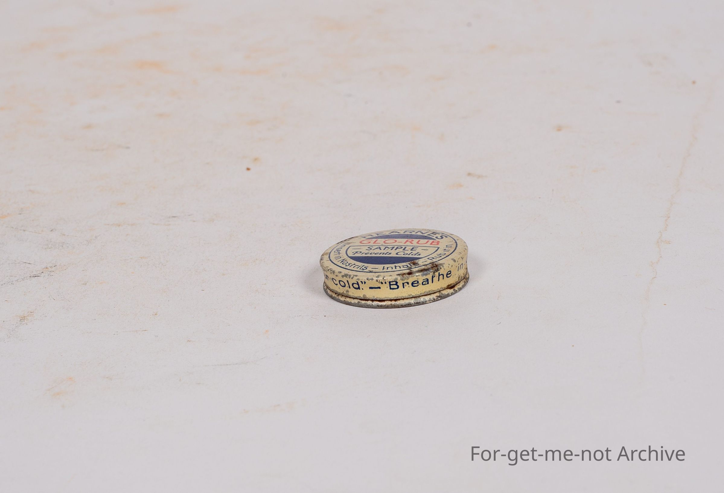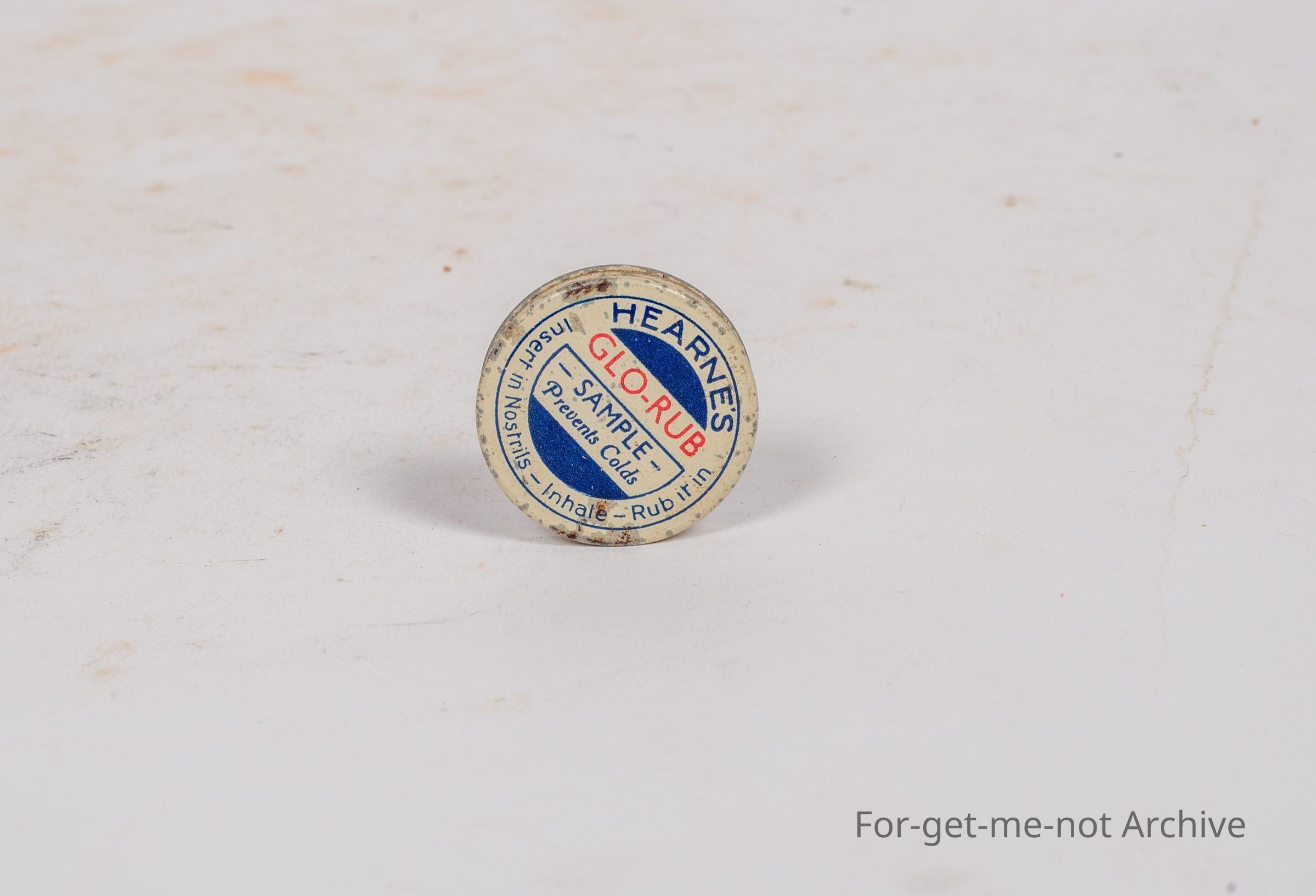 A very small tin of Herns Glow Rub Sample prevents colds. Insert in nostrils and inhale. Wonderful little tin.