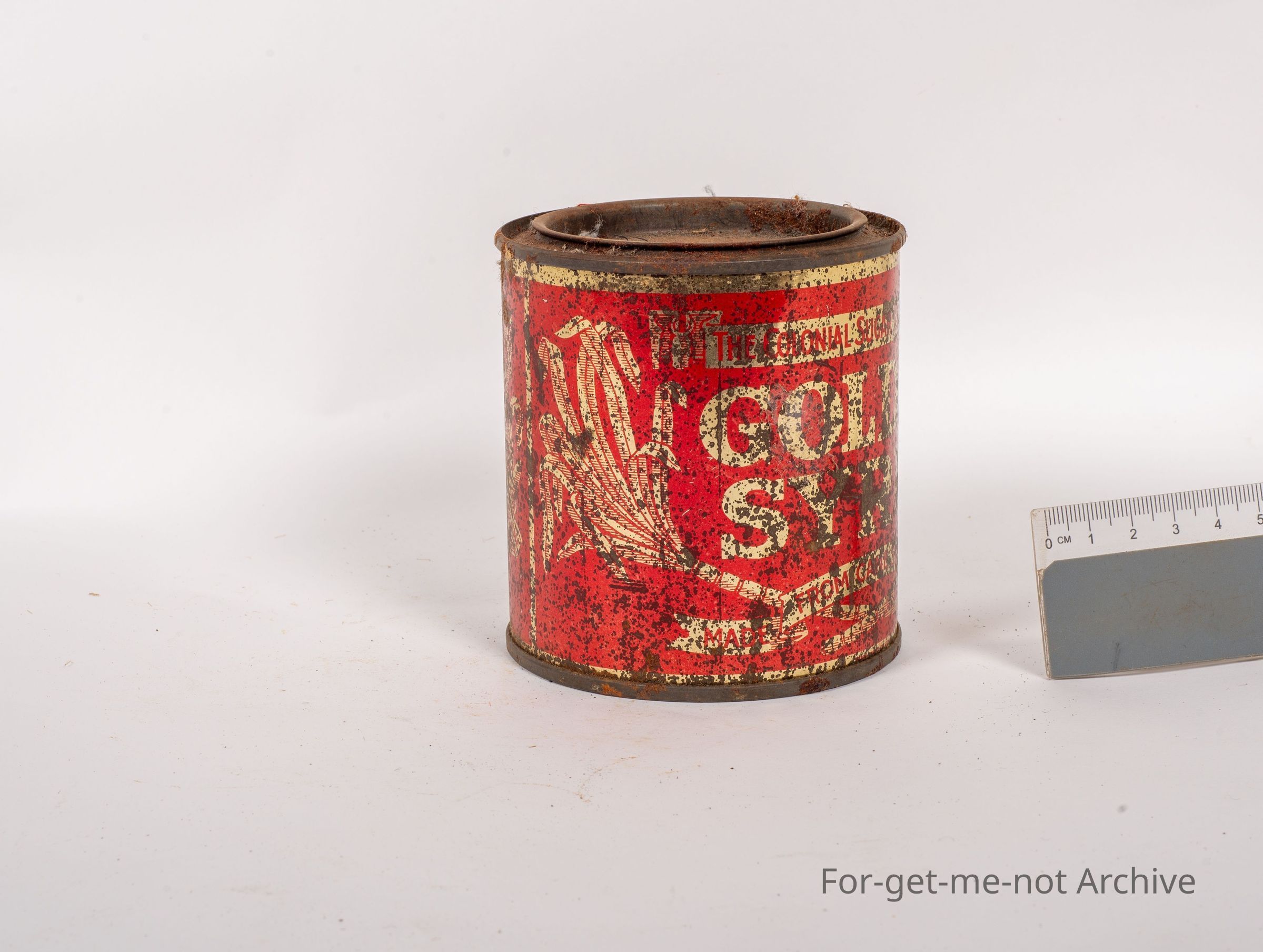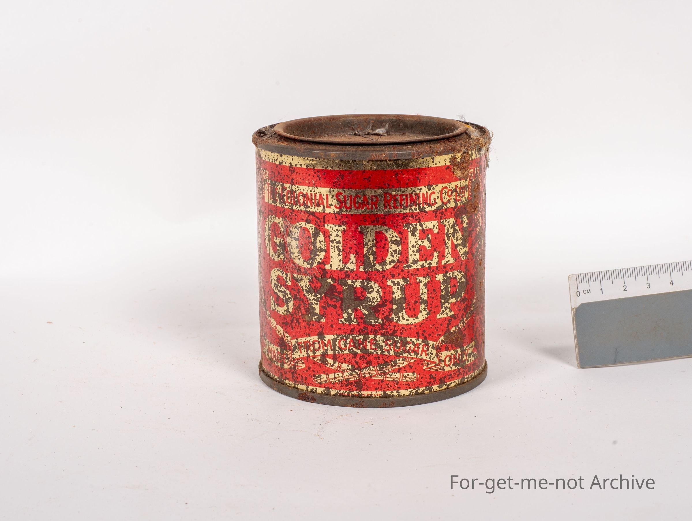 Another tin of Colonial Sugar Refinery Golden Syrup made from cane sugar, a 2 pound tin. This tin is in down condition in comparison to the rest,