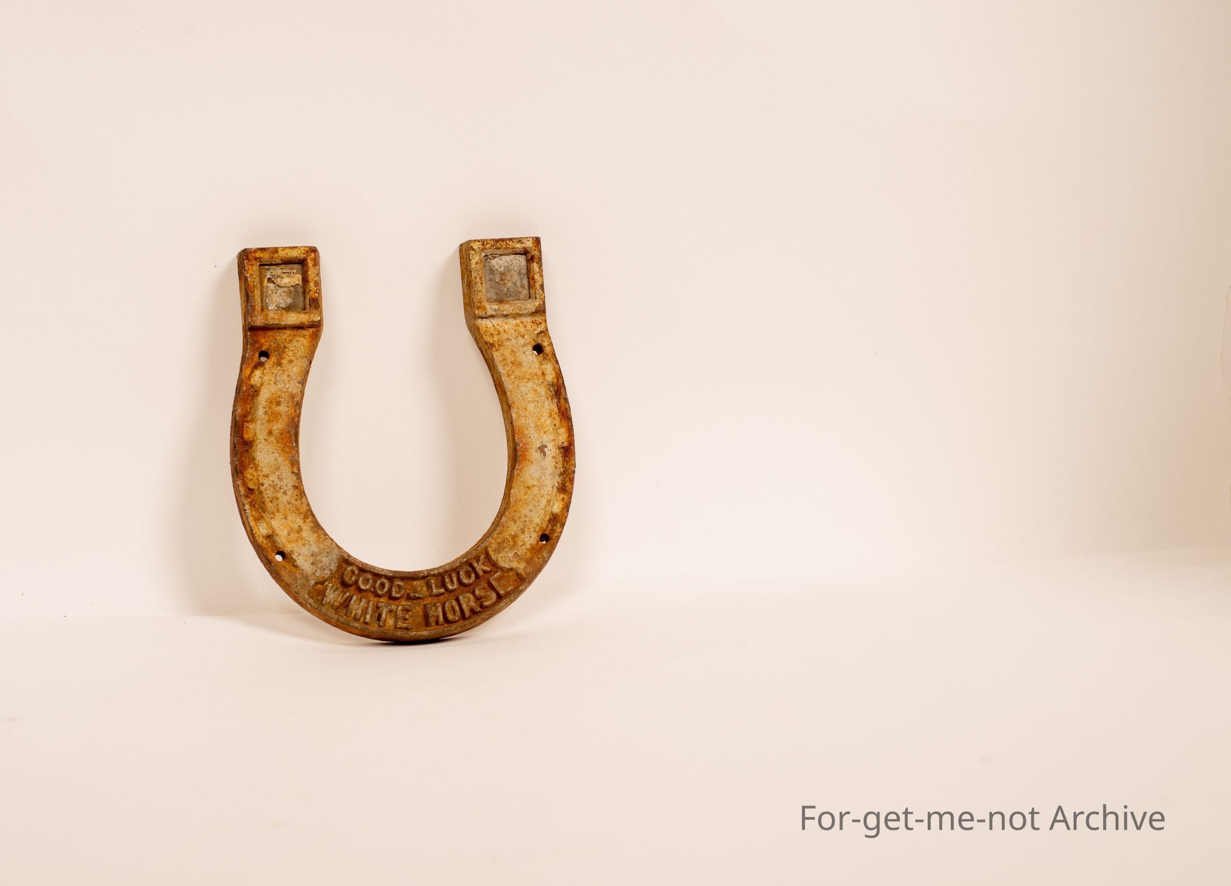 is a cast iron. Good luck. Horseshoe, most likely advertising white horse whiskey, I would presume. Value,