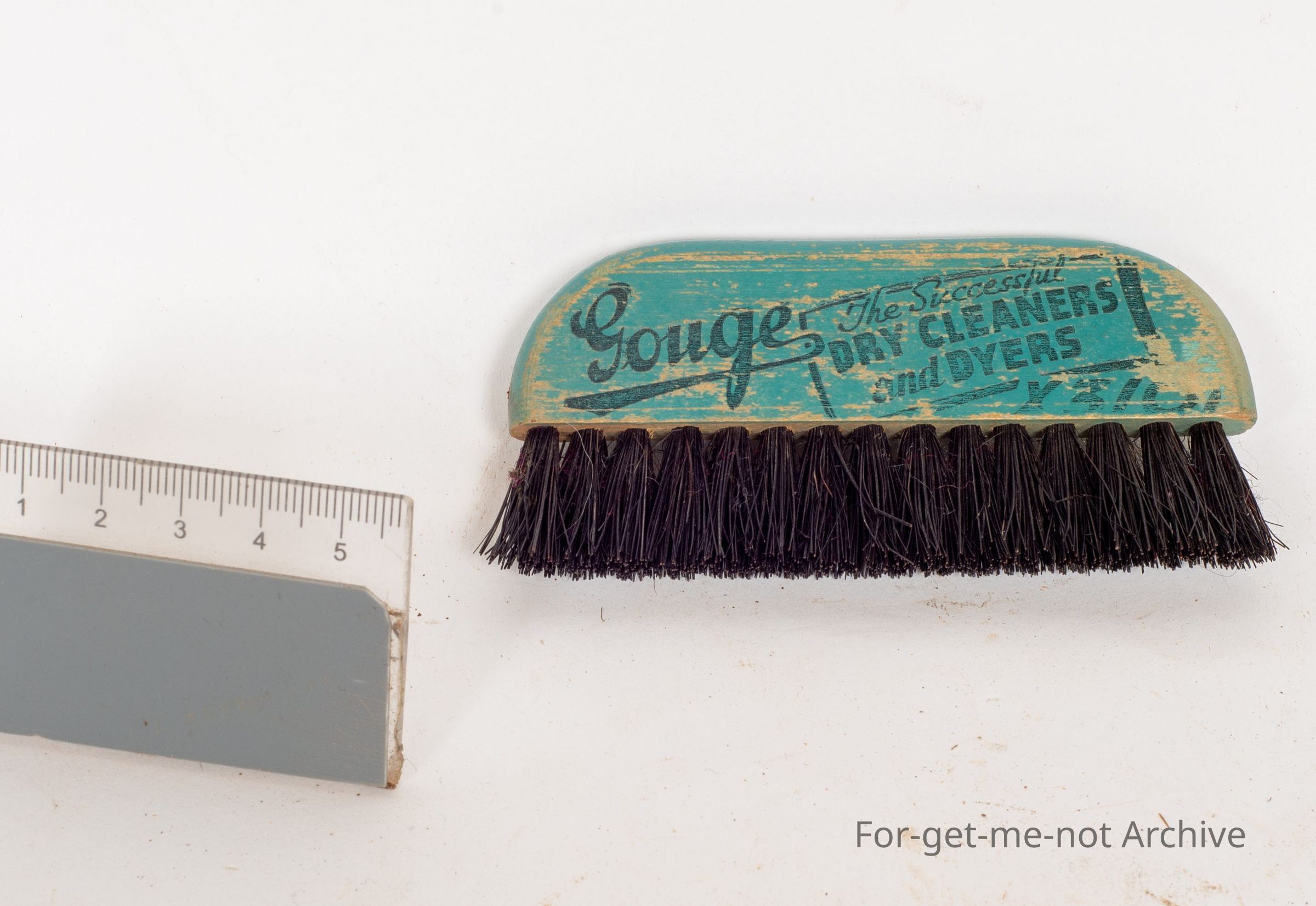 This is a little wooden handle brush from Gouge, the successful dry cleaners and dyers. Very good order.