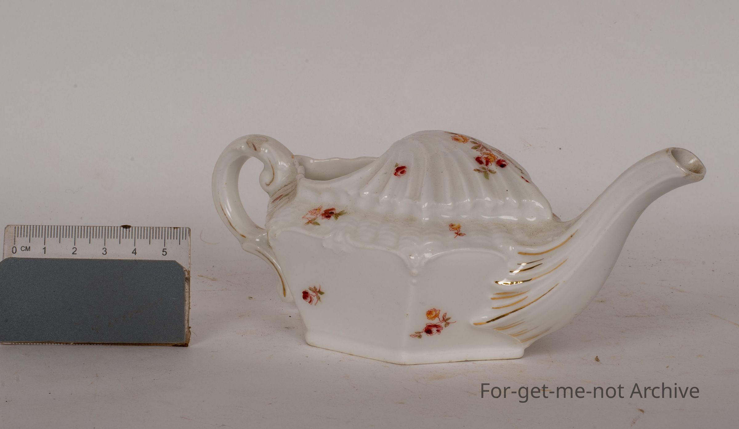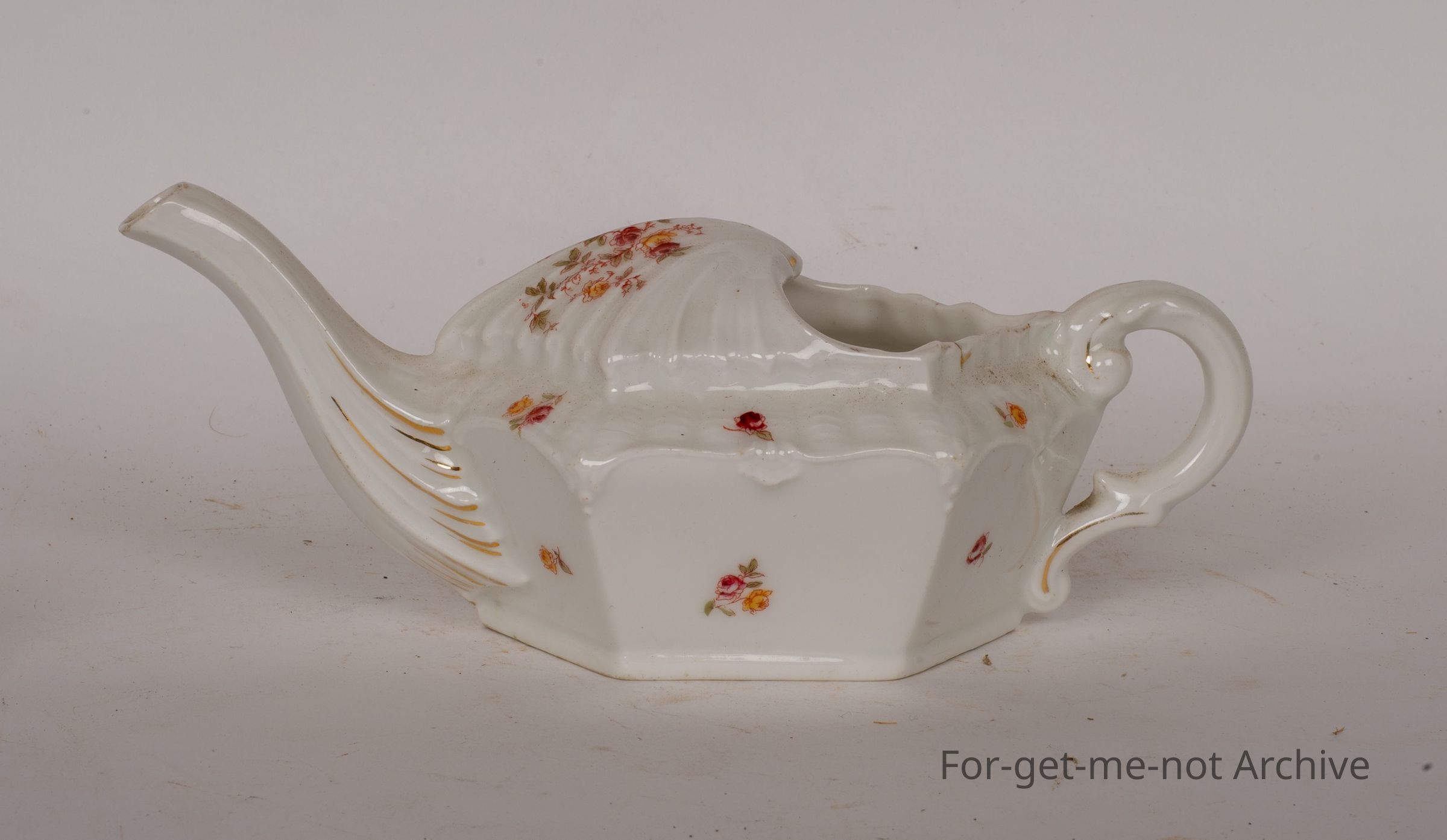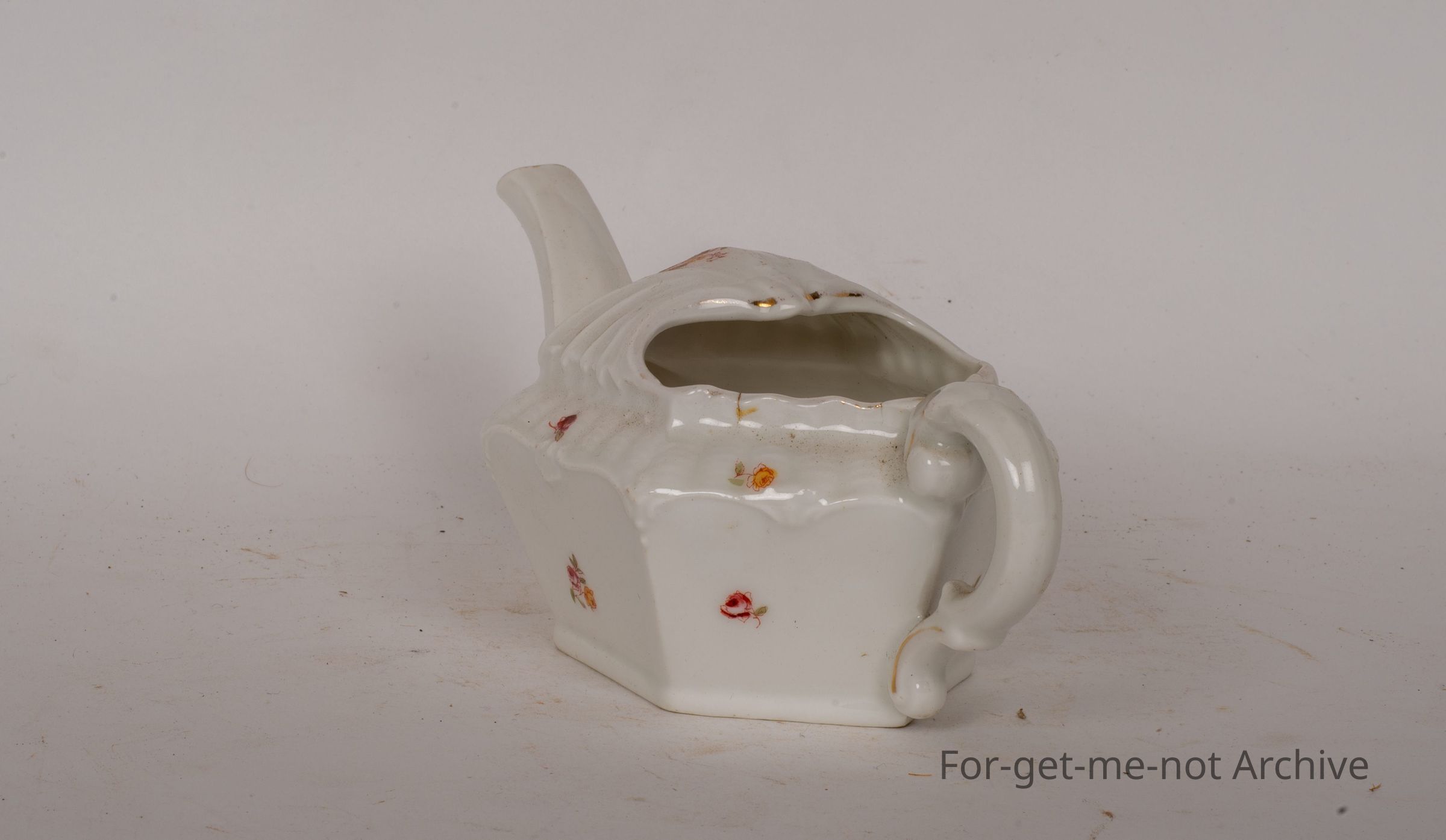 this is a little gravy jug, transfer decorations. Quite pretty, ornate design, excellent order