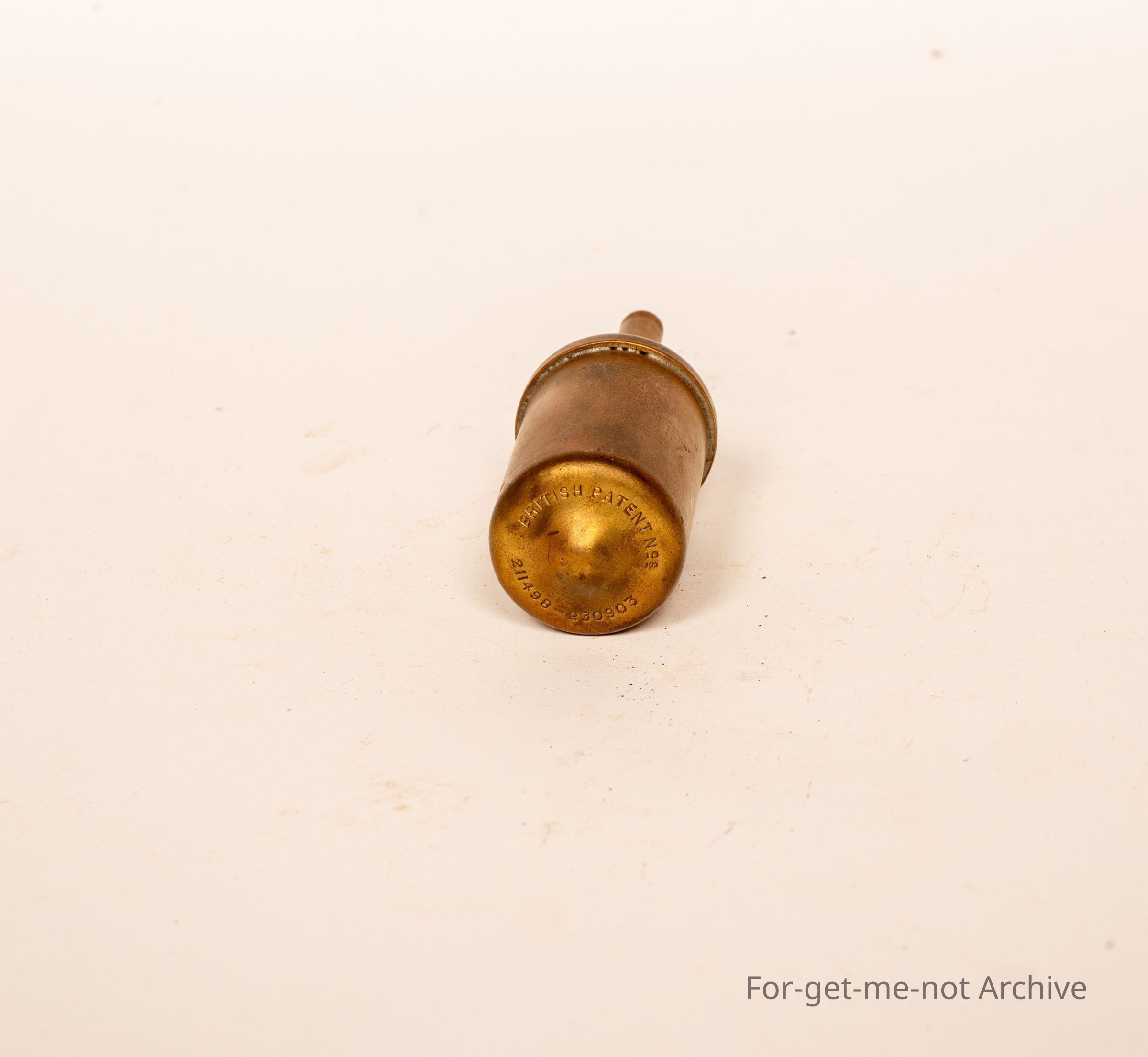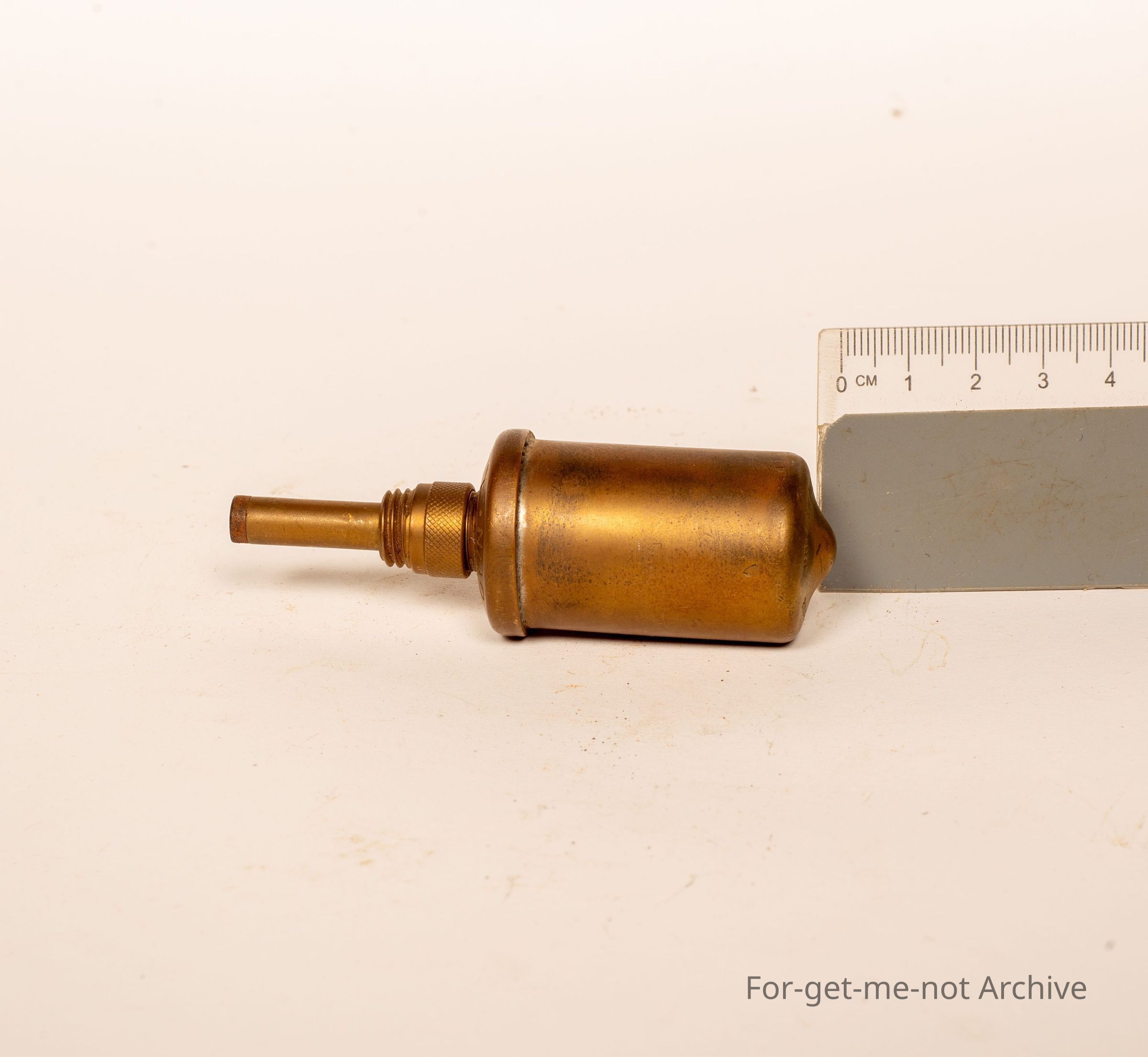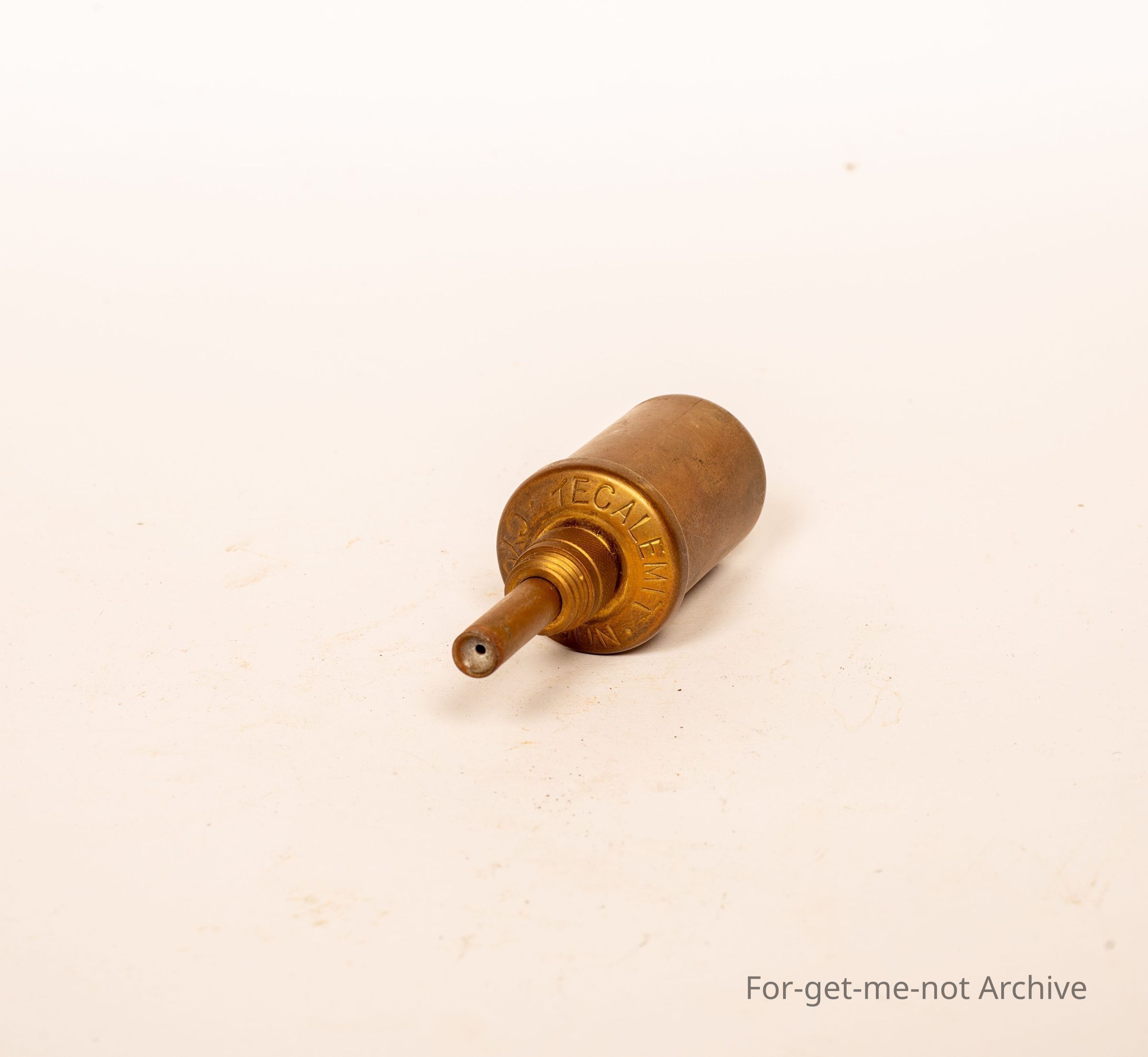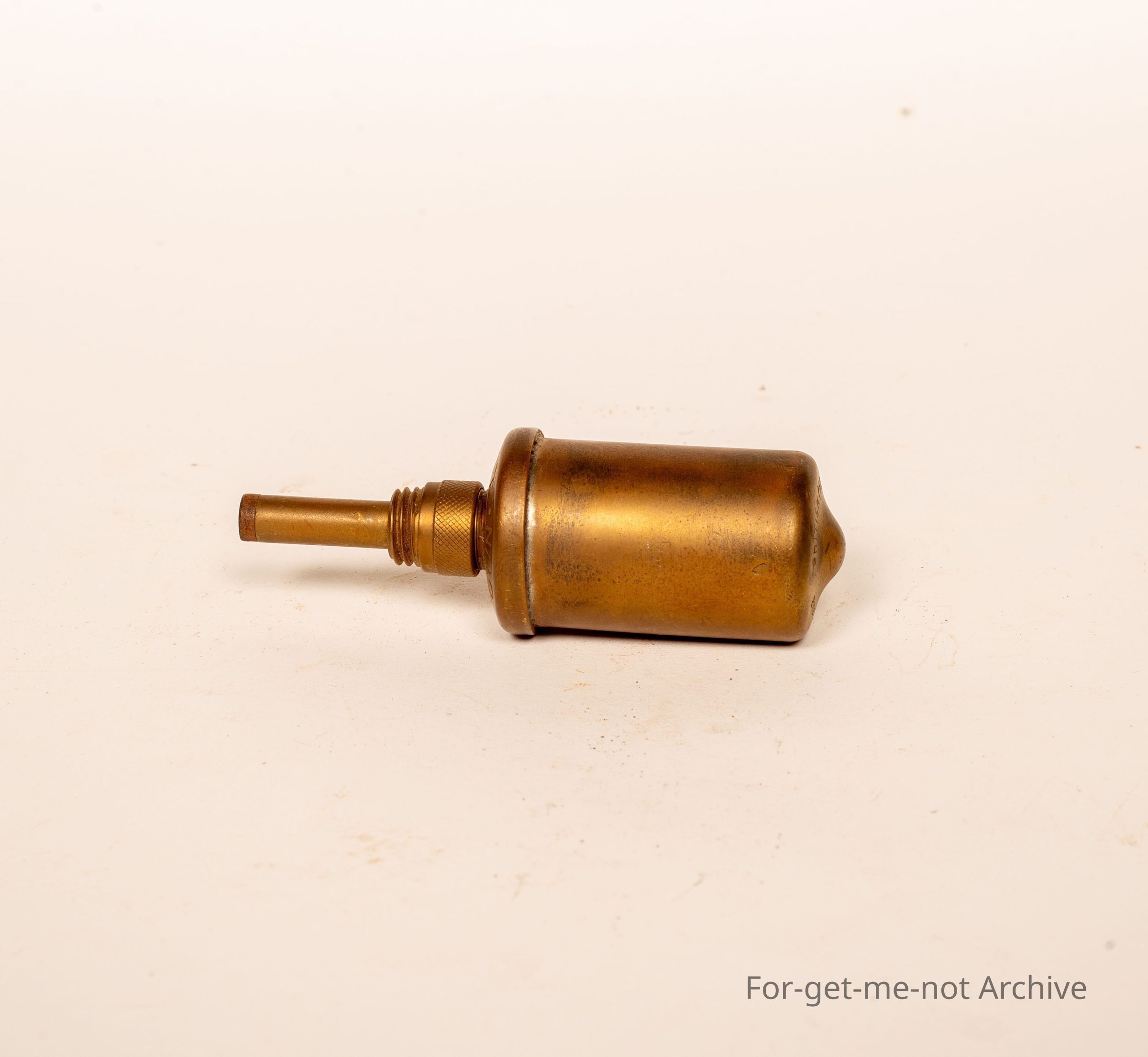This is a small brass grease gun. this is a little grease gun for carrying in the tool kit on a push bike. It's British Patent and the brand name is Tecalmet Cycle gun.
