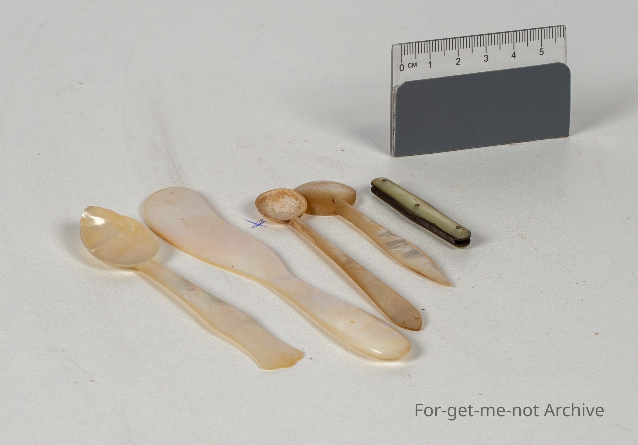 All items made from mother of pearl shell, such as spoon, knife etc