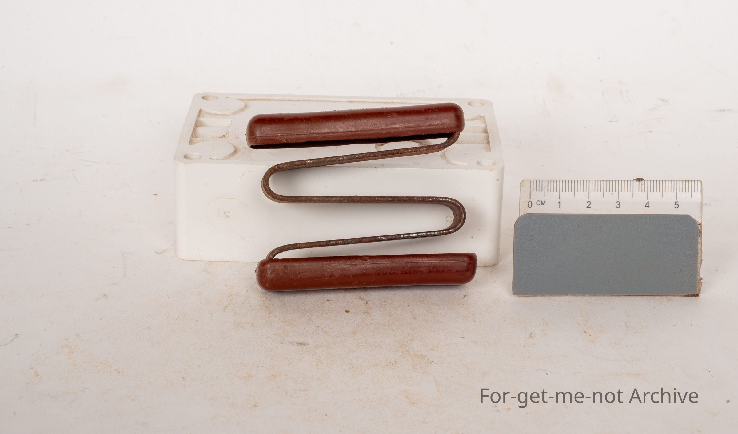 This is a hand strengthener, a spring in the middle, 2 wooden panels either side. You squeeze it together, probably as recuperation from an injury or something to strengthen and make your hand recover.Collection