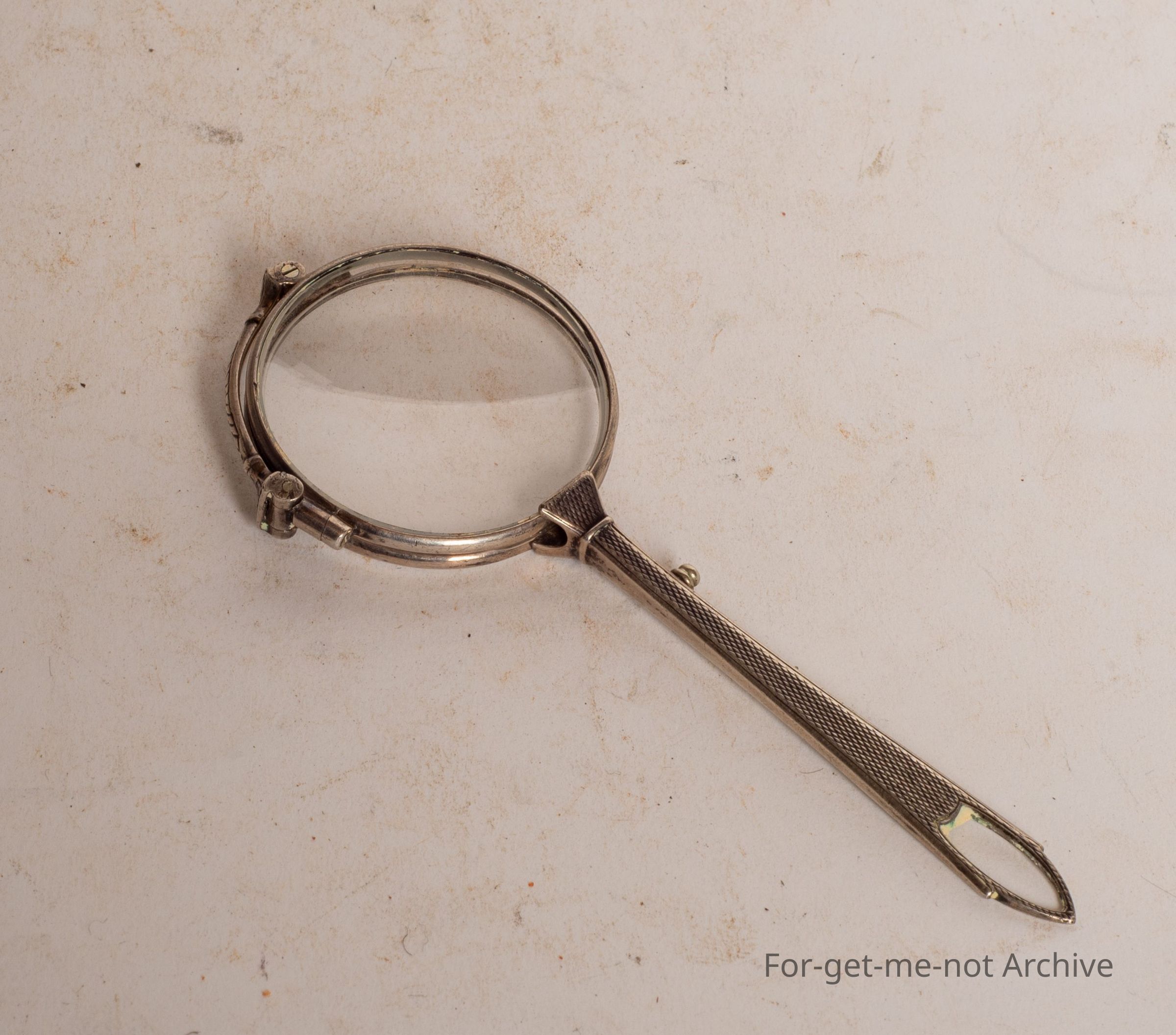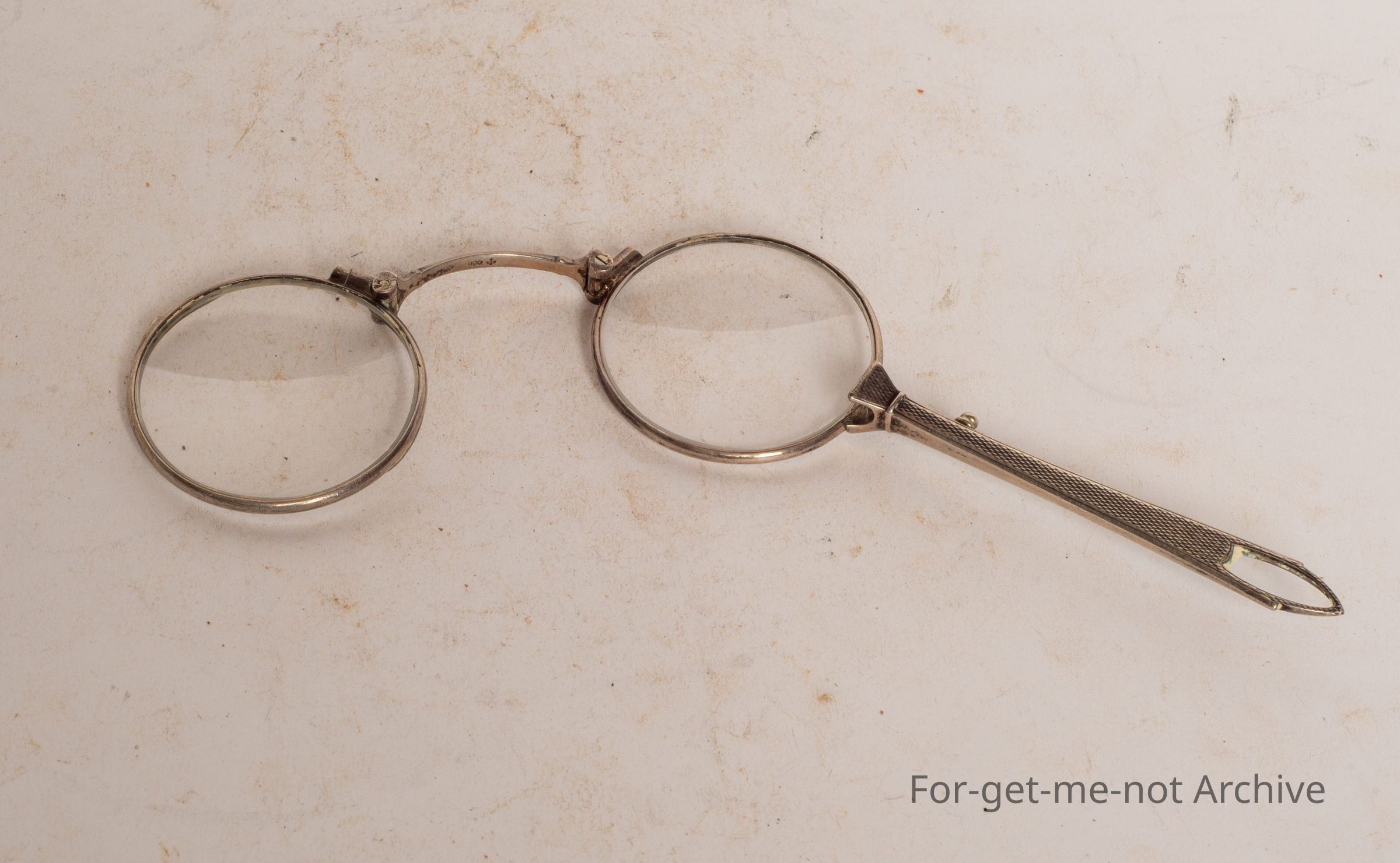 These are a very delicate pair of handheld glasses that fold into one lens. Beautifully made, probably for a right handed woman