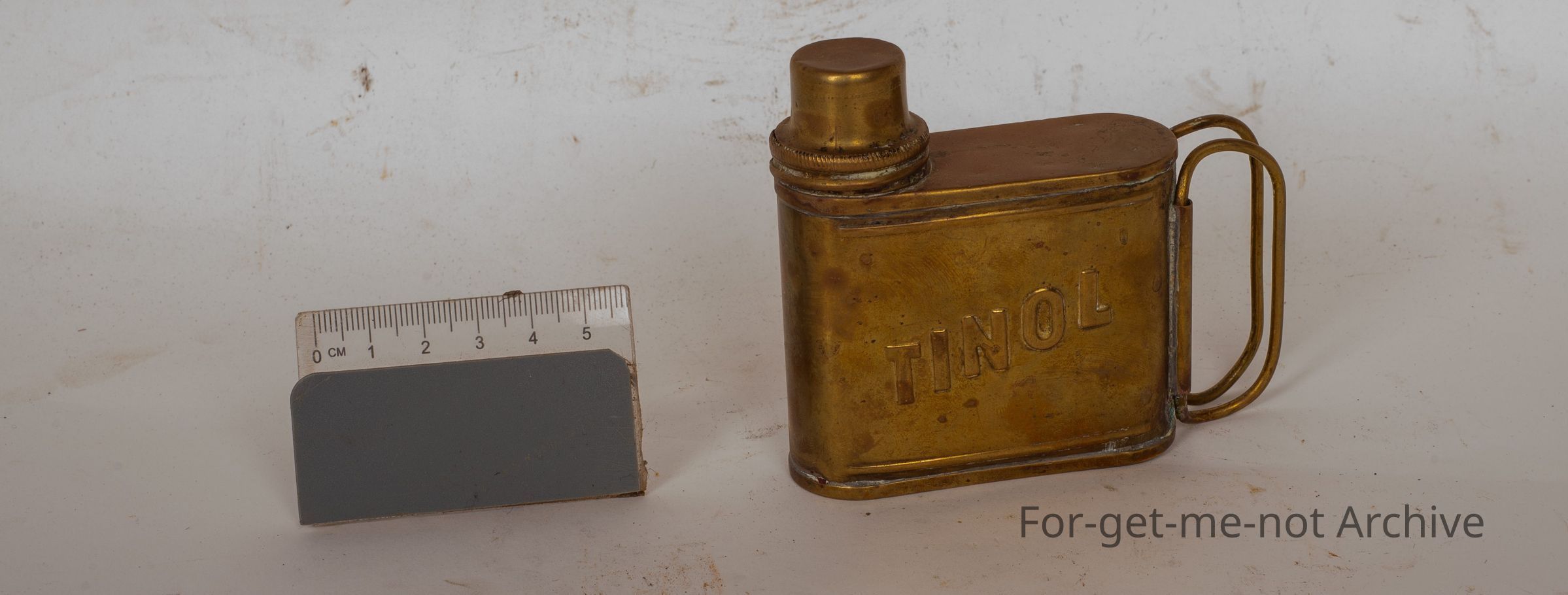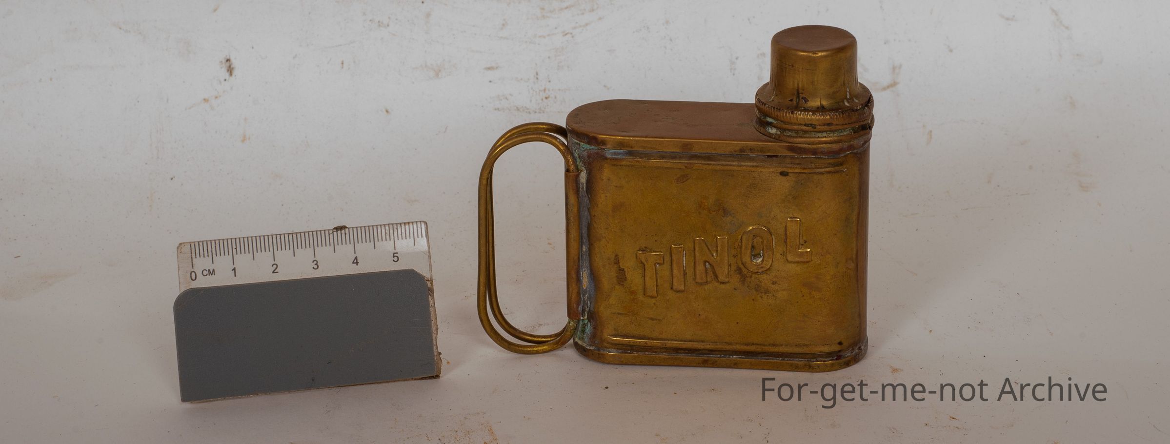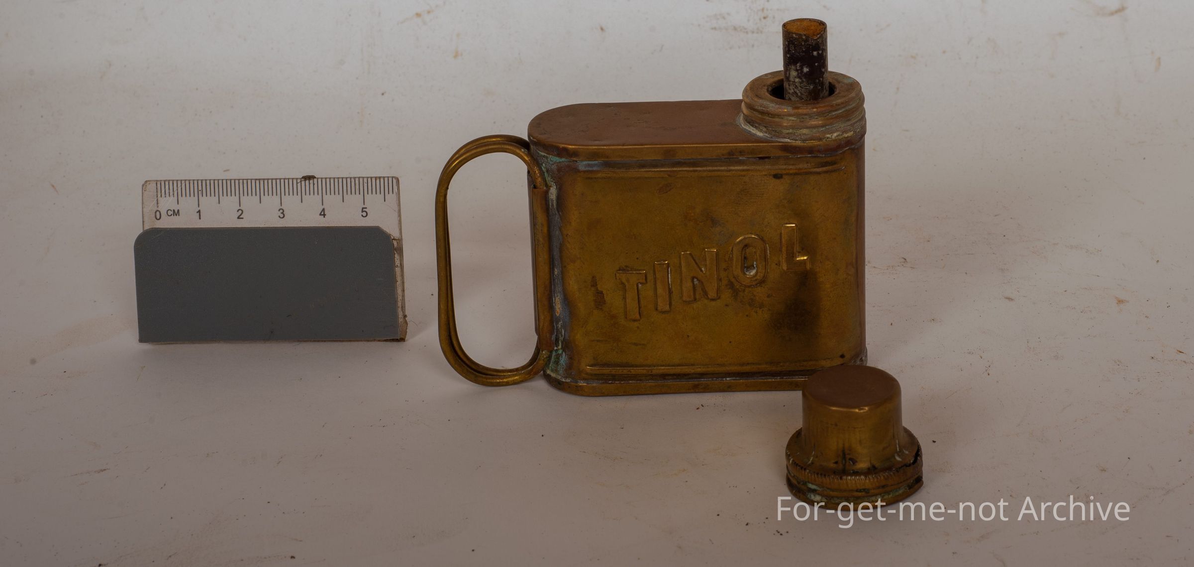 This is a little black brass handheld, wick fed light stamped tin holes on either side, made in Germany. Its purpose is a bit obscure. In very good order.