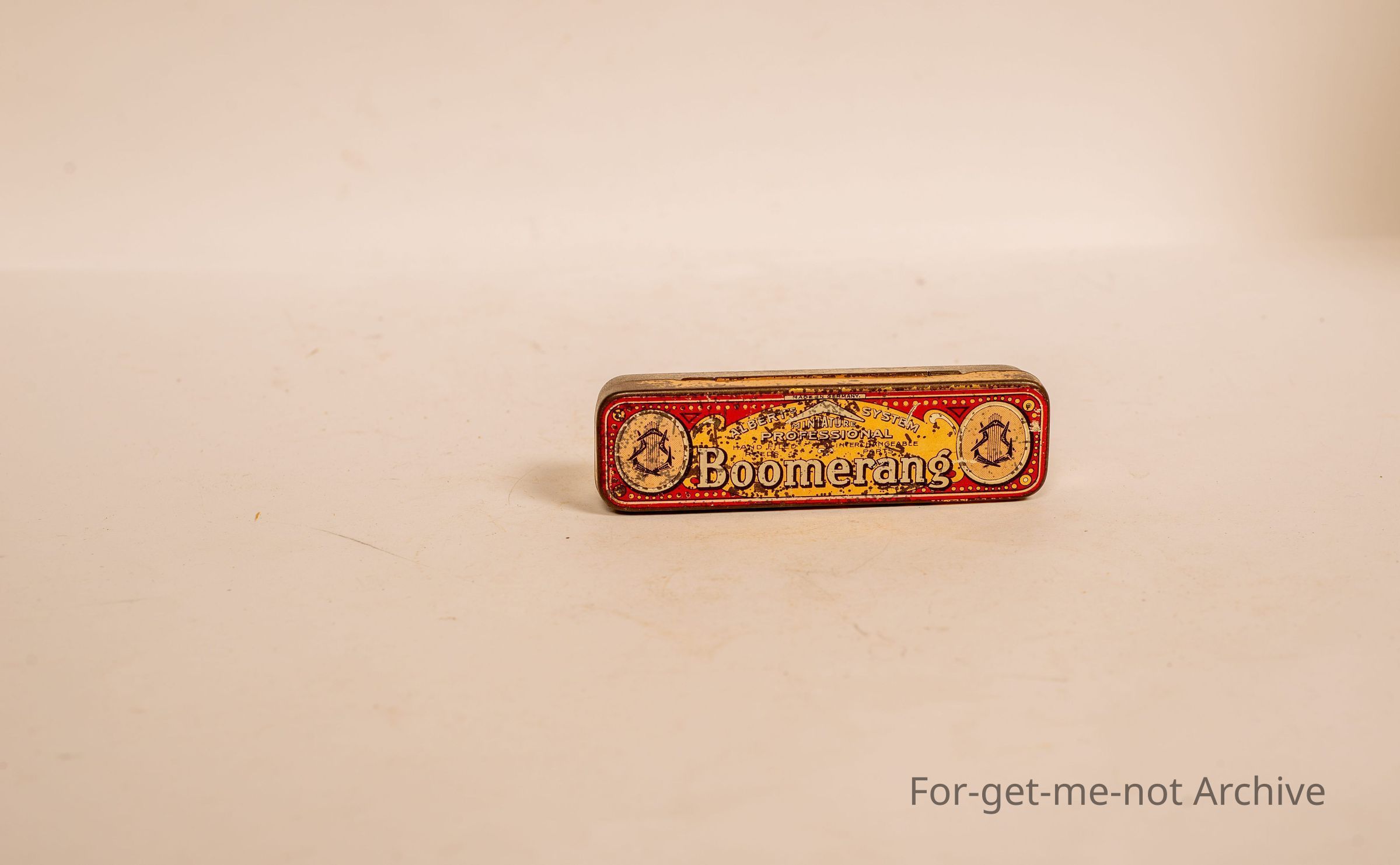 This is just the, package box for a boomerang harmonica. Not in bad condition.