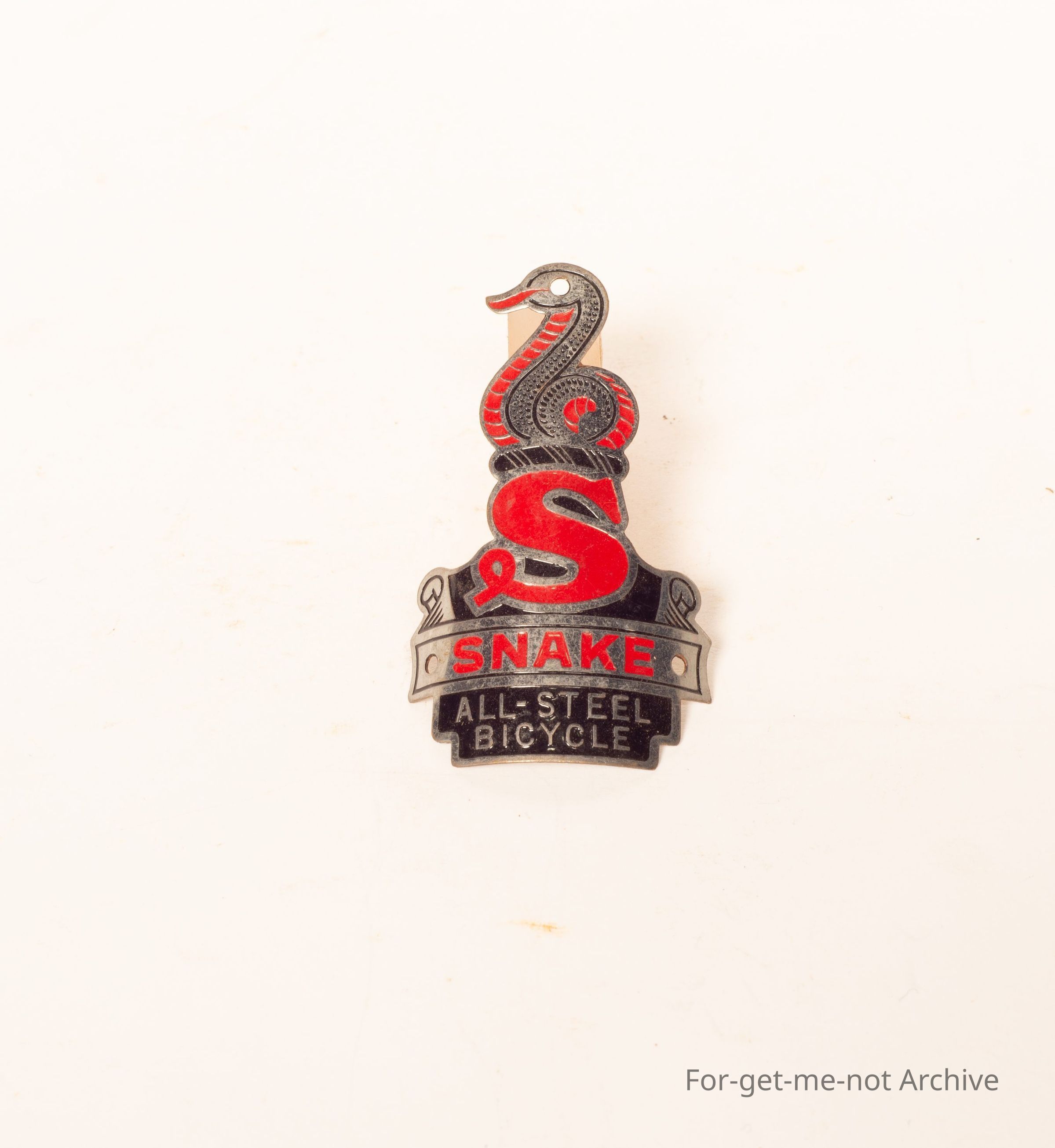 Head stem badge from Pushbike, this is from the Snake Cycle Company, all steel bicycle, more than likely British, very decorative little badge.