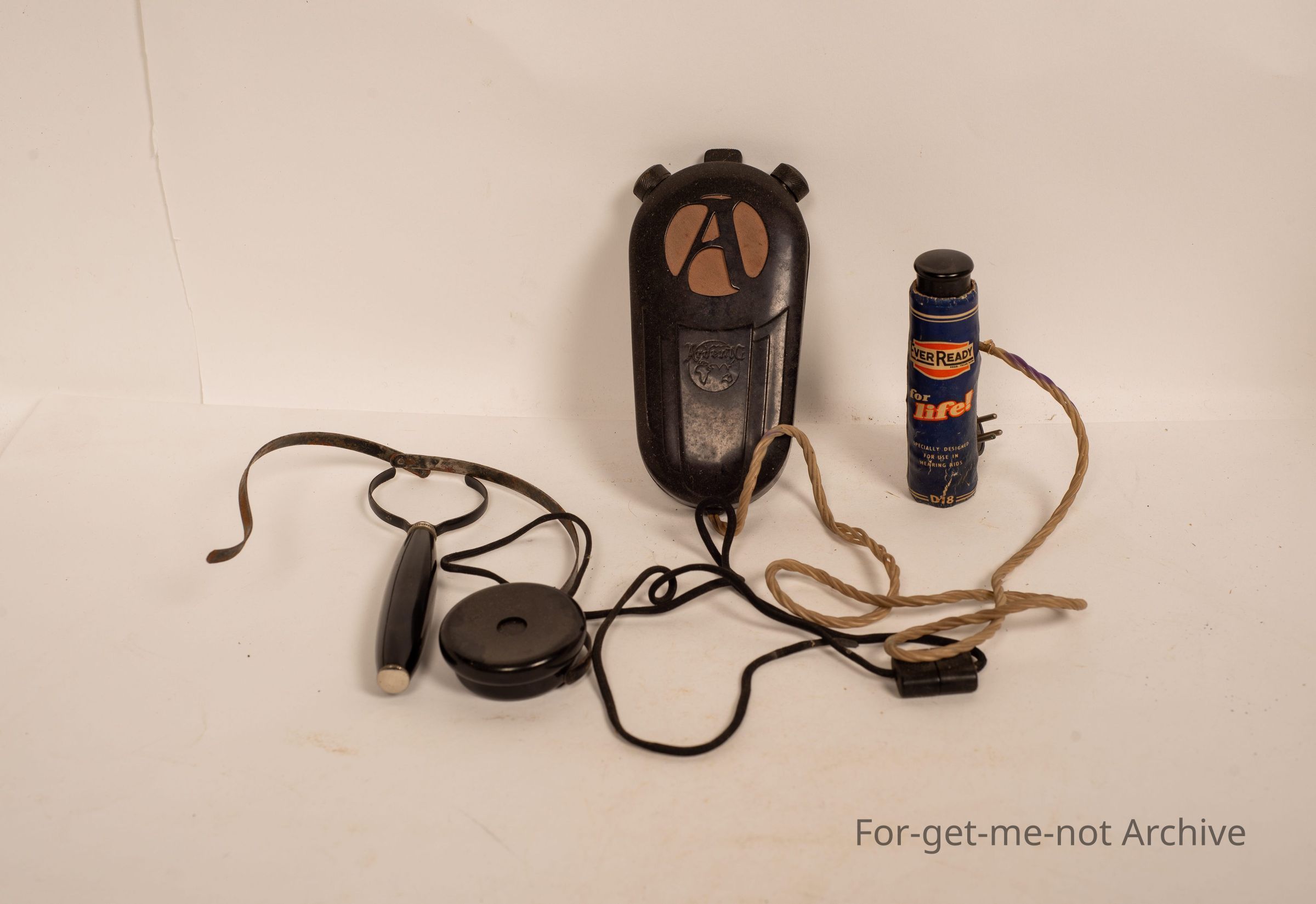 An early hearing aid set with battery, speaker, and, headset and the headset. Value, what do you reckon value? Pretty rare. This is early technology