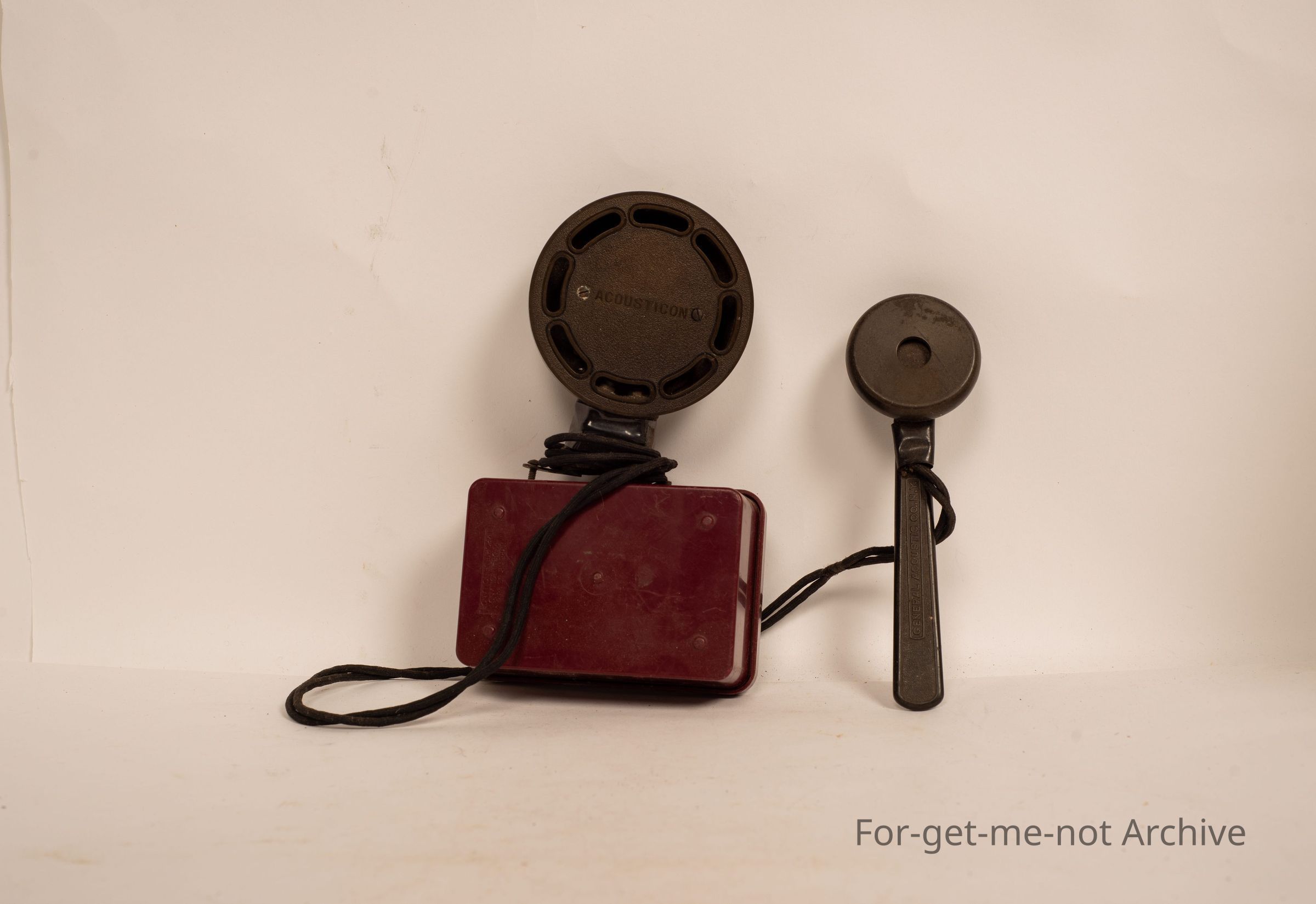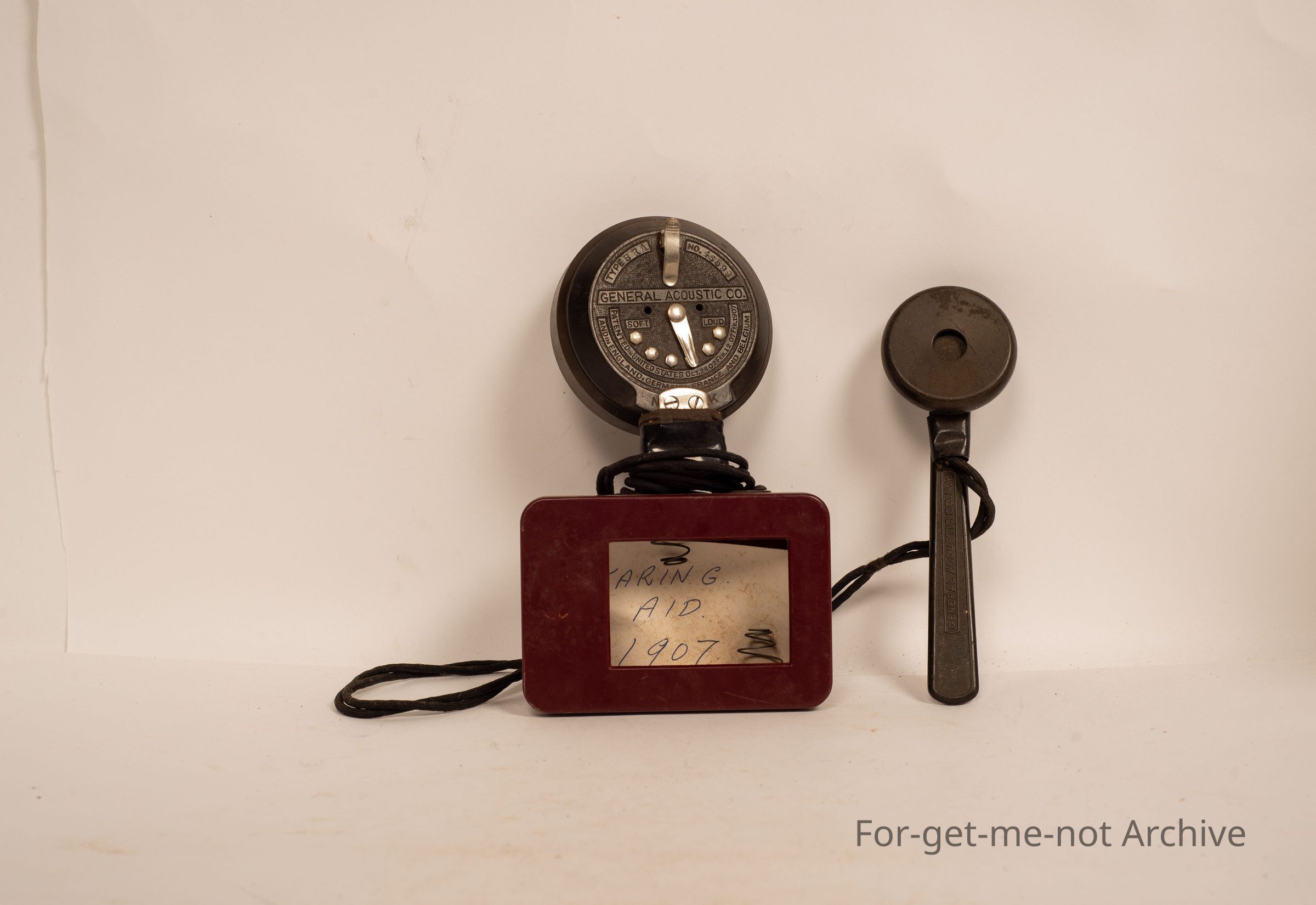 Another early Acousticon hearing aid with speaker, and battery box with adjustments on the back. This has written in the back, hearing aid 1907. Very early.